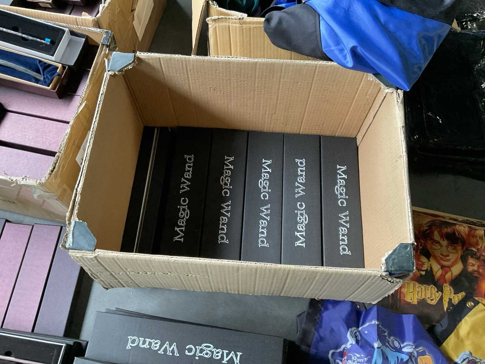 Bestaande uit: 45x cape met diverse logo’s maat L, 115x wants (toverstok), diverse types, 7x vlag diverse logo’s en kleuren, 2x poster