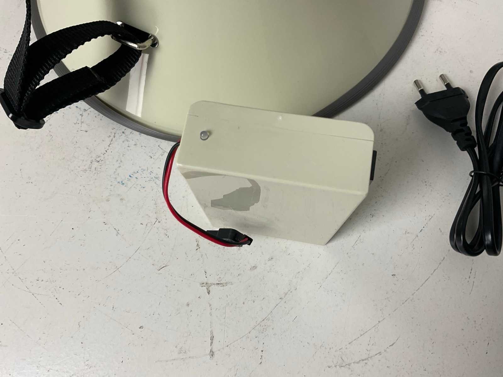 Oplaadbare accu, sirene, opname, extra microfoon. Merk: Moonlight Model: MOON-M80W Lengte: 25cm Breedte: 25cm Hoogte: 44cm