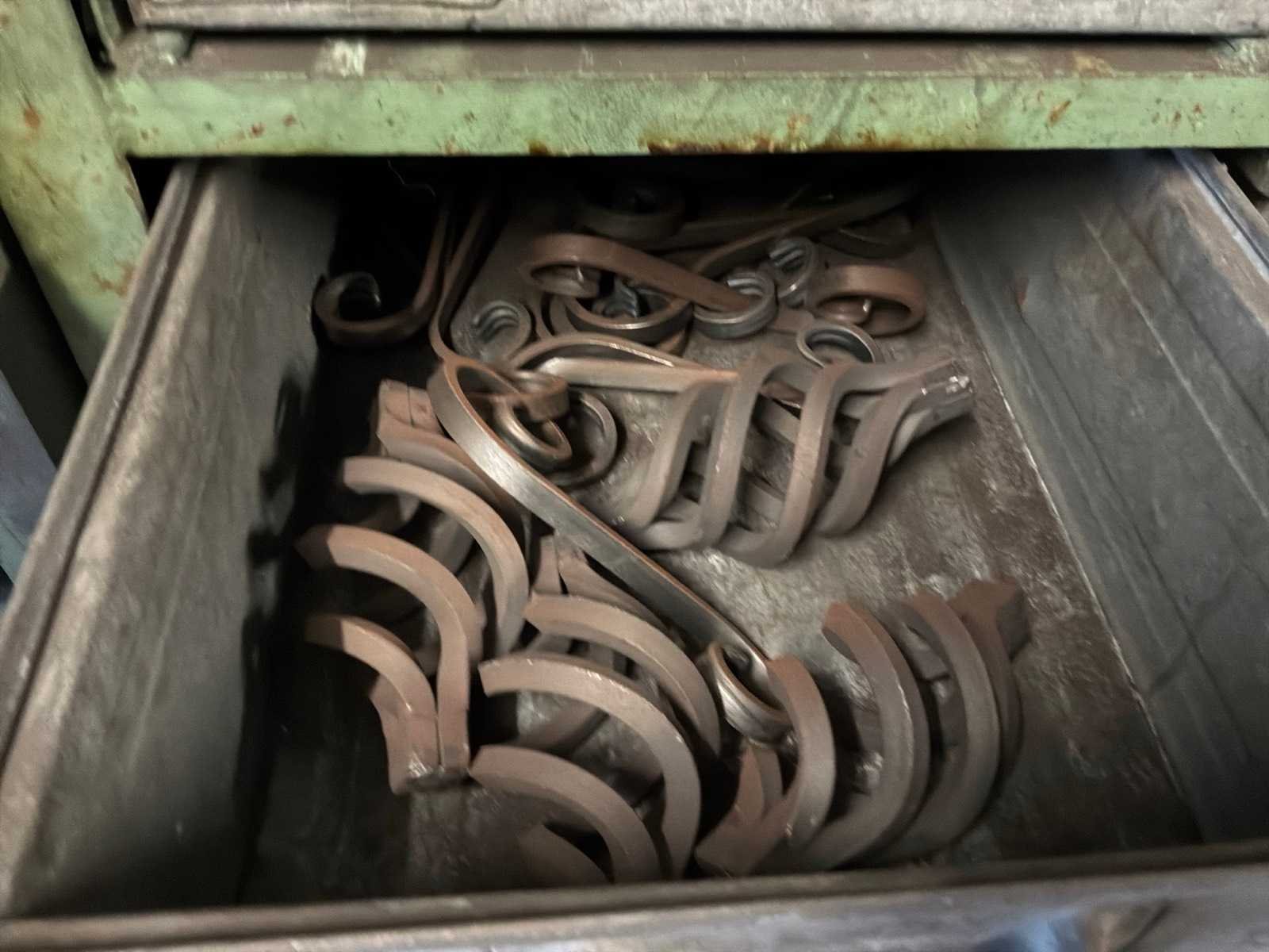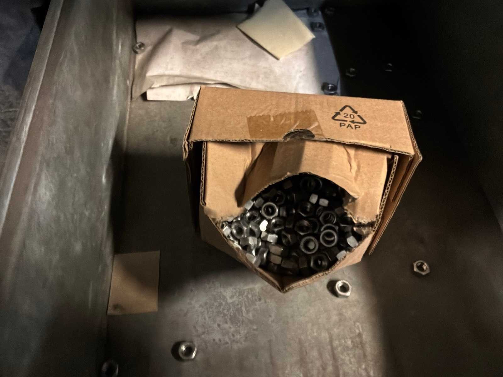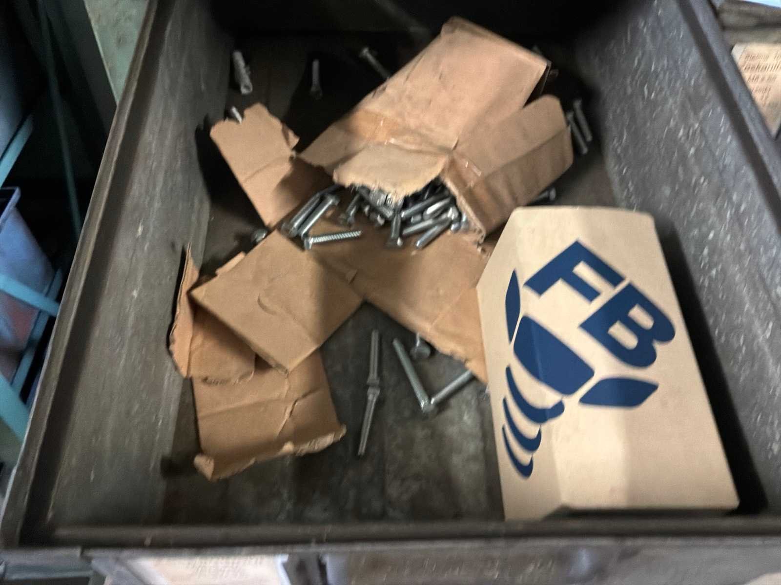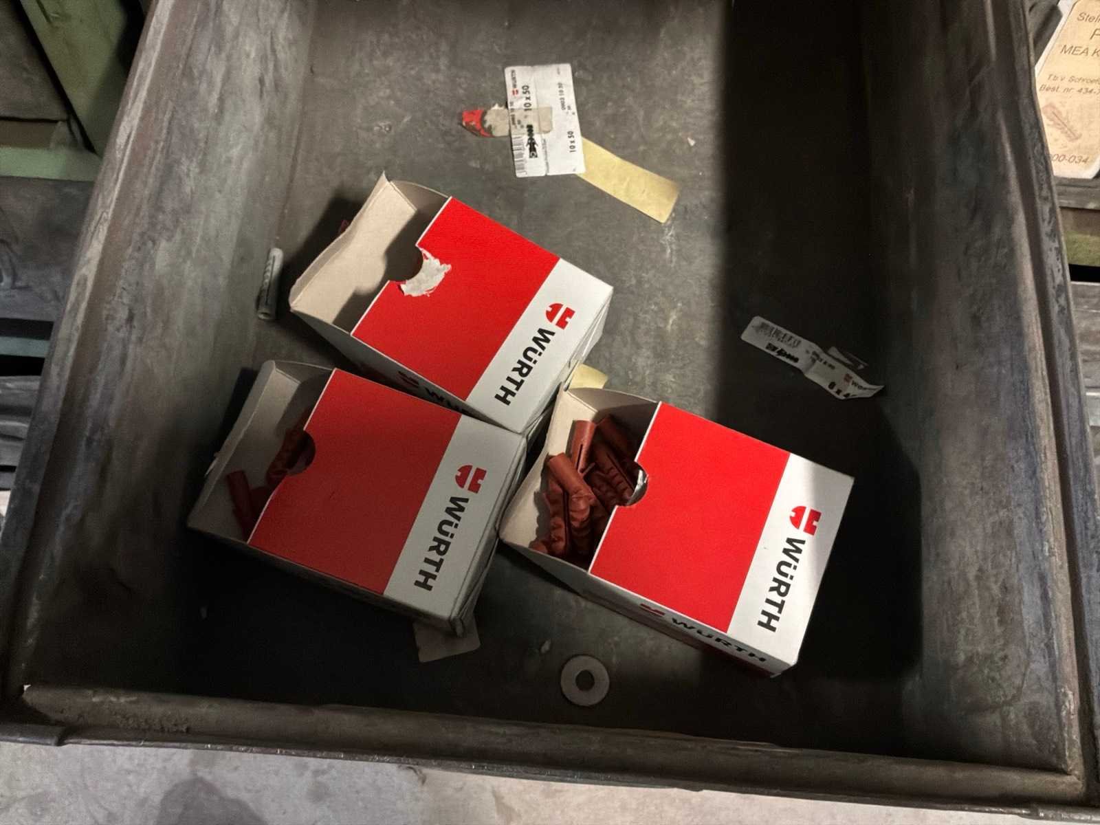 Waaronder: 5x metalen kast, 540x800x2130mm, met 20 metalen bakken. De inhoud van deze bakken (bevestigingsmateriaal) is bij het kavel inbegrepen. De foto’s van de inhoud van de bakken zijn ter illustratie.