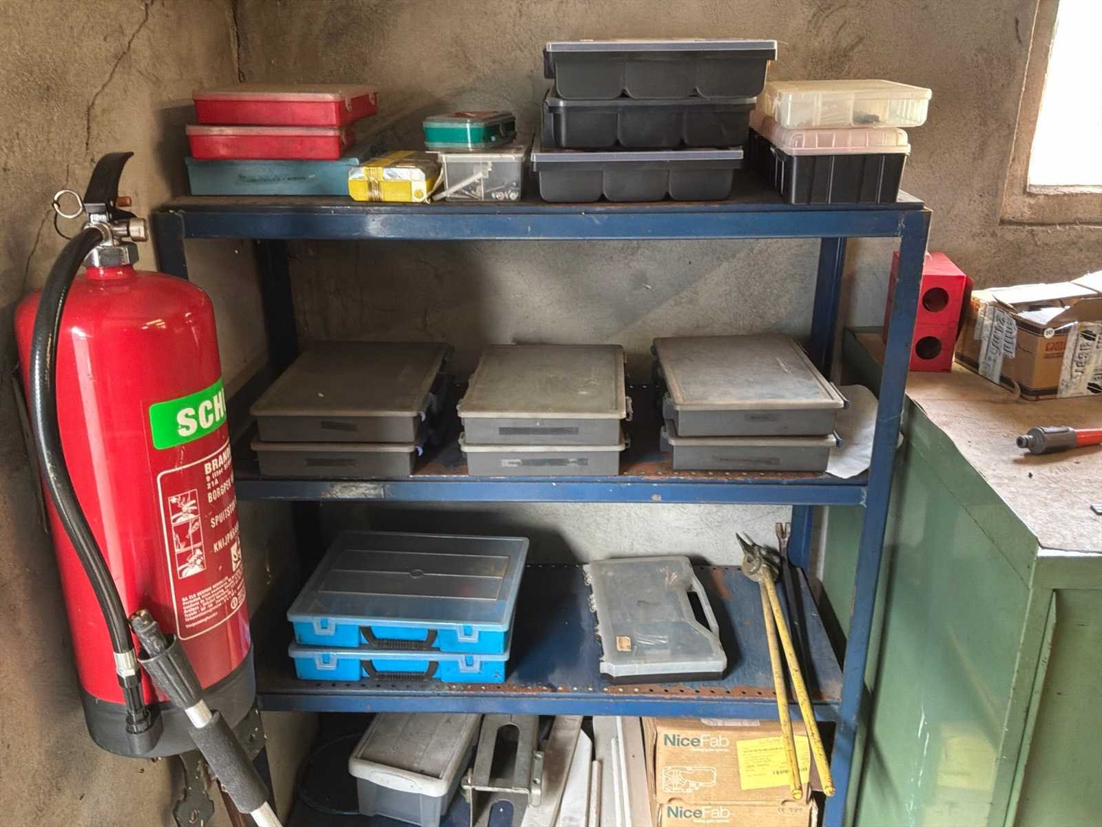 Inbegrepen bij dit kavel: twee stellingkasten met inhoud. Lengte: 78cm Breedte: 143cm Hoogte: 108cm