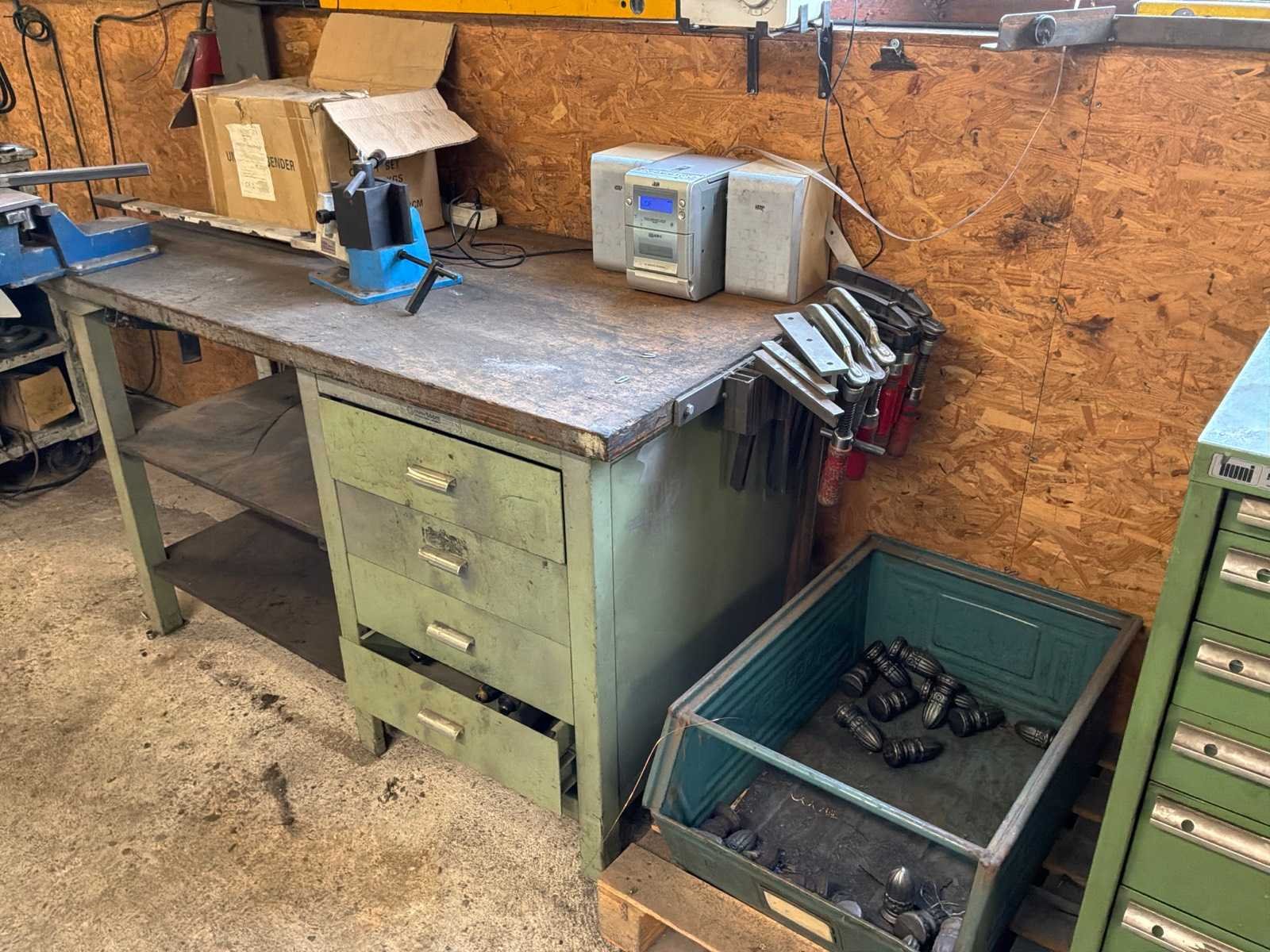 Waaronder: 1x gereedschapsbord, 2x winkelhaak, 6x constructieklem, 2x radio, 1x buigapparaat, inhoud van de lades, metalenbak met inhoud.
