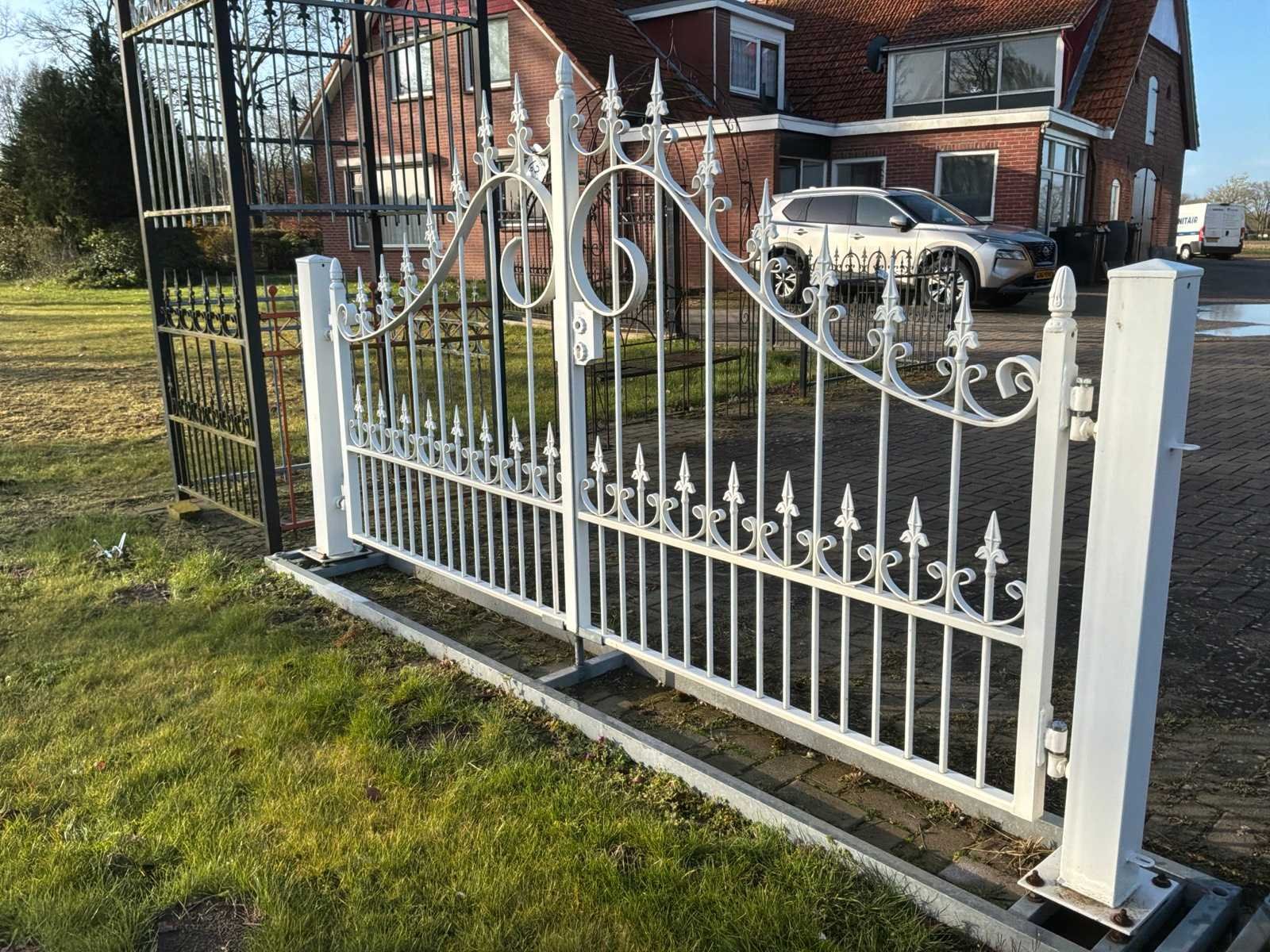 Bestaande uit 2 draaidelen: 1340x1050mm, 2 staanders: 100x1090mm, inclusief bevestigingsvoet, geen sleutel. Merk: Gebron