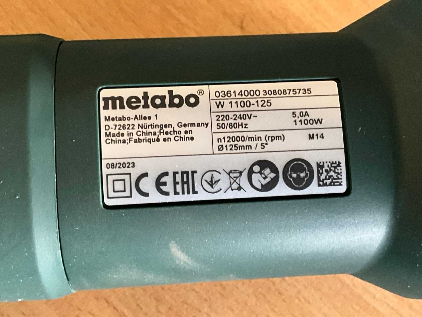 Ongebruikt in doos Merk: Metabo Serienummer: 3080875735 Type: W 1100-125 Schijfdiameter: 125mm Vermogen: 1100W
