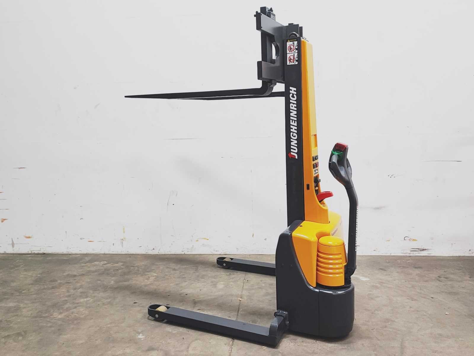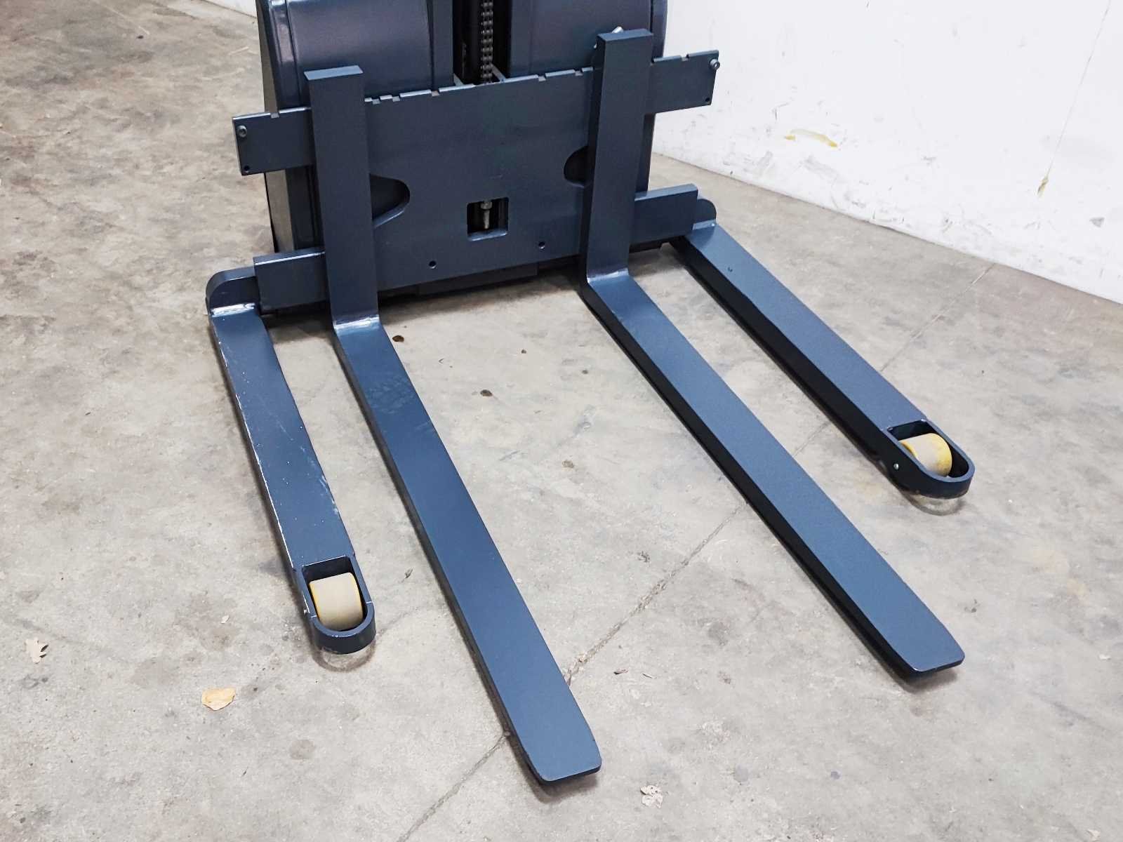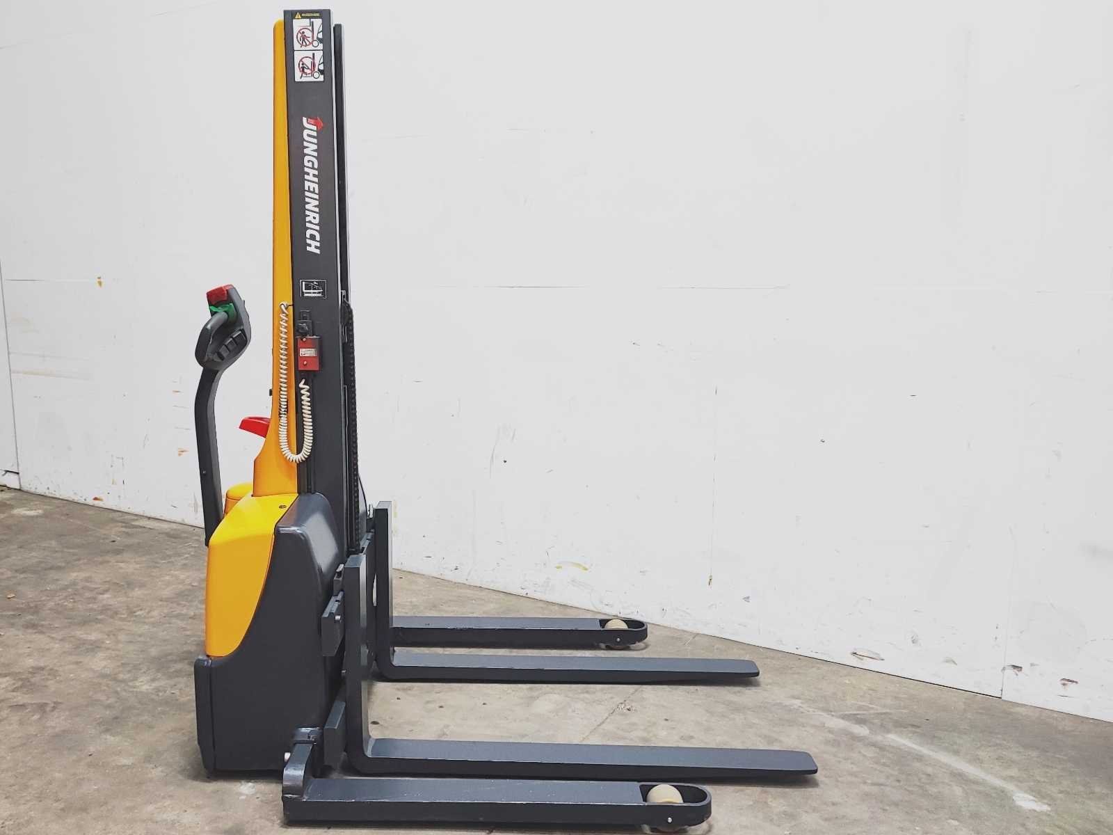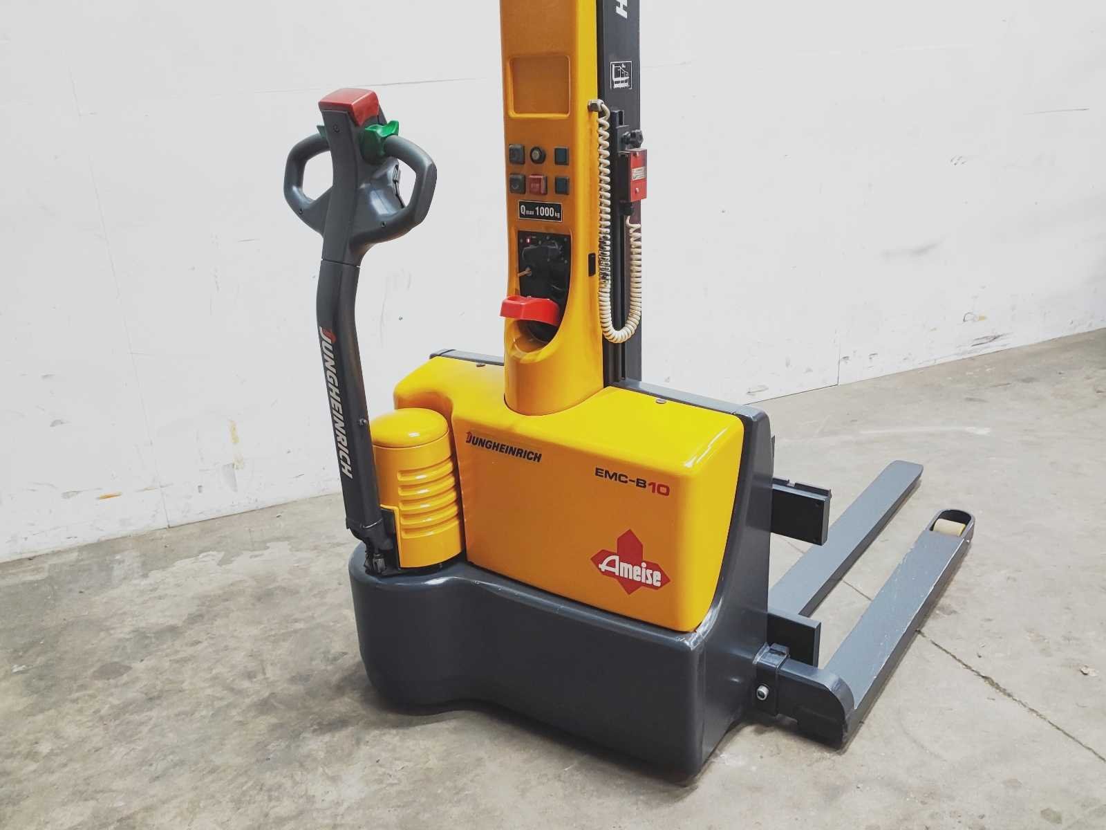 Jungheinrich EMC B10 elektro breedspoor stapelaar v.v. mono mast, breedte tussen de dragers is 970 mm Merk: Jungheinrich Type: EMC B10 Bouwjaar: 2008 Serienummer: 90301680 Hefvermogen: 1000kg Hefhoogte: 1570mm Lepellengte: 1150mm Eigen gewicht: 510kg Minimale doorrijhoogte: 1970mm Totale afmeting L: 1800mm Totale afmeting Breedte: 1180mm Totale afmeting Hoogte: 1970mm Accu lader: true