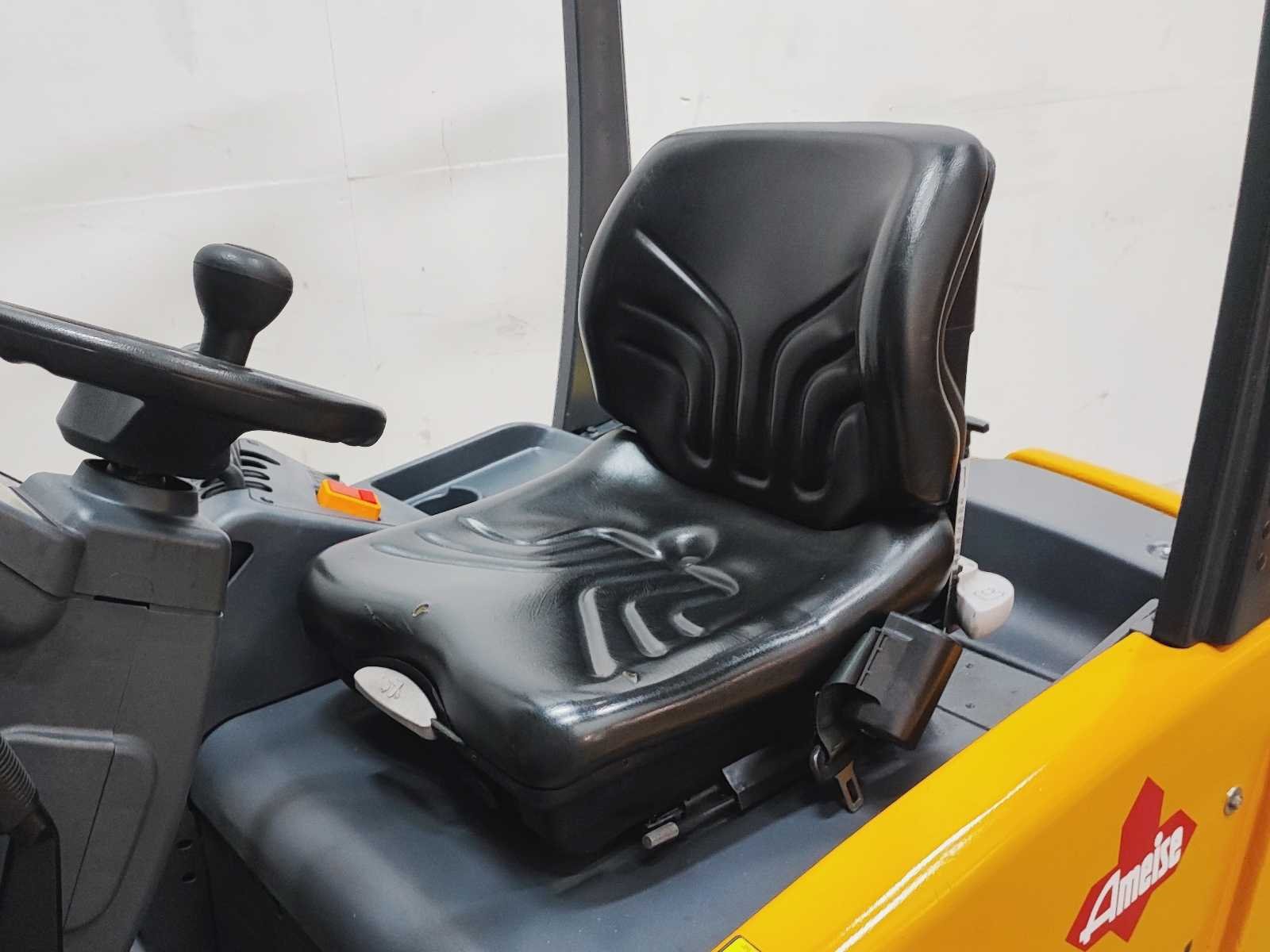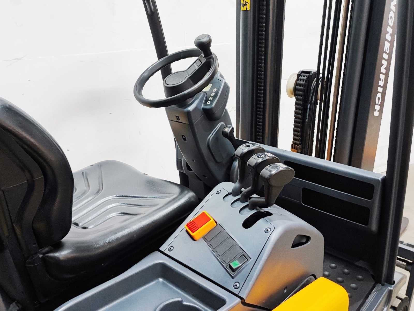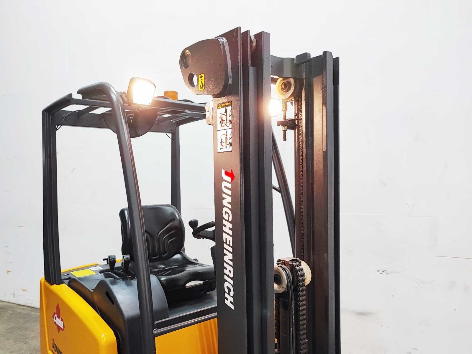 Merk: Jungheinrich Type: EFG-DF16 Bouwjaar: 2001 Serienummer: 89919122 Mast: Triplo freelift Aantal wielen: 3 Afgelezen urenstand: 15974 Accu lader: true Free-lift: true Side-shift: true Triple mast: true Eigen gewicht: 3200kg Hefvermogen: 1550kg Lepellengte: 1000mm Hefhoogte: 4500mm Vol rubber banden: true Minimale doorrijhoogte: 2010mm Totale afmeting L: 3000mm Totale afmeting Breedte: 1050mm Totale afmeting Hoogte: 2010mm