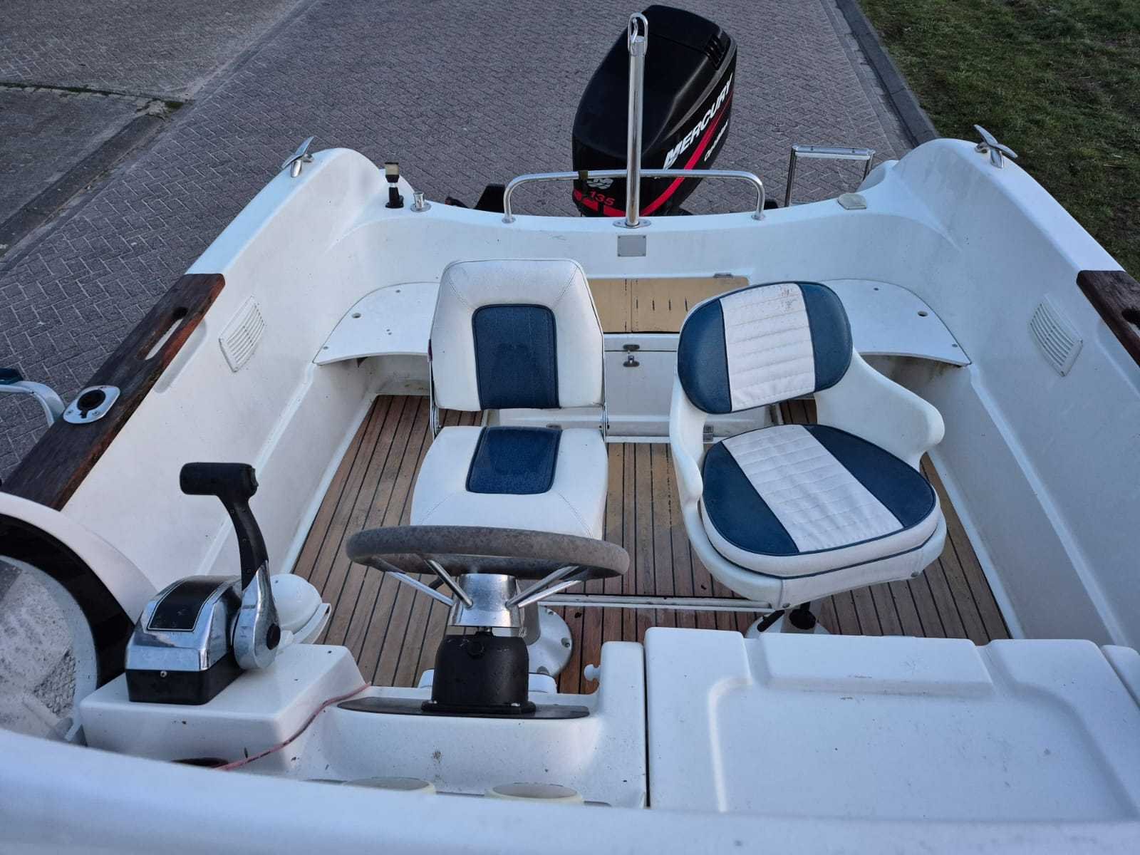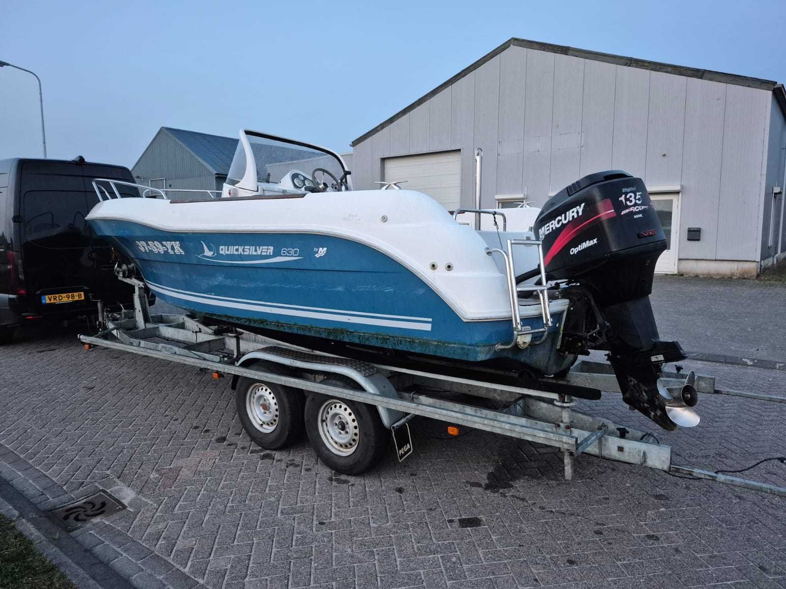Bouwjaar 2005; Polyester; 6 persoons; 1000kg CE markering: C-bij de kust Zelf lozende kuip 6,30 mtr. lang 2,50 mtr. breed 0,40 mtr diepgang Mercury 135pk V6 2 takt 592 uur Voorzien van Sony CDX-HR70MW marine radio; LET OP: GEEN TRAILER!!!!! deze is los te koop zie kavel 25 !!!! Merk: Quicksilver Type: 630 Comander Rompmateriaal: Polyester Brandstof: Benzine Registratie nummer: 37-59-YK Type motor: Mercury 135 PK Afgelezen urenstand: 592hr