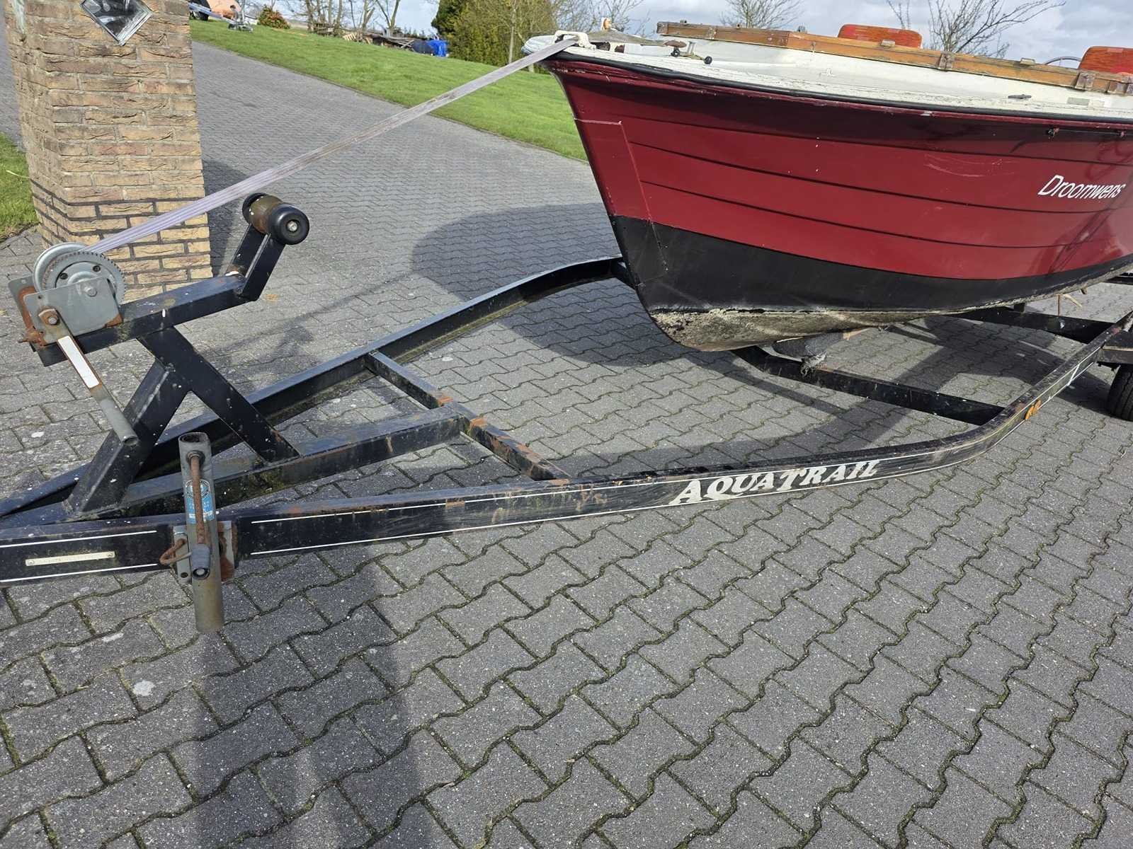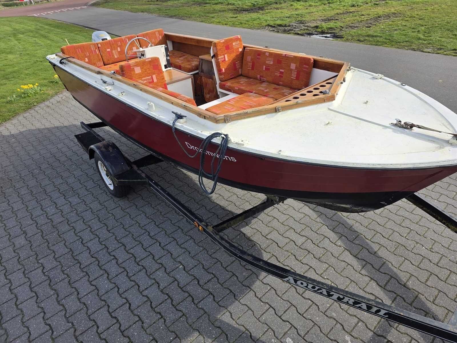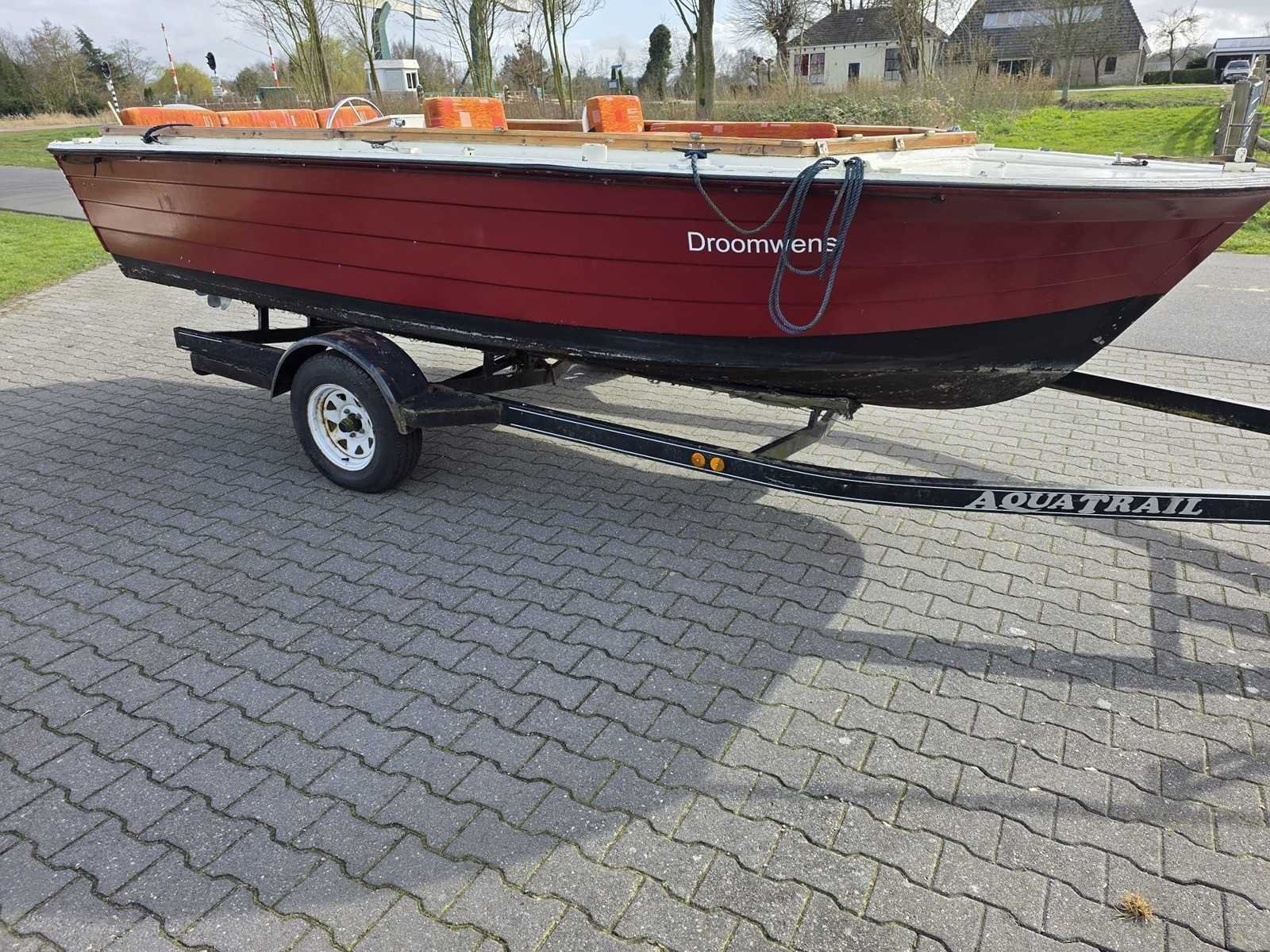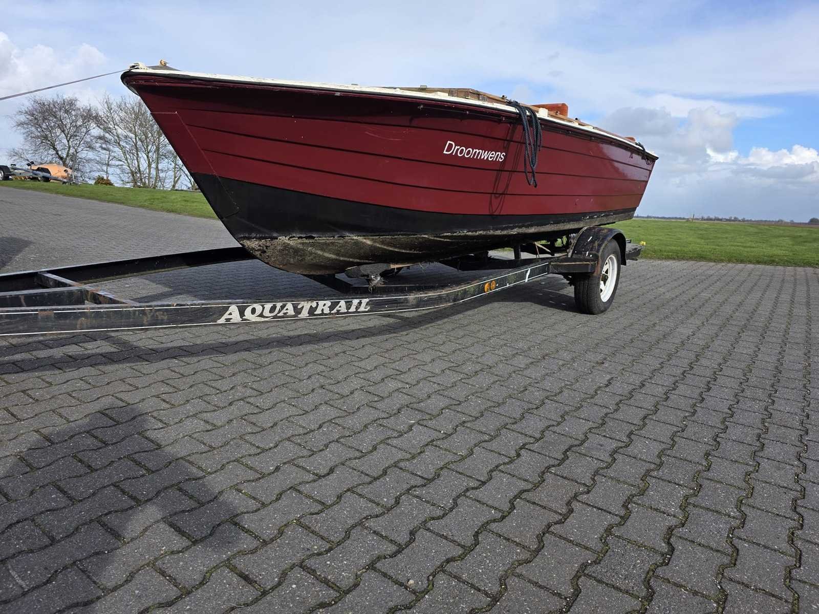 Sloep met Aquatrail trailer en 20 pk Honda 4 takt met power tilt functie.; Voorzien van: - Honda 20 pk 4 takt buitenboordmotor - brandstoftank - accu - afdekzeil - kuiptent - windscherm - kussens op maat - stootkussens en touwen - veel opbergruimte onder alle banken - Aquatrail boottrailer met losse verlichtings balk Lengte 540 cm Breedte 220 c Geen kentekenregistratie op trailer en boot Merk: Sloep Type: Aquatrail Trailer Rompmateriaal: Polyester Brandstof: benzine Lengte over alles: 5,40m Breedte formaat: 2,20m Type motor: Honda 20 PK 4-takt Binnenboord: false