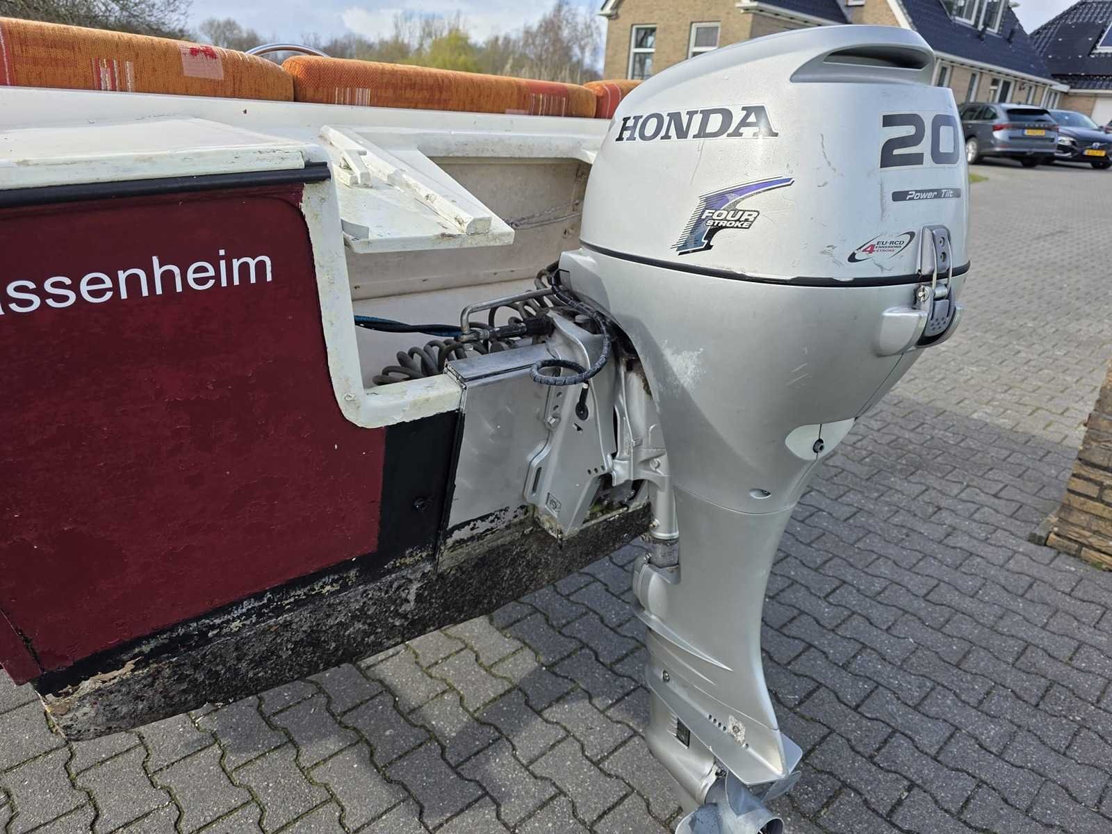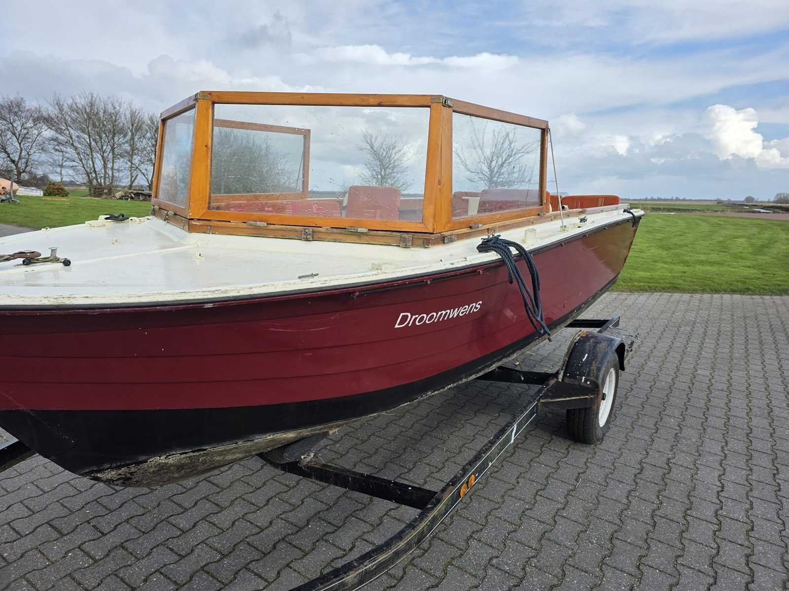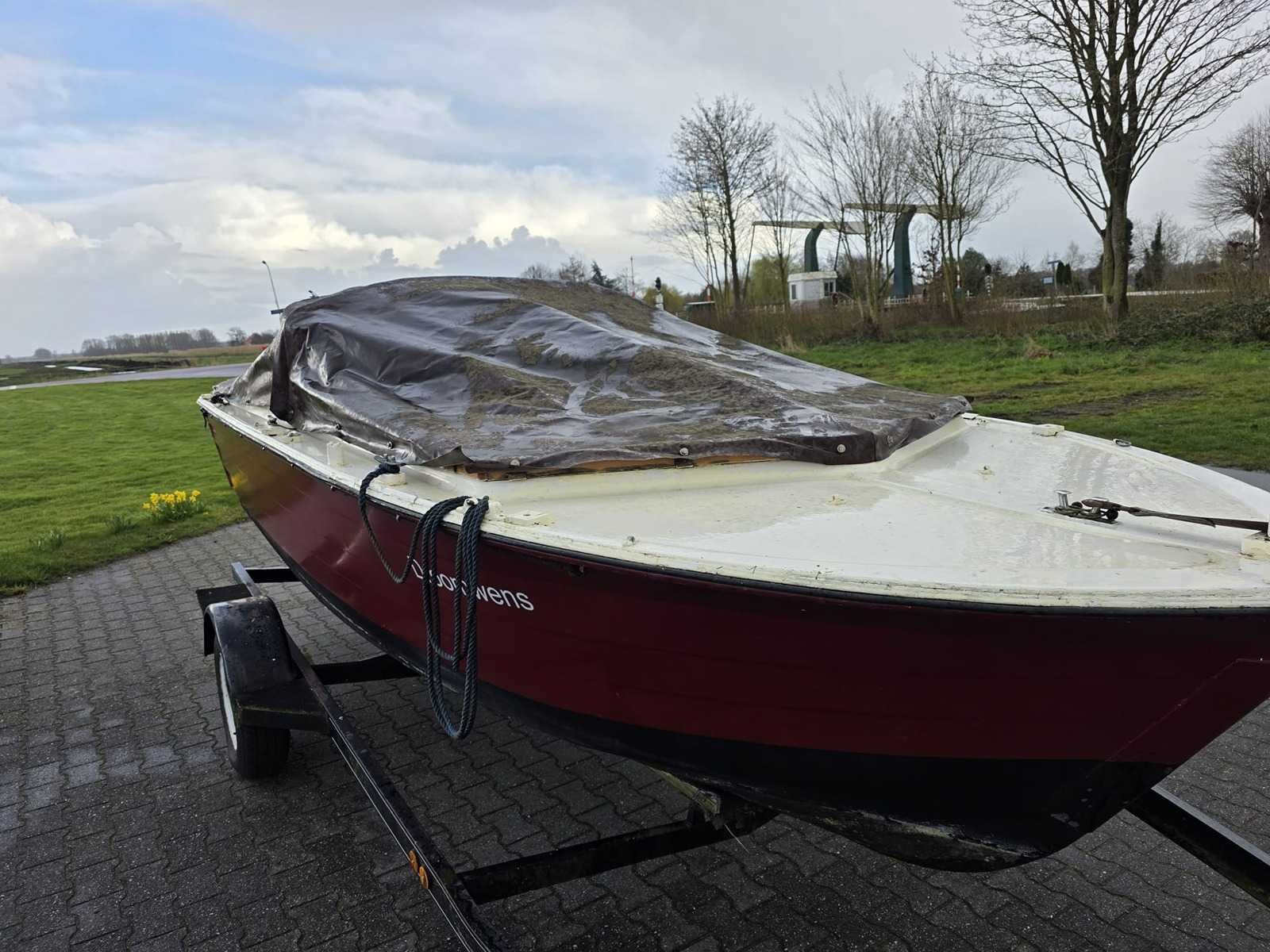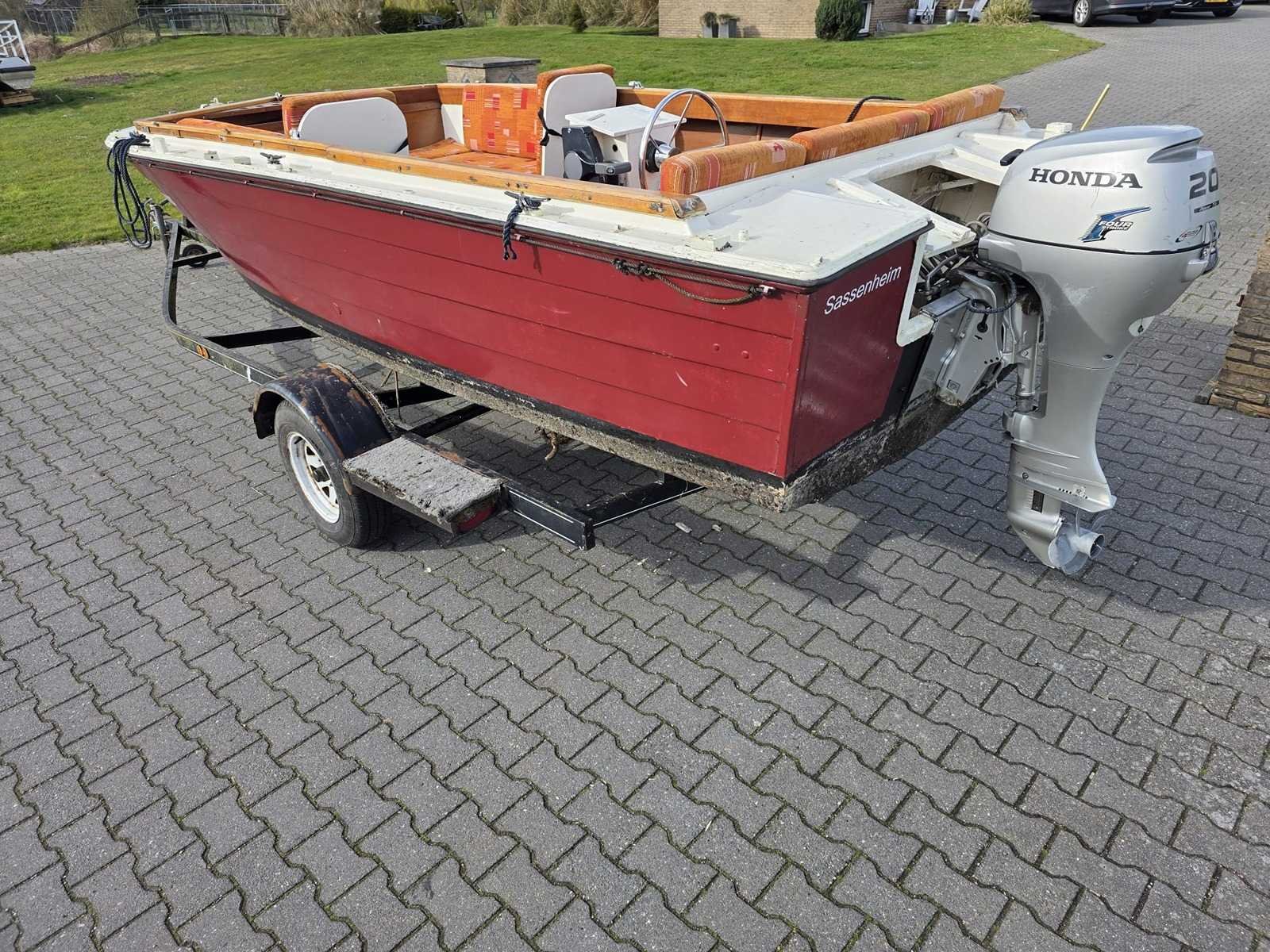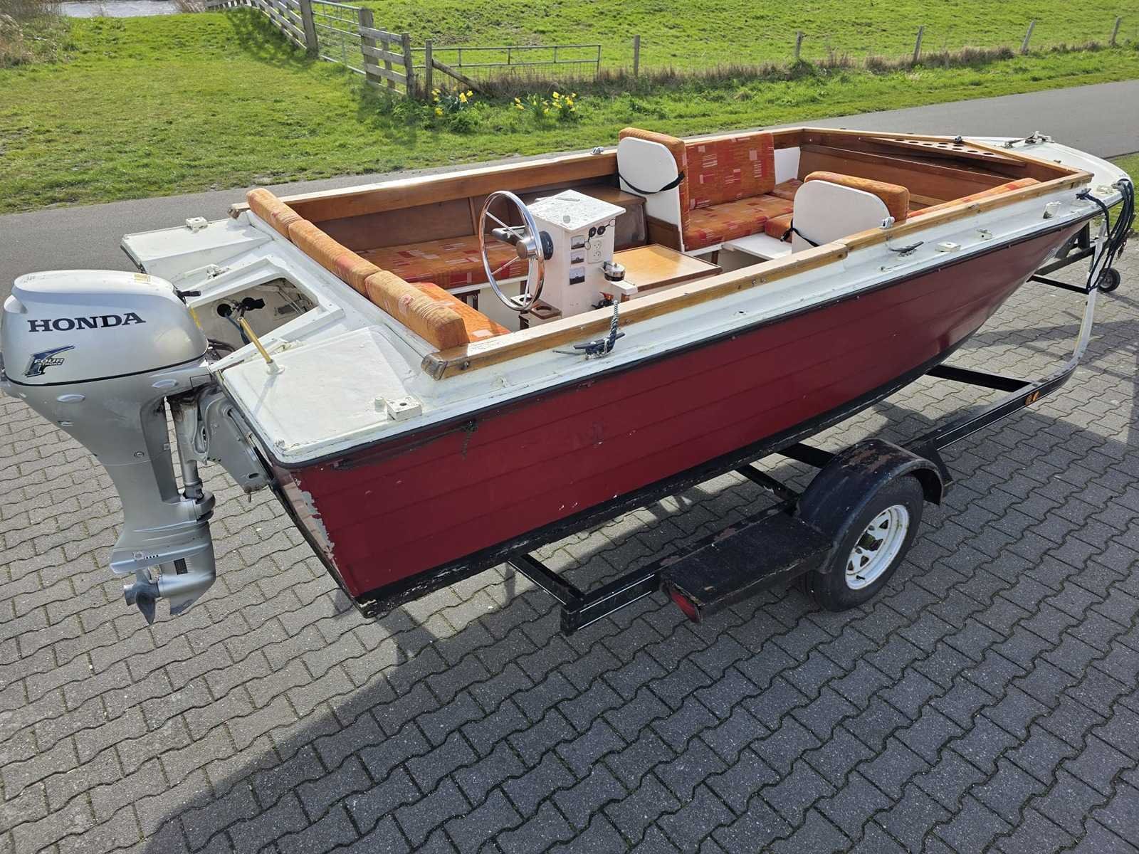Sloep met Aquatrail trailer en 20 pk Honda 4 takt met power tilt functie.; Voorzien van: - Honda 20 pk 4 takt buitenboordmotor - brandstoftank - accu - afdekzeil - kuiptent - windscherm - kussens op maat - stootkussens en touwen - veel opbergruimte onder alle banken - Aquatrail boottrailer met losse verlichtings balk Lengte 540 cm Breedte 220 c Geen kentekenregistratie op trailer en boot Merk: Sloep Type: Aquatrail Trailer Rompmateriaal: Polyester Brandstof: benzine Lengte over alles: 5,40m Breedte formaat: 2,20m Type motor: Honda 20 PK 4-takt Binnenboord: false