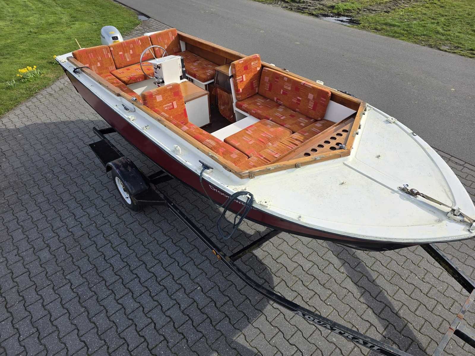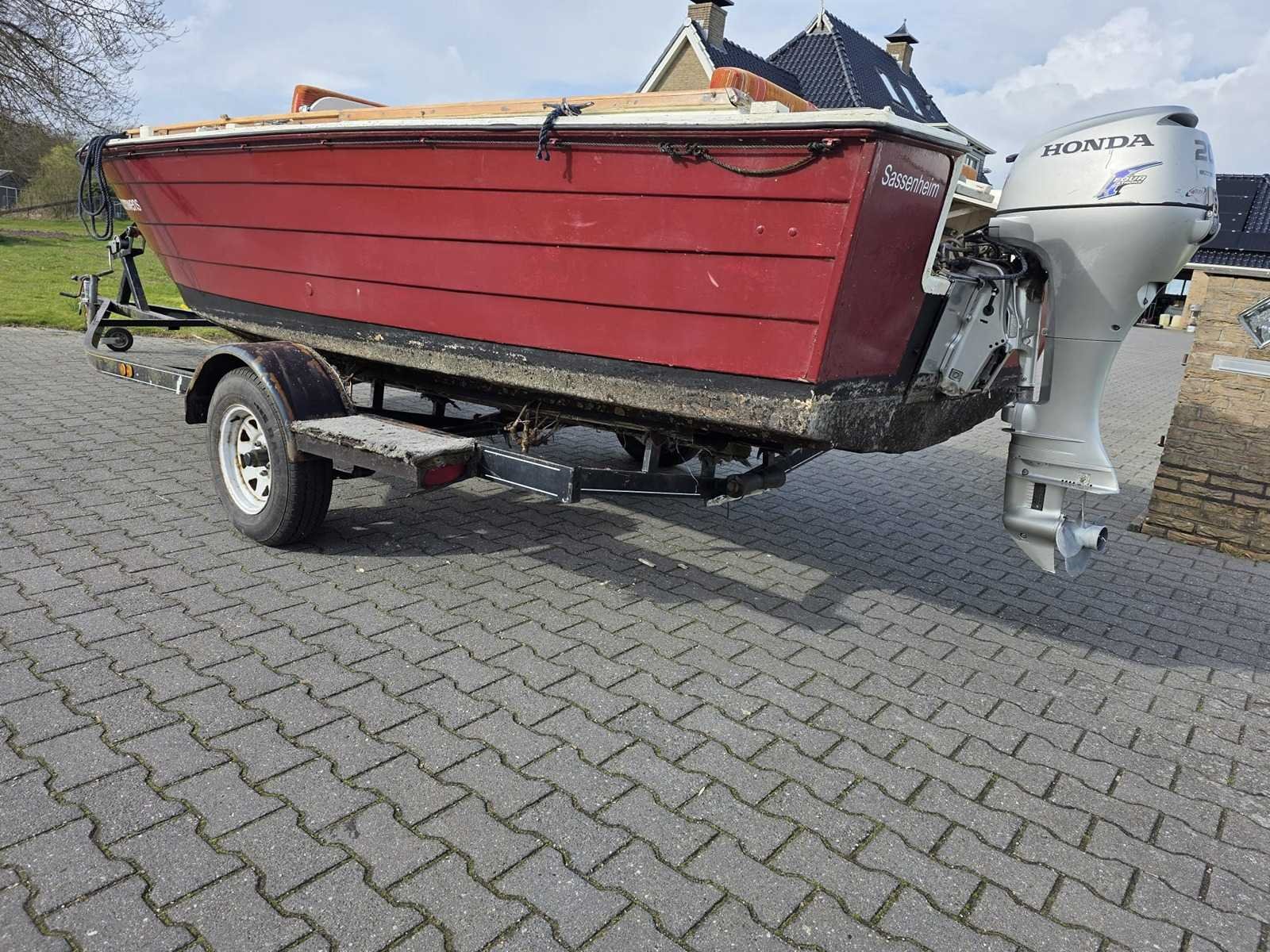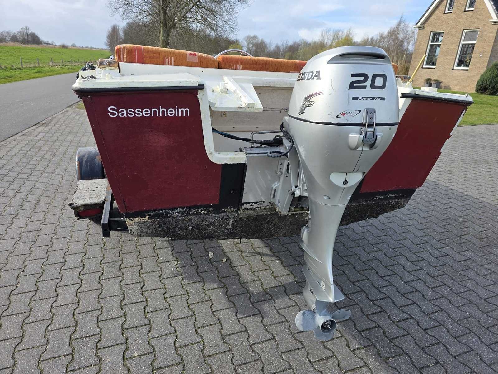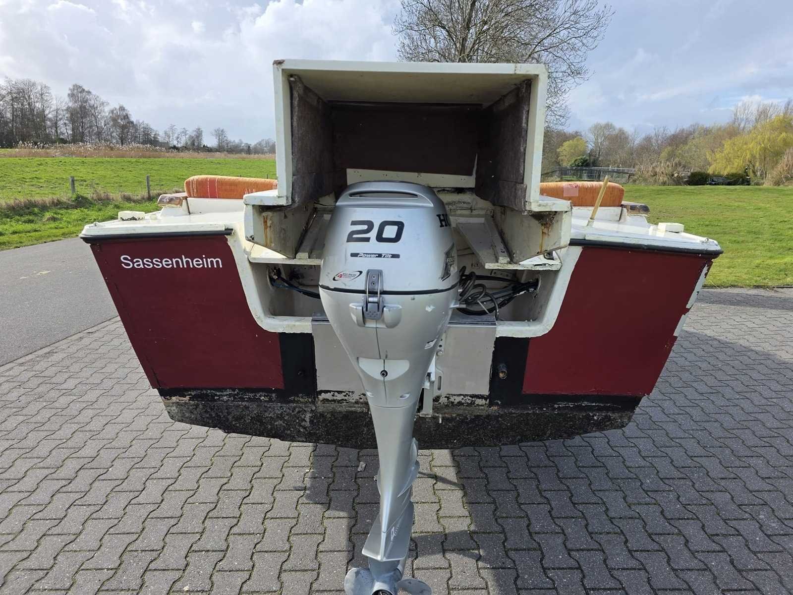 Sloep met Aquatrail trailer en 20 pk Honda 4 takt met power tilt functie.; Voorzien van: - Honda 20 pk 4 takt buitenboordmotor - brandstoftank - accu - afdekzeil - kuiptent - windscherm - kussens op maat - stootkussens en touwen - veel opbergruimte onder alle banken - Aquatrail boottrailer met losse verlichtings balk Lengte 540 cm Breedte 220 c Geen kentekenregistratie op trailer en boot Merk: Sloep Type: Aquatrail Trailer Rompmateriaal: Polyester Brandstof: benzine Lengte over alles: 5,40m Breedte formaat: 2,20m Type motor: Honda 20 PK 4-takt Binnenboord: false