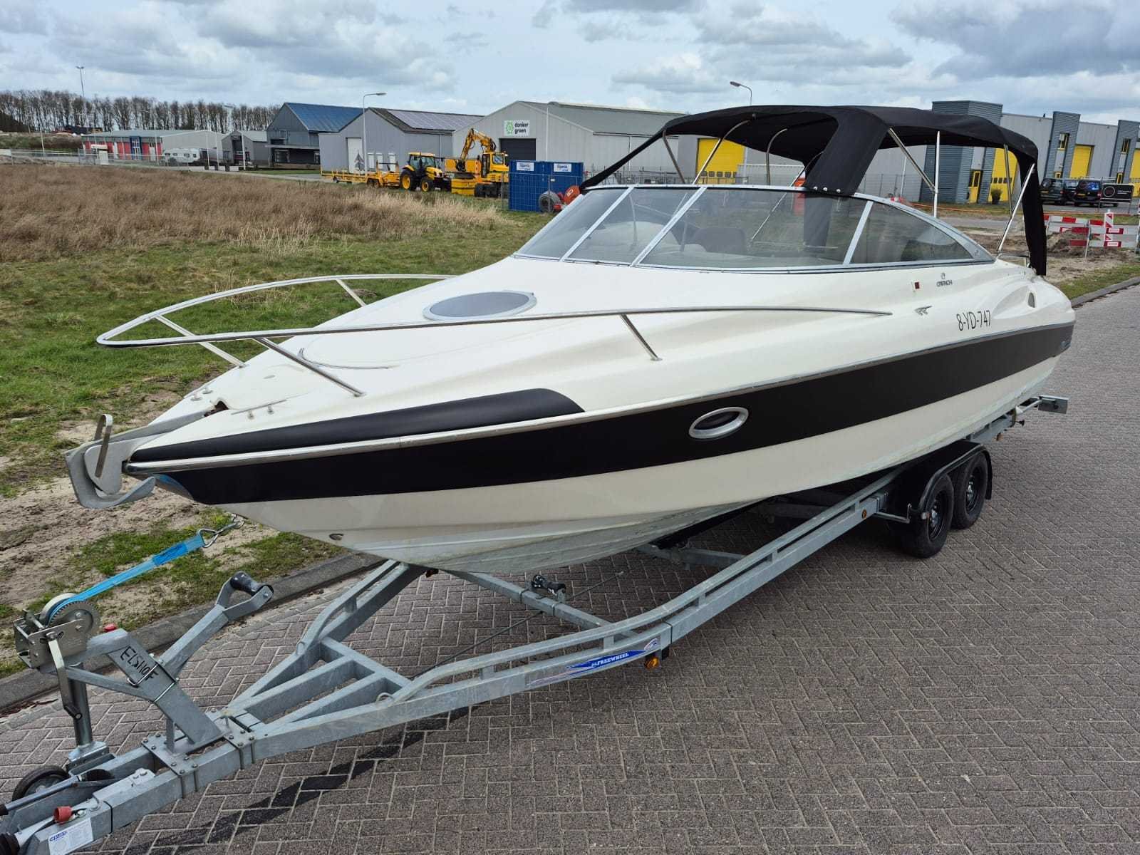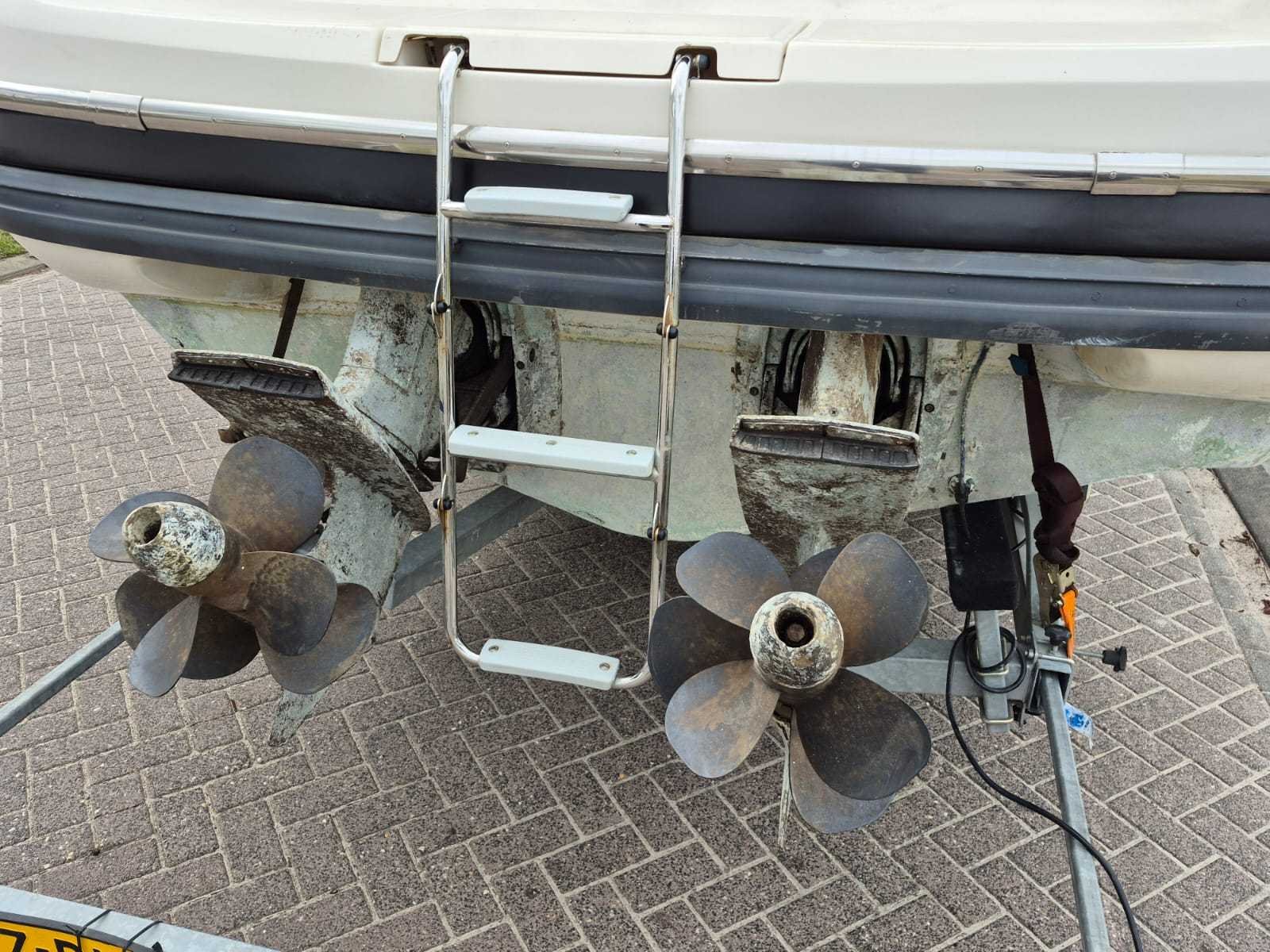 Cranchi Corallo 840 Italiaans design Bouwjaar 1995 8,40 mtr. lang 2,90 mtr. breed 2x Volvo penta 2x 205 pk 5.0L V8 Benzine 654 uur Zgan kap/tent Electrische motorkap Radio Keuken Toilet Buitendouche 300L benzine tank Electrische Anker 200L watertank Slaapcabine Walstroom Freewheel trailer 3500kg Bj 2021 13 polige stekker Werkende verlichting: registratie op trailer en boot Merk: Cranchi Corallo Type: 840 Rompmateriaal: Polyester Brandstof: Benzine Serienummer: 4924 Registratie nummer: 8-YD-747 Type motor: Volvo Penta 2x 205 PK Binnenboord: true Afgelezen urenstand: 654hr Inhoud brandstoftank: 300l Inhoud drinkwatertank: 200l Toilet: true Douche: true Trailer merk + type: Freewheel 3500 kg bouwjaar 2021 Kenteken trailer: 33-WZ-BX