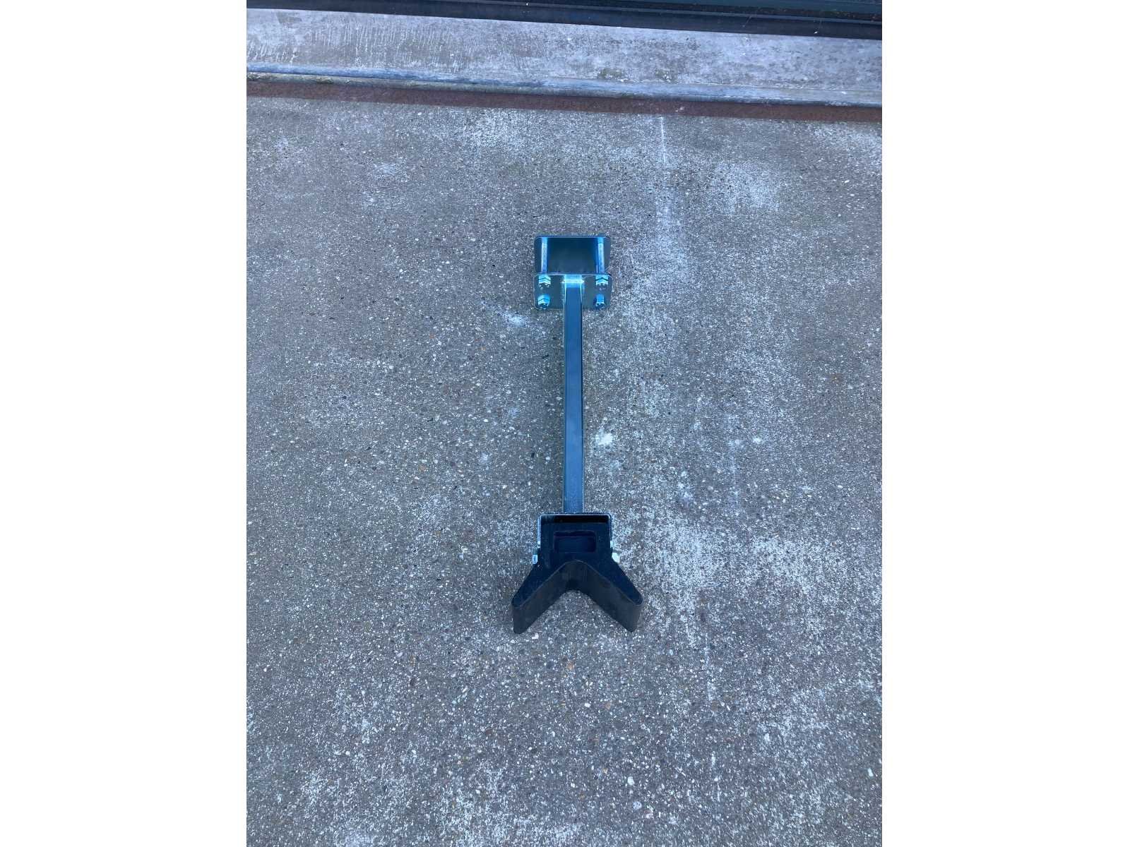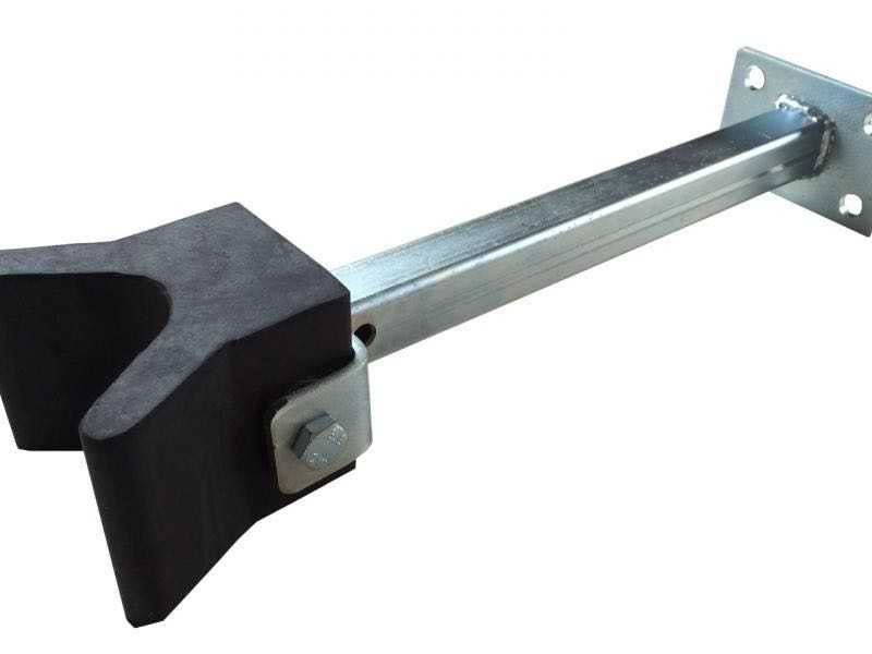 Boegvanger kussen specificaties: Hoogte: 96mm breedte: 112mm Diepte: 79 mm Boegvanger houder specificaties: Lengte houder: 35cm Voetplaat breedte: 105mm / ruimte tussen de gaten 61mm Voetplaat hoogte: 85mm Boutgaten diameter: 10mm (M10) Merk: BKS Model: Rubberen boegvanger met houder Materiaal: rubber / gegalvaniseerd metaal