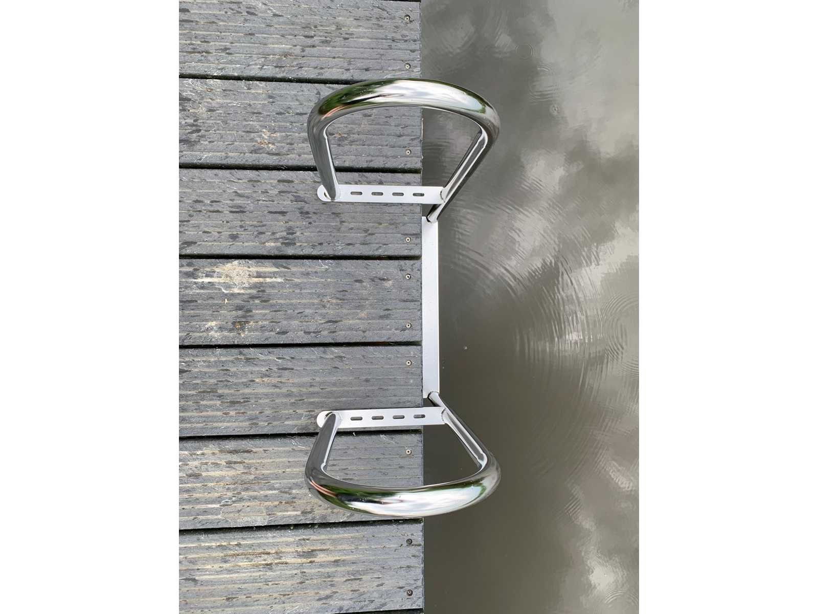 Volledig geschikt voor zoetwater. • Variant 2: 6 treden, met antislip-gaten Specificaties: • Tredenbreedte: 75 mm • 500 mm tussen de montagebeugels • Afwerking: gepolijst en gepassiveerd • Toepassing: voor waterwoningen, recreatieparken en aanlegplaatsen Trappen bieden veilige en comfortabele toegang tot het water, duurzaam en onderhoudsarm. Merk: BKS - ZTE Model: 304 Product type: 6 treden, met antislip-gaten Materiaal: RVS