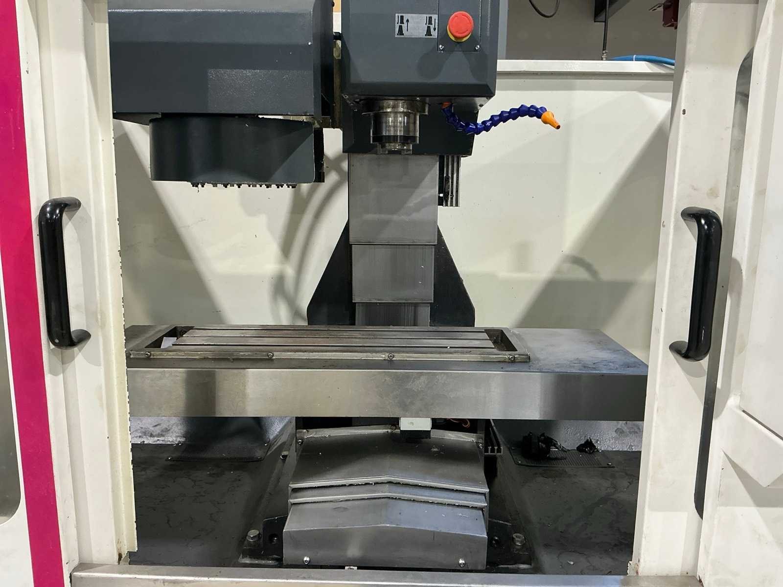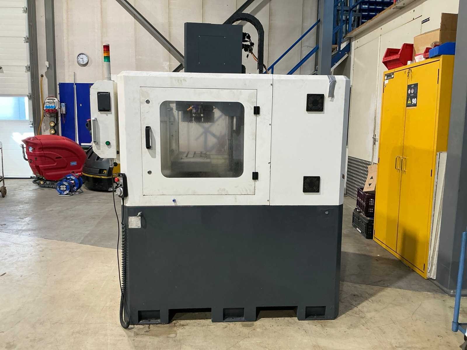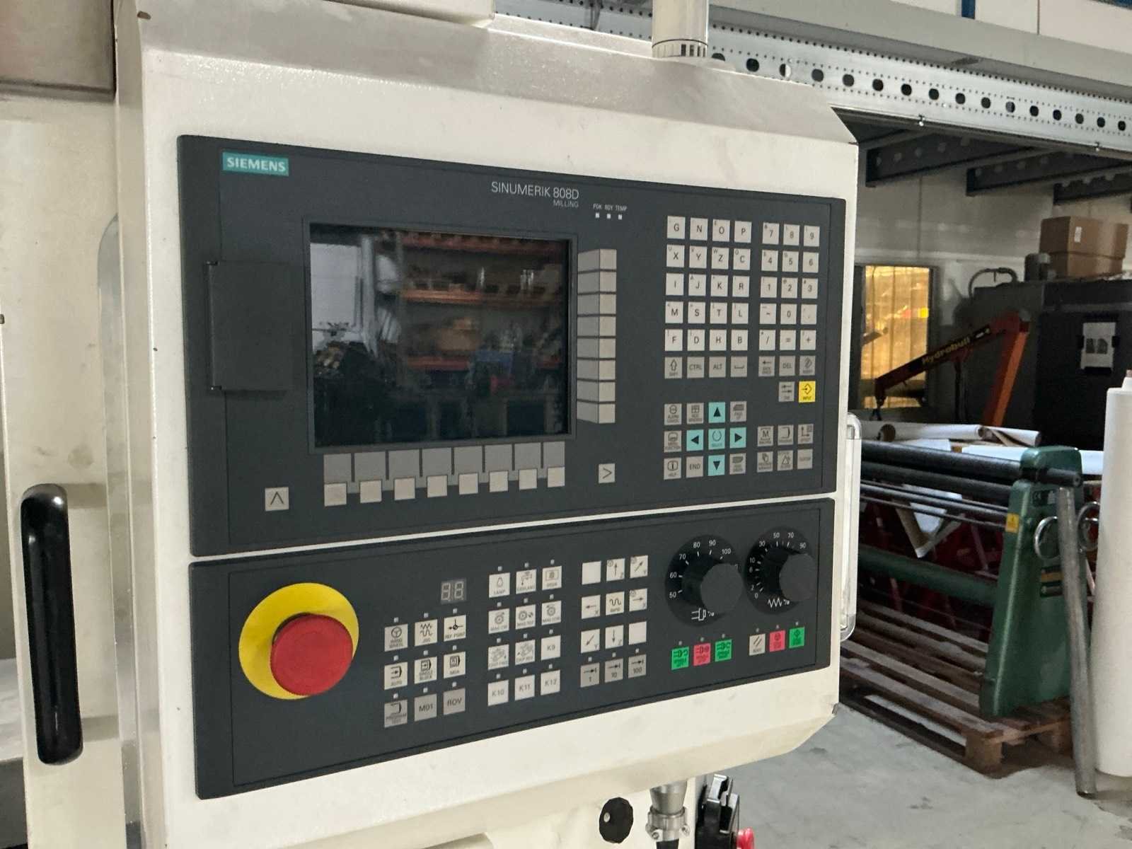 Gereedschaps wisselstation voor 8 gereedschappen (1x houder gebroken); Ca. 37x diverse gereedschapshouders met gereedschap; waaronder boren, frezen, tappen, spantangen en meettaster Merk: Optimum Type: Optimill F 4TC Bouwjaar: 2013 Serienummer: J44130103ER Verplaatsing x-as: 310mm Verplaatsing y-as: 200mm Verplaatsing z-as: 300mm Opname: SK30 Snelheid van n =: 50rpm Snelheid tot n =: 6000rpm Tafel afmeting l: 695mm Tafel afmeting b: 210mm CNC-besturing, merk, type: Siemens Sinumerik 808D Aansluiting: 400V Machinegewicht: 1500kg Totale afmeting L: 1900mm Totale afmeting Breedte: 1750mm Totale afmeting Hoogte: 2300mm