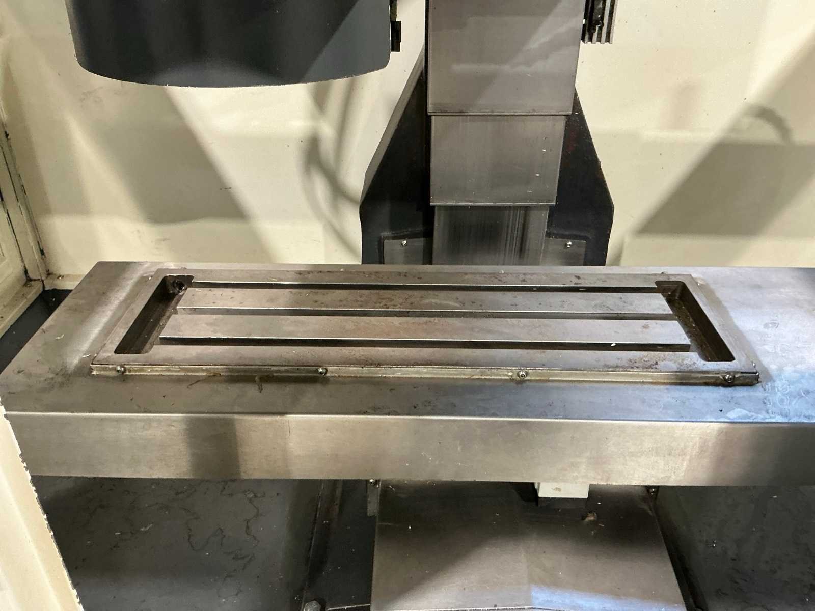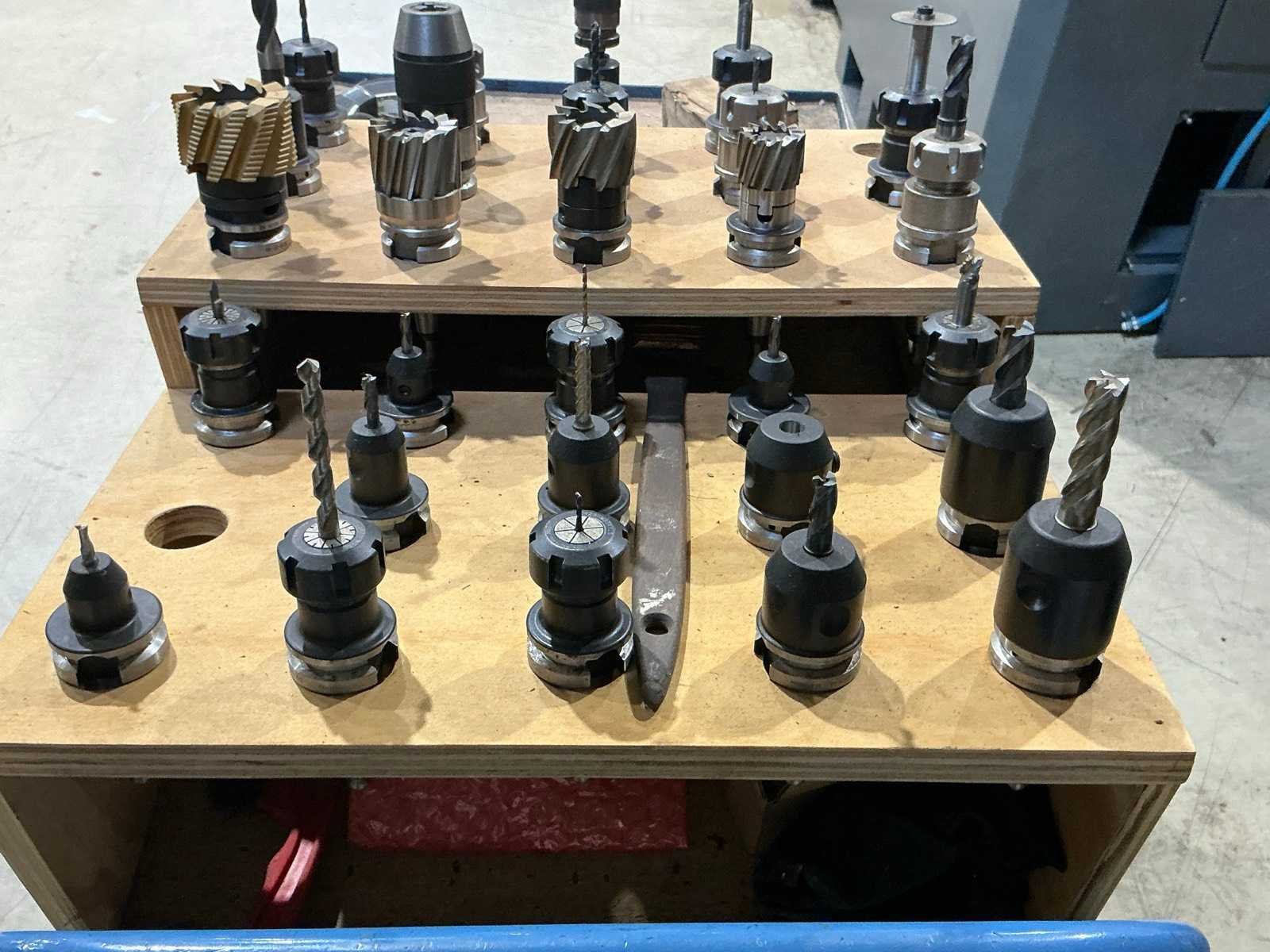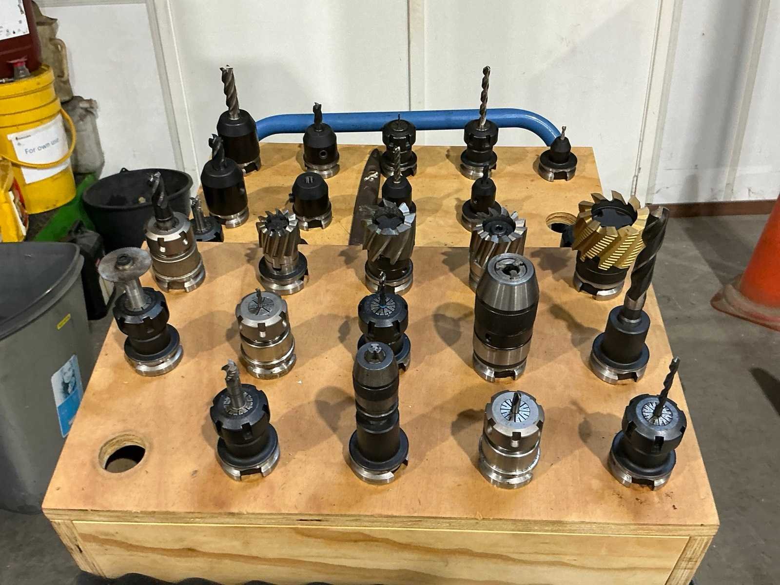Gereedschaps wisselstation voor 8 gereedschappen (1x houder gebroken); Ca. 37x diverse gereedschapshouders met gereedschap; waaronder boren, frezen, tappen, spantangen en meettaster Merk: Optimum Type: Optimill F 4TC Bouwjaar: 2013 Serienummer: J44130103ER Verplaatsing x-as: 310mm Verplaatsing y-as: 200mm Verplaatsing z-as: 300mm Opname: SK30 Snelheid van n =: 50rpm Snelheid tot n =: 6000rpm Tafel afmeting l: 695mm Tafel afmeting b: 210mm CNC-besturing, merk, type: Siemens Sinumerik 808D Aansluiting: 400V Machinegewicht: 1500kg Totale afmeting L: 1900mm Totale afmeting Breedte: 1750mm Totale afmeting Hoogte: 2300mm