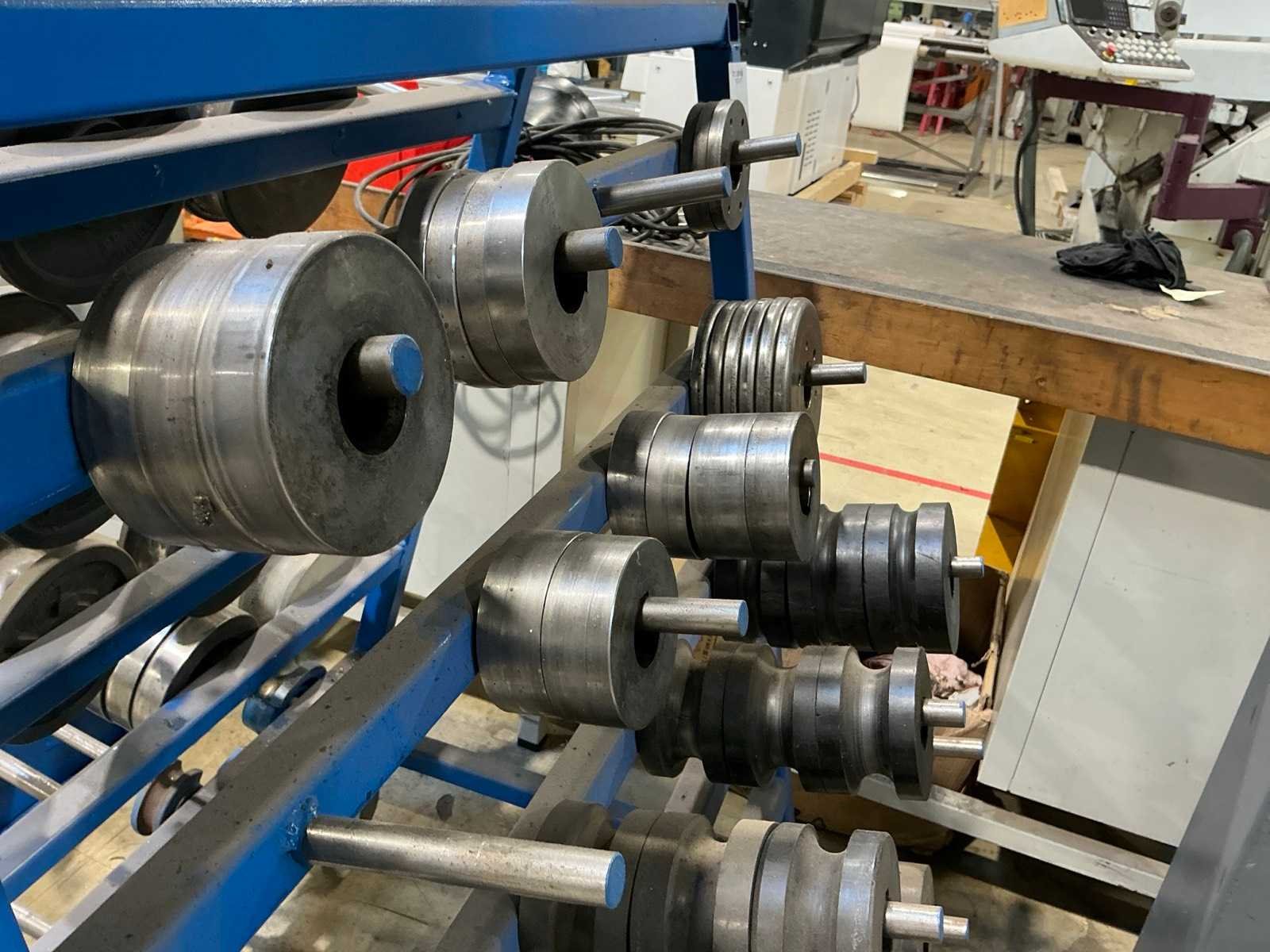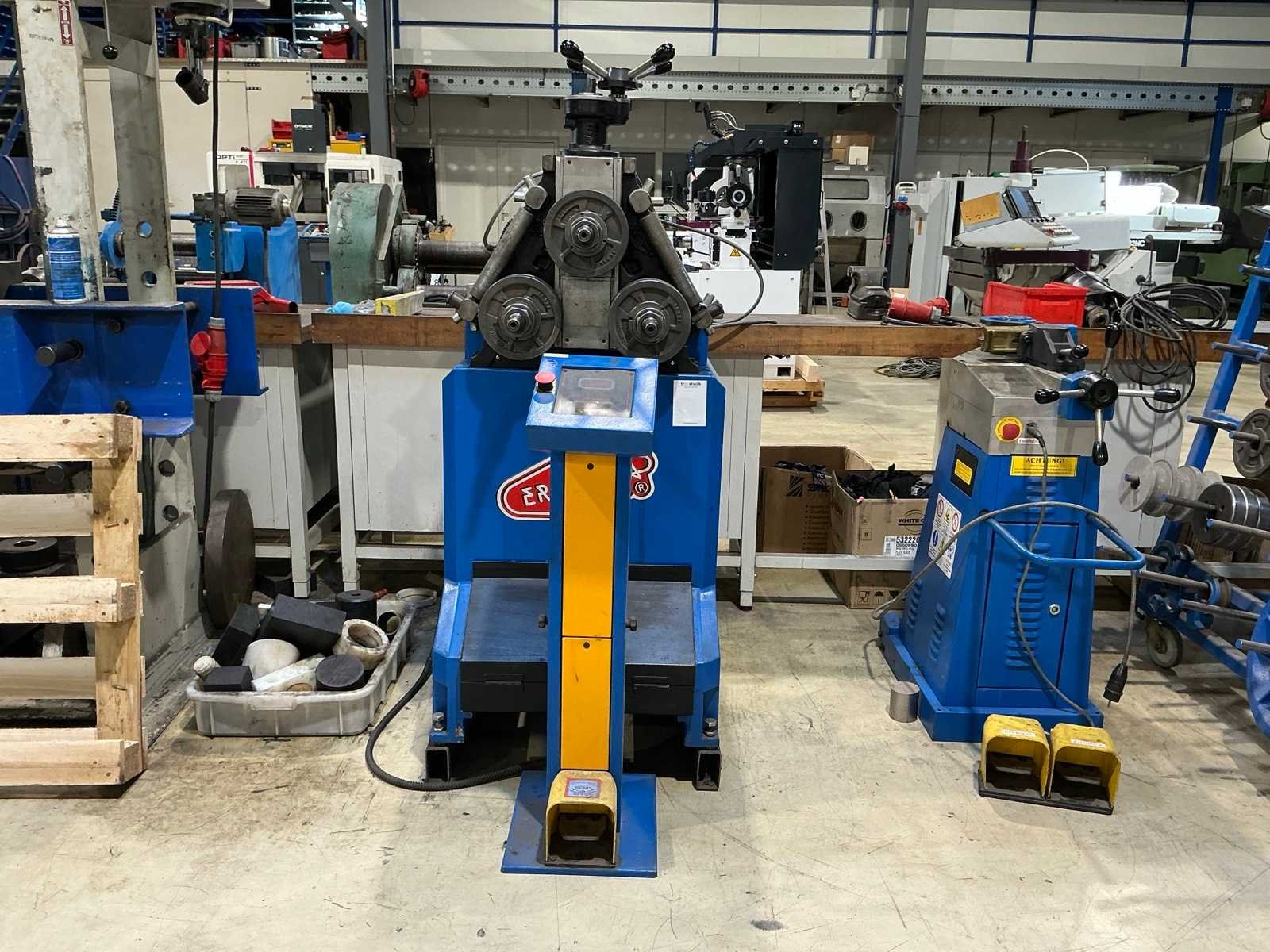 Capaciteit ronde buis: 70 x 1,5 mm; Capaciteit hoekprofiel: 50 x 50 x 6 mm; met 15x set diverse walsmallen (zonder stelling). Merk: Ercolina Type: CE40MR3 Bouwjaar: 2010 Serienummer: 0210056 Aantal rollen: 3 Horizontaal: true As Ø: 40 Voetbediening: true Digitale uitlezing: true Motorvermogen (kW): 1.85kW Aansluiting: 400V Machinegewicht: 285kg Afmeting l: 1000mm Afmeting b: 660mm Afmeting h: 1620mm