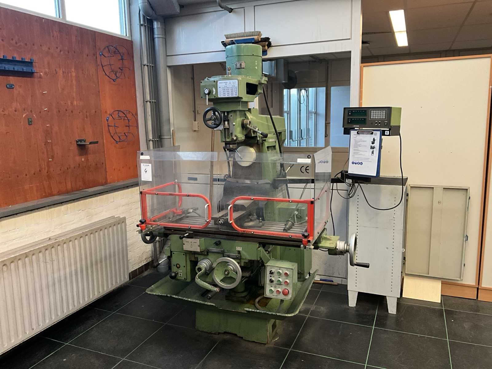 Met Mitutoyo digitale uitlezing op X-as en Y-as Merk: DAH LIH Type: DL-GH1500 Bouwjaar: 1987 Serienummer: 150975 Verplaatsing x-as: 580mm Verplaatsing y-as: 210mm Verplaatsing z-as: 500mm Opname iso: 40 Aantal snelheden: 8 Snelheid van n =: 220rpm Snelheid tot n =: 1300rpm T-gleuf opspantafelafmeting L: 1050mm T-gleuf opspantafelafmeting B: 230mm Koelmiddelpomp: true Aansluiting: 400V