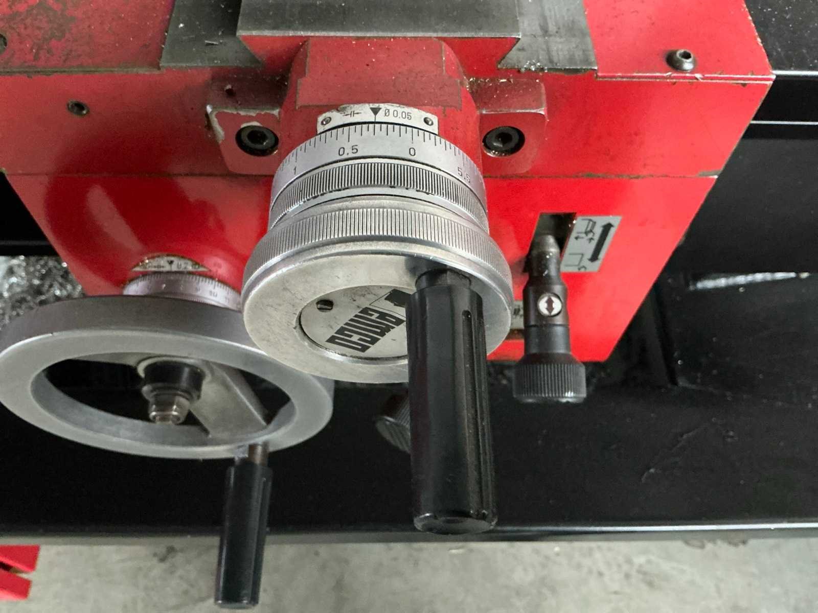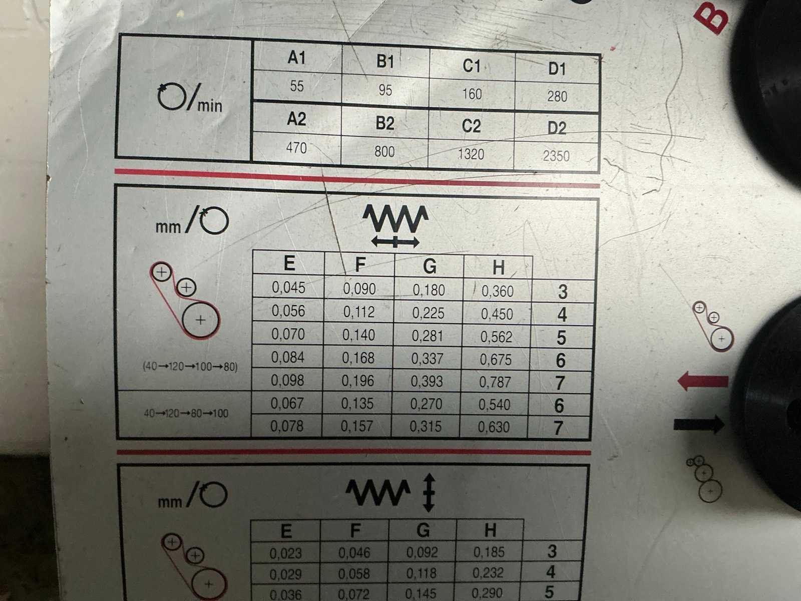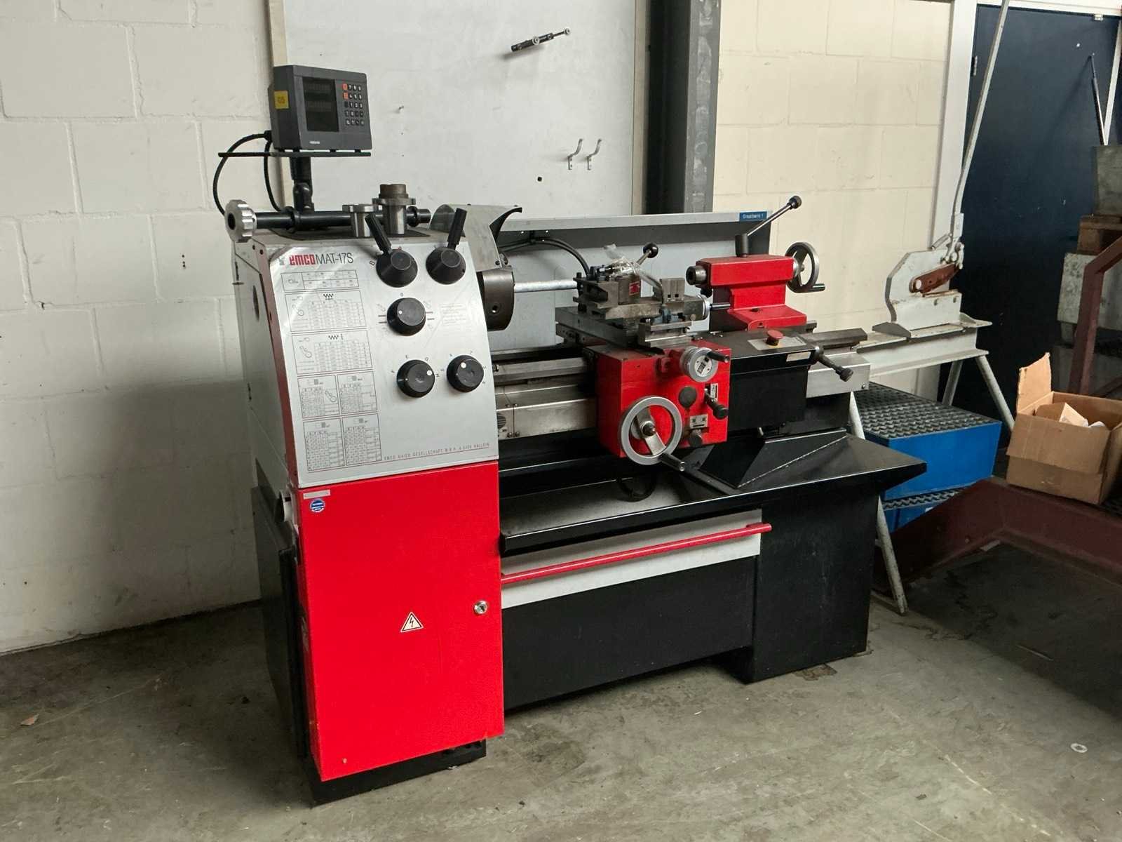 Heidehain digitale uitlezing; met 3-klauwplaat Merk: Emco Type: MAT-17S Bouwjaar: 1999 Serienummer: D3A M6 002 Draailengte: 700mm Holle spil Ø: 40mm Aantal snelheden: 8 Snelheid van n =: 55rpm Snelheid tot n =: 2350rpm Aansluiting: 400V Afmeting l: 1650mm Afmeting b: 900mm Afmeting h: 1650mm
