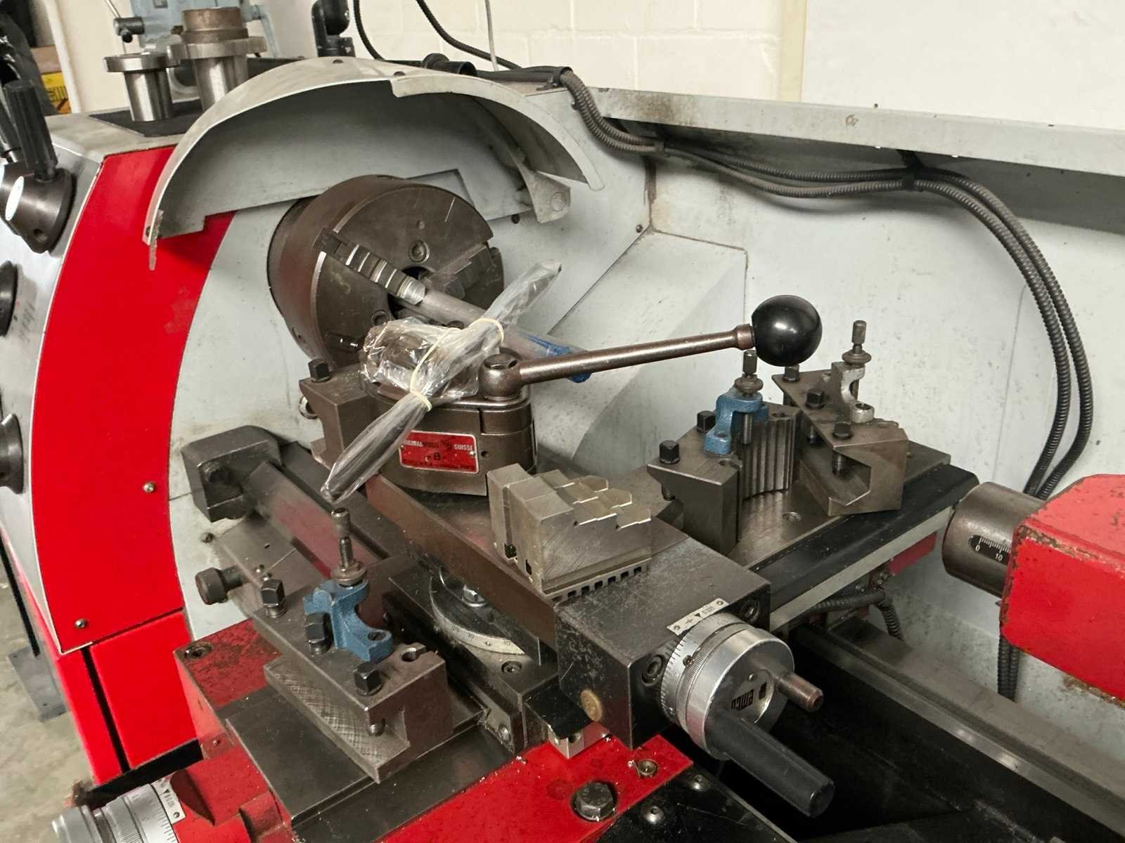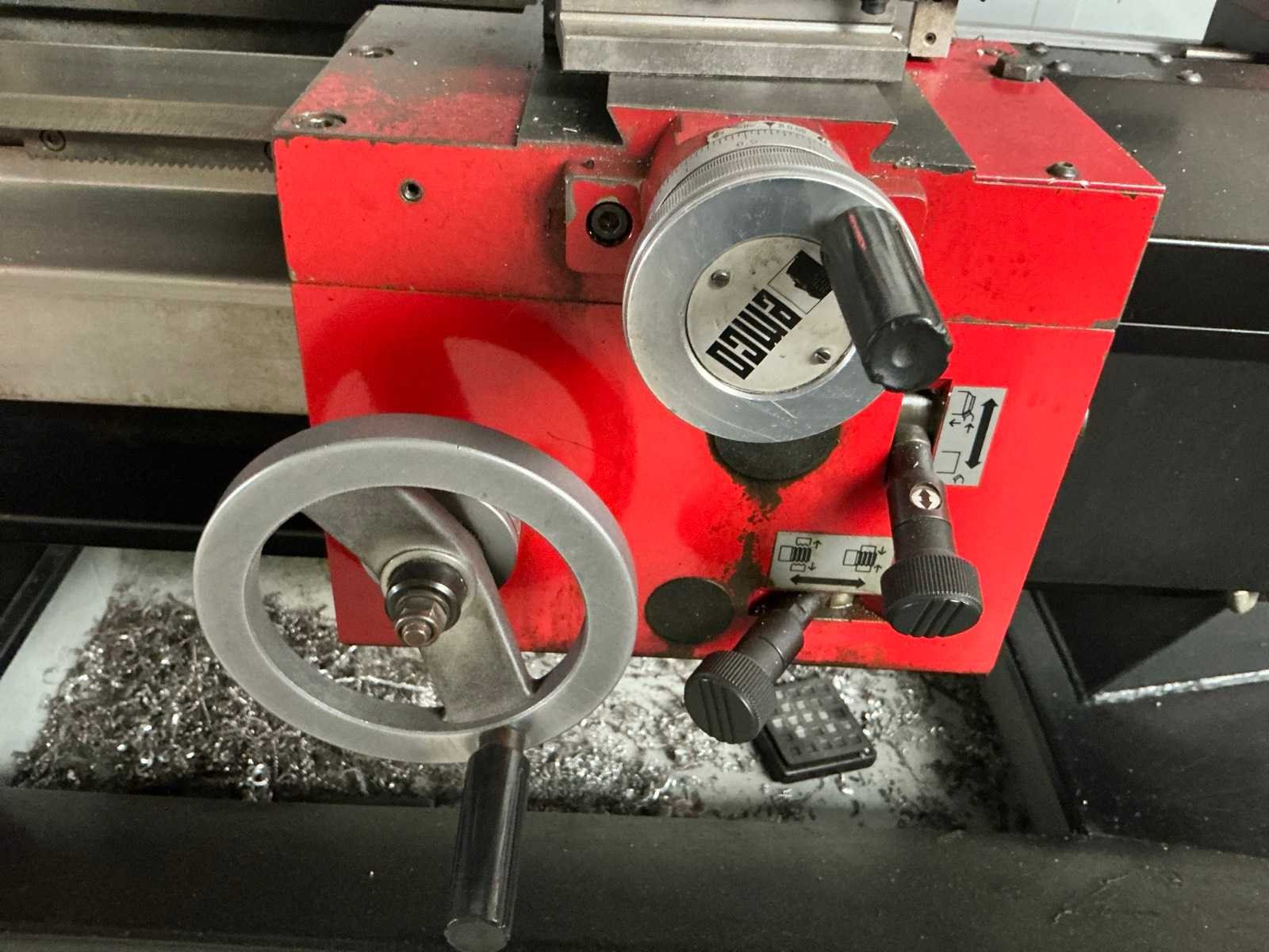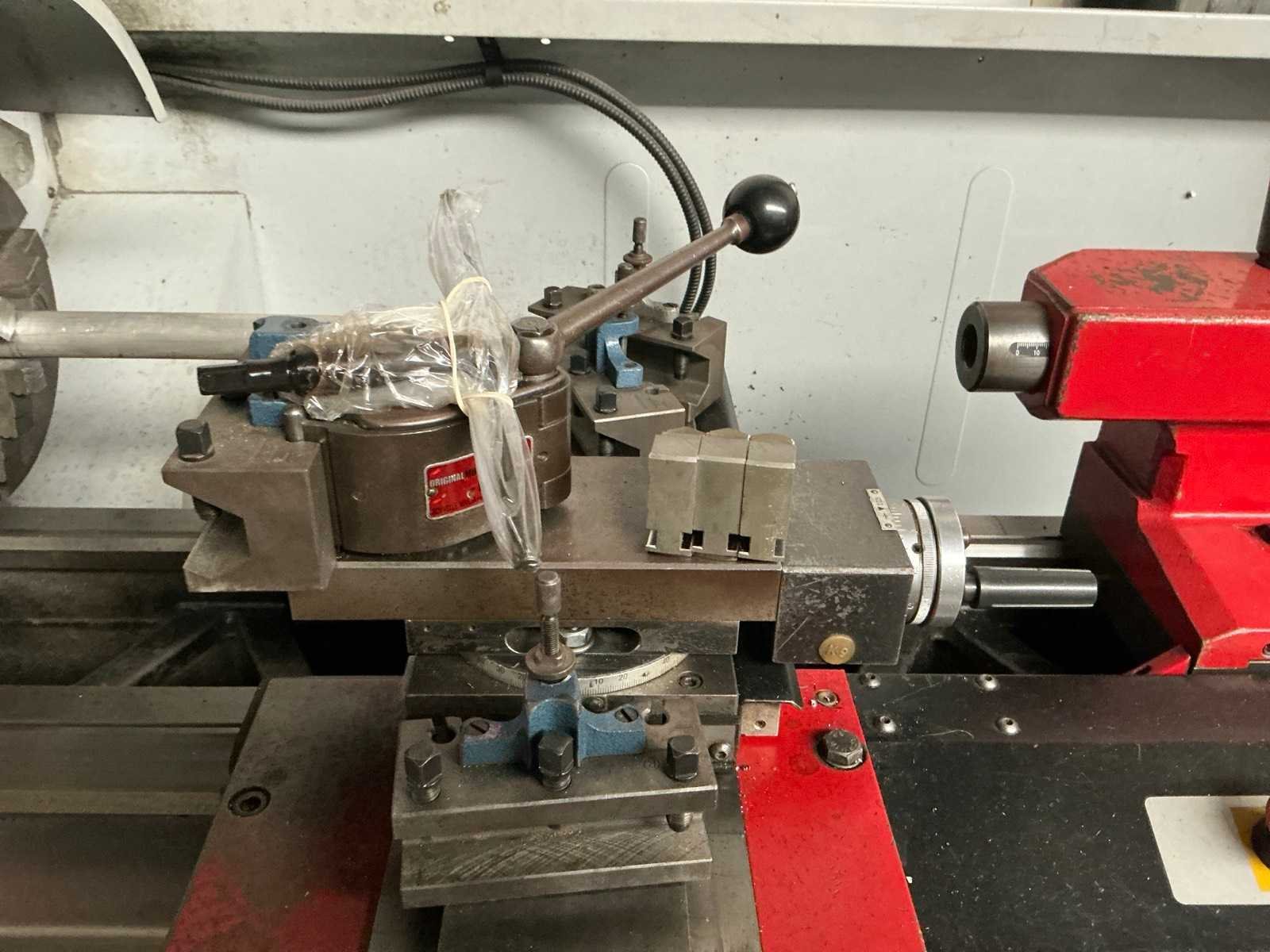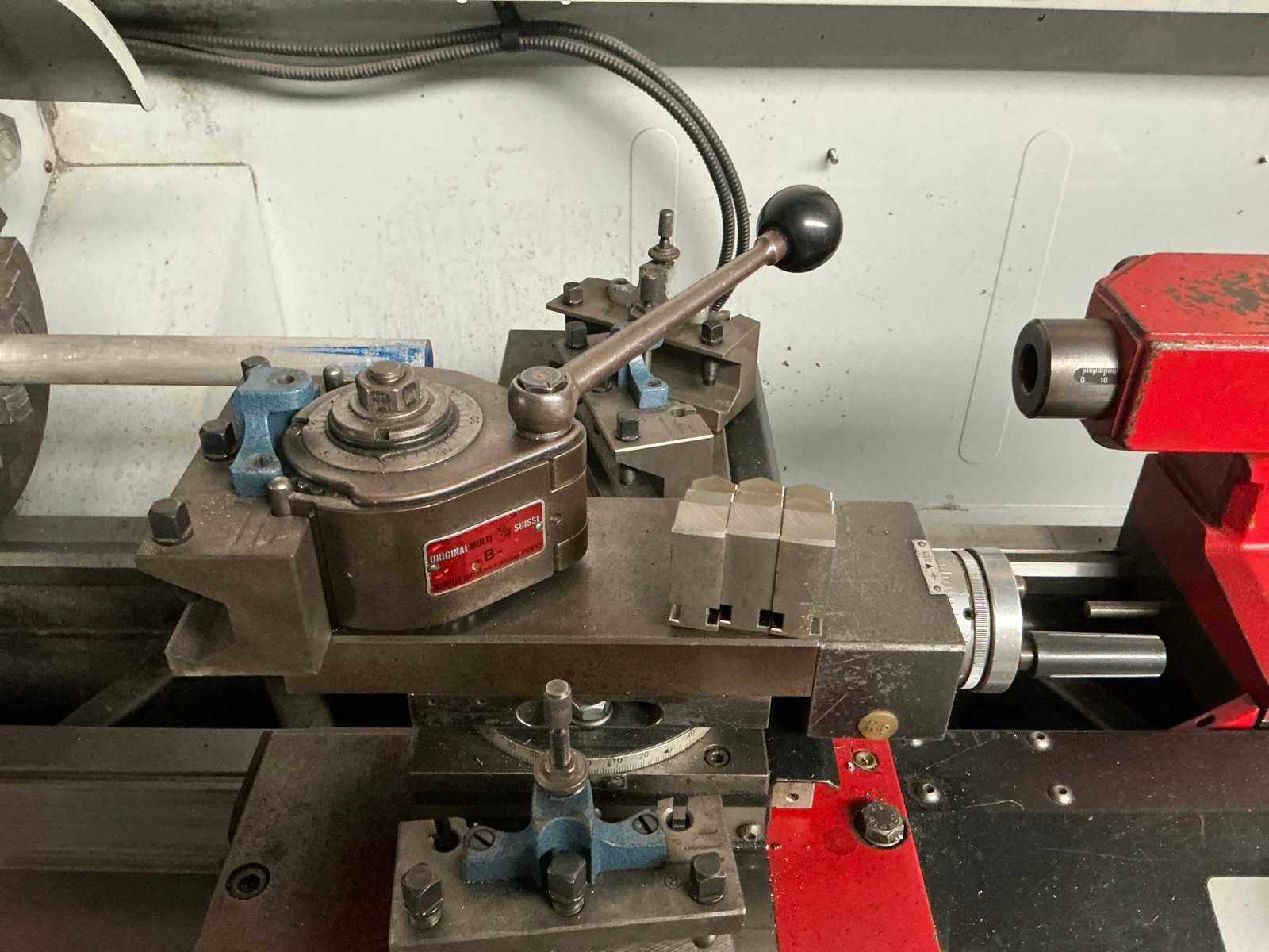 Heidehain digitale uitlezing; met 3-klauwplaat Merk: Emco Type: MAT-17S Bouwjaar: 1999 Serienummer: D3A M6 002 Draailengte: 700mm Holle spil Ø: 40mm Aantal snelheden: 8 Snelheid van n =: 55rpm Snelheid tot n =: 2350rpm Aansluiting: 400V Afmeting l: 1650mm Afmeting b: 900mm Afmeting h: 1650mm