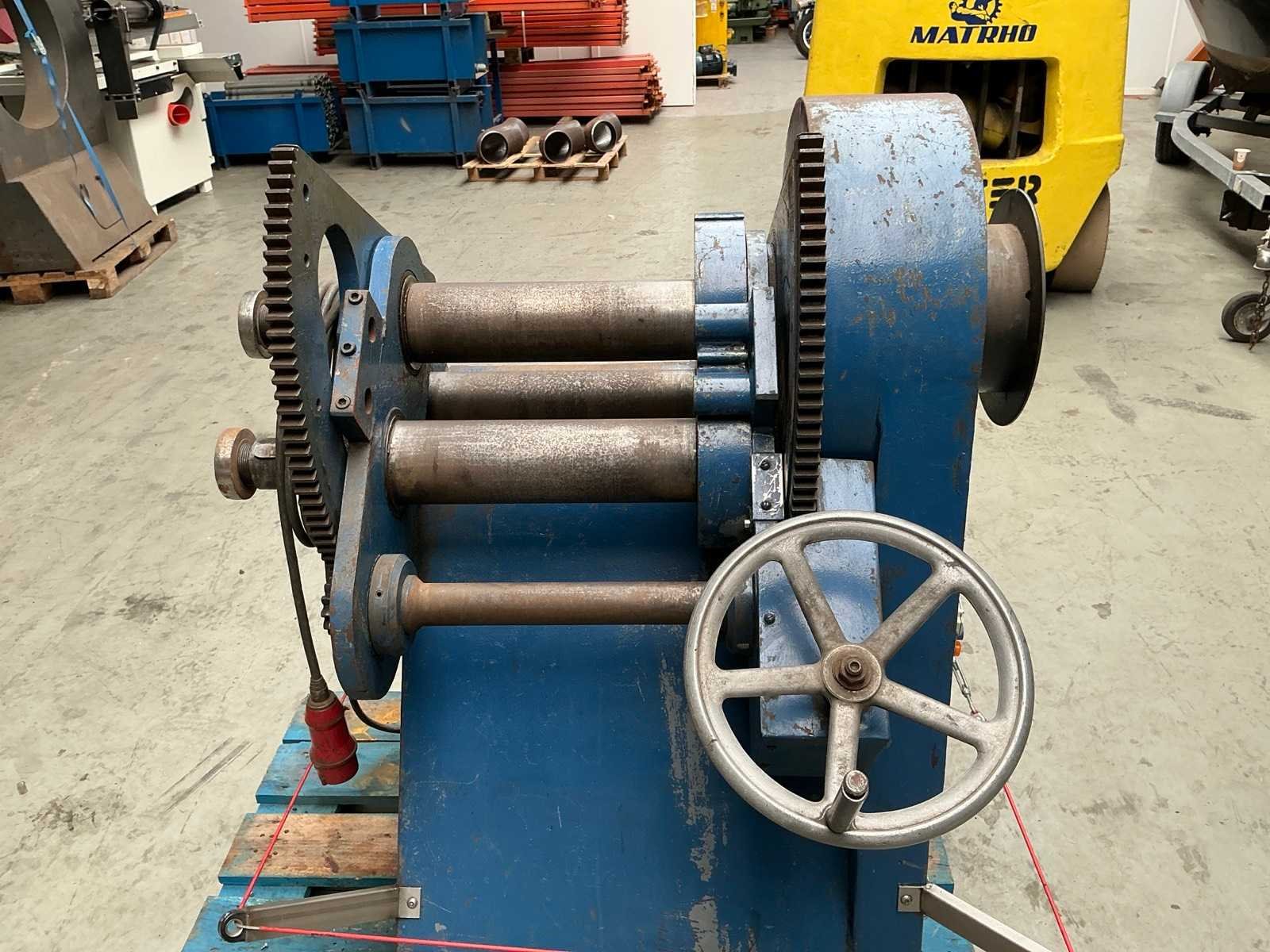 Merk: Yoga Serienummer: 6507201 Capaciteit lengte: 370mm Aantal rollen: 3 Bovenrol Ø ca.: 105mm Rollengte: 370mm Voetbediening: true Aansluiting: 400V Afmeting l: 1800mm Afmeting b: 900mm Afmeting h: 1230mm