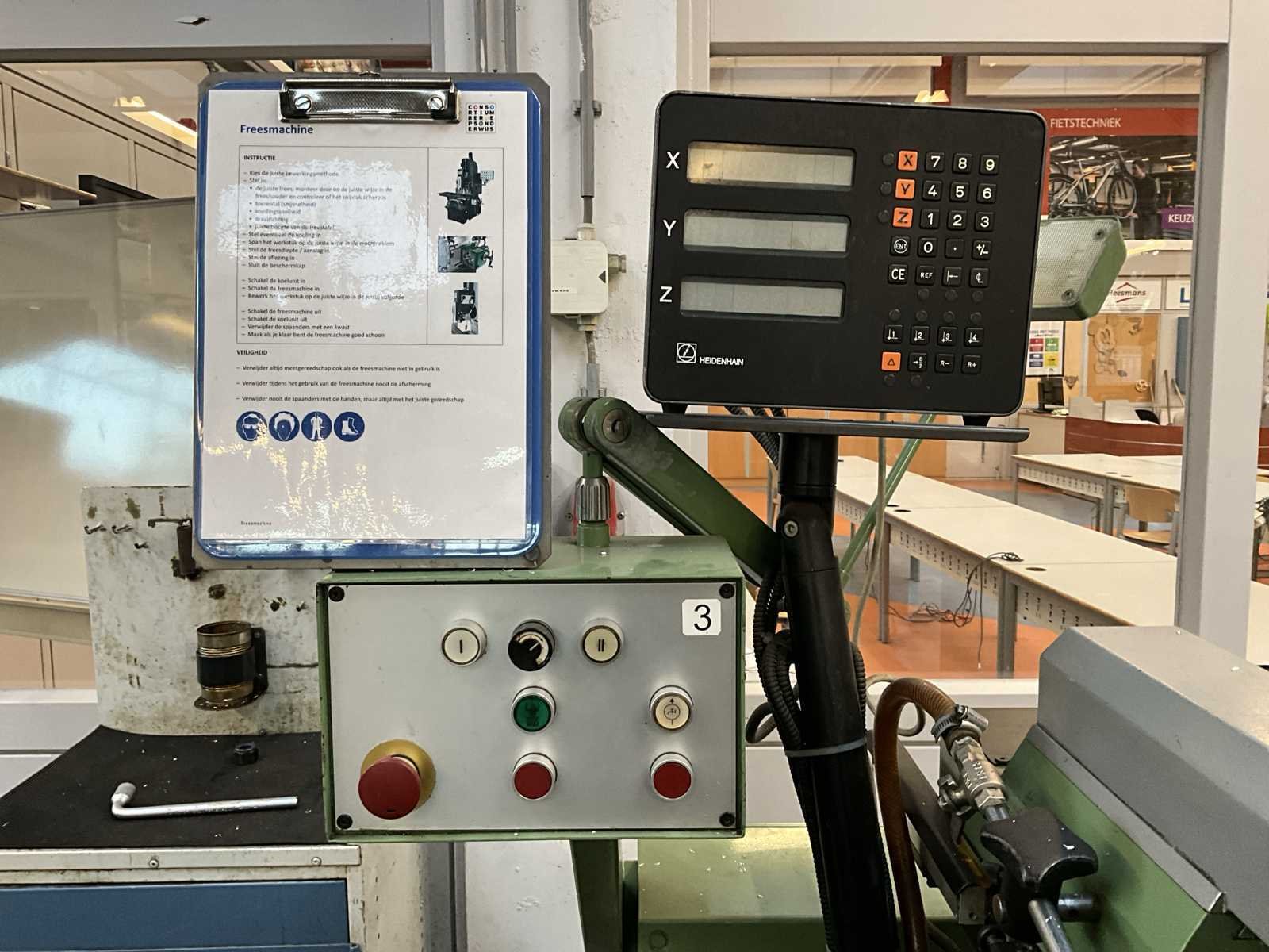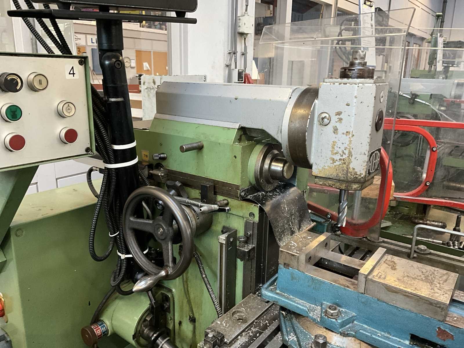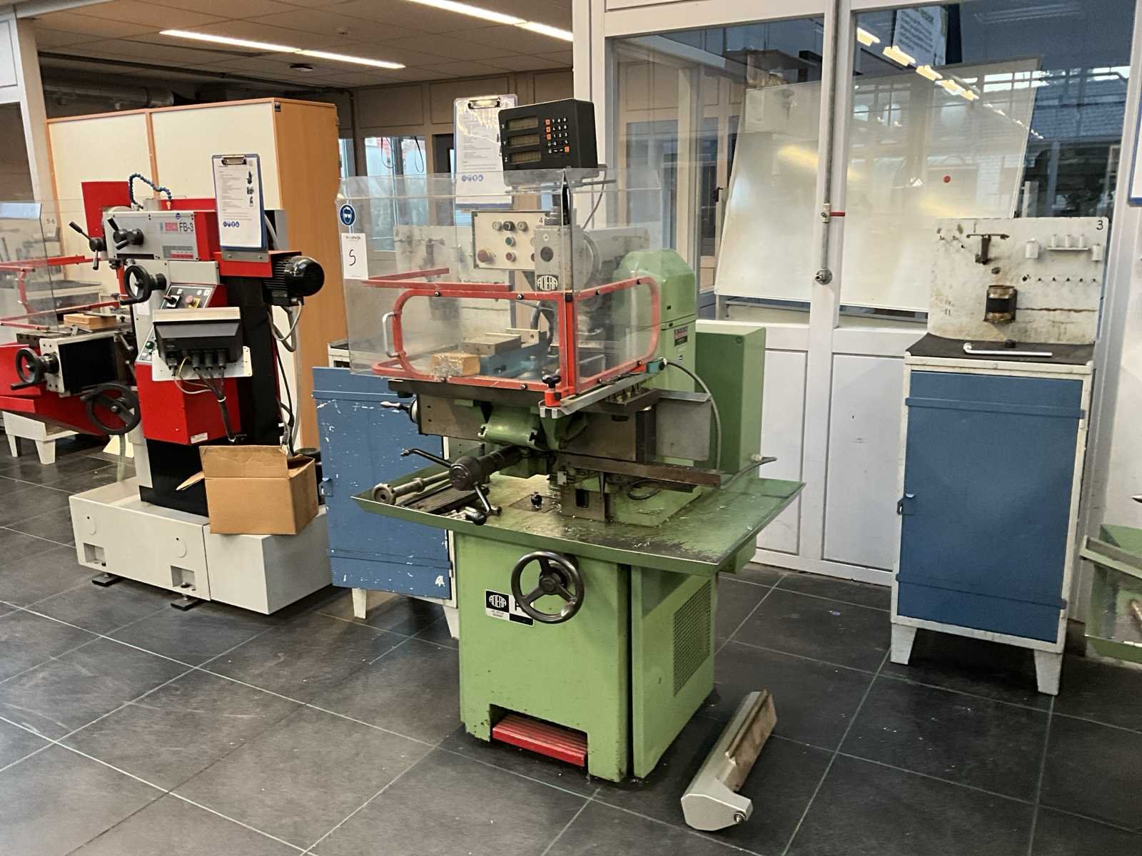 Opspantafel kantelbaar; Heidehain digitale uitlezing op de 3 assen; Aciera opname; met extra ram ca 540 mm; Merk: Aciera Type: F3 Verplaatsing x-as: 240mm Verplaatsing y-as: 170mm Verplaatsing z-as: 230mm Aantal snelheden: 8 Snelheid van n =: 100rpm Snelheid tot n =: 2000rpm T-gleuf opspantafelafmeting L: 700mm T-gleuf opspantafelafmeting B: 190mm Koelmiddelpomp: true Aansluiting: 400V Afmeting l: 1300mm Afmeting b: 1150mm Afmeting h: 1800mm