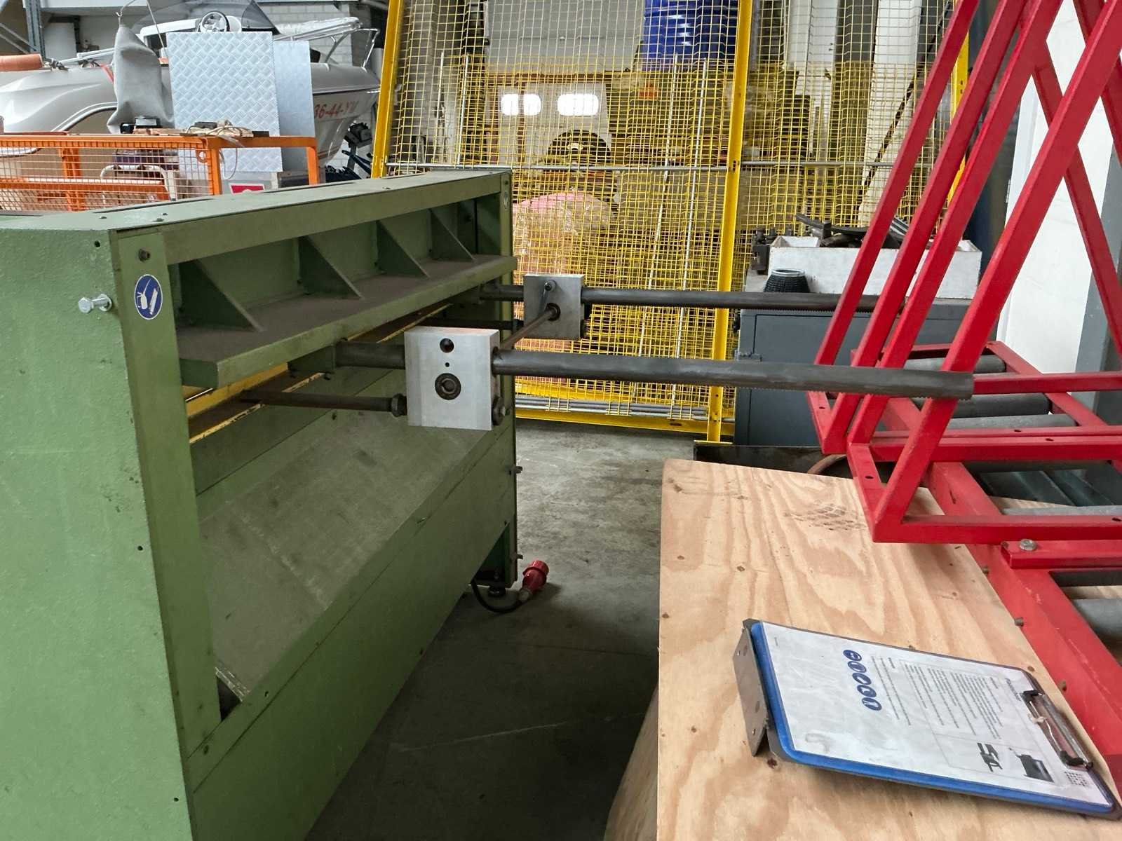 Met 2x veiligheids draadpaneel Merk: HM Type: JBS-1250/2.0 Bouwjaar: 1998 Serienummer: 430057 Snijlengte: 1250mm Max. plaatdikte: 2mm Achteraanslag handbediend: true Achteraanslag bereik: 1000mm Aansluiting: 400V Afmeting l: 1400mm Afmeting b: 1500mm