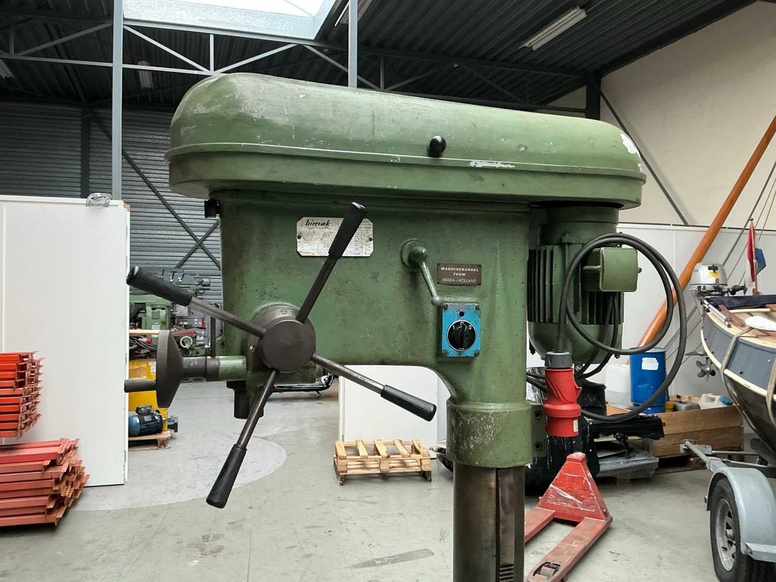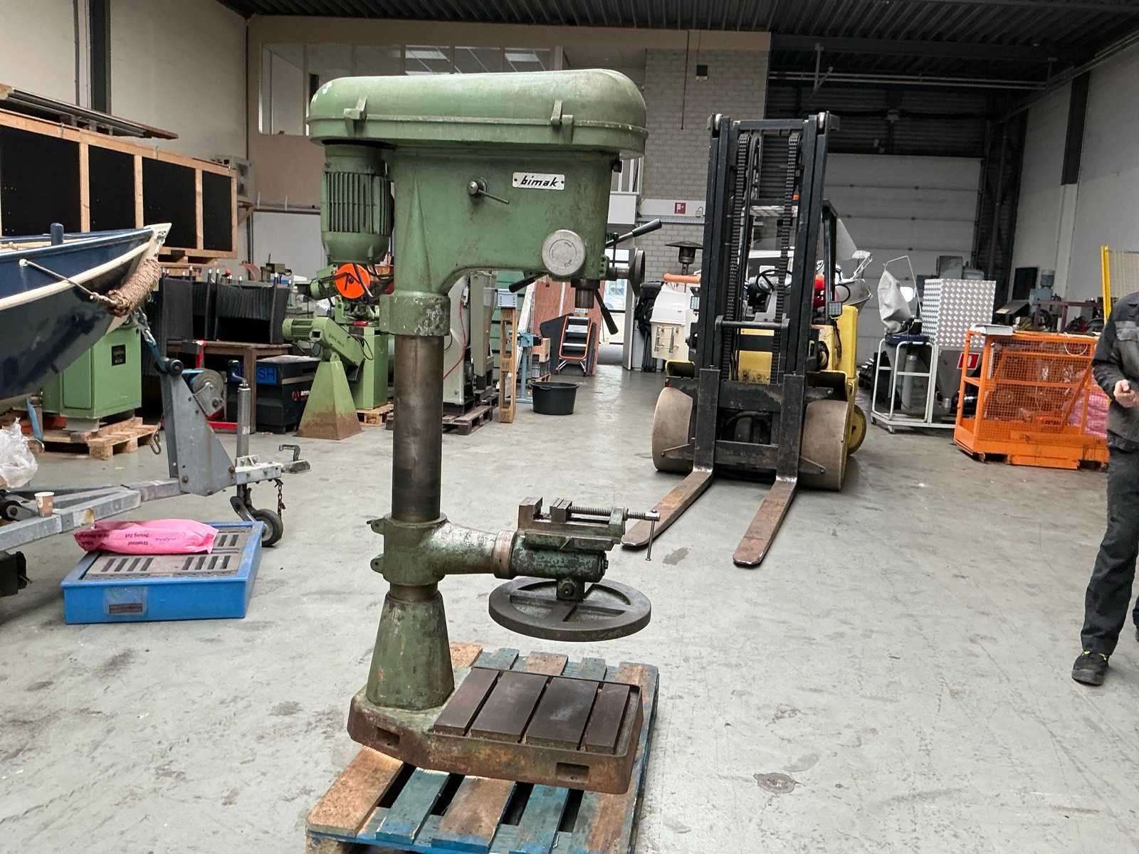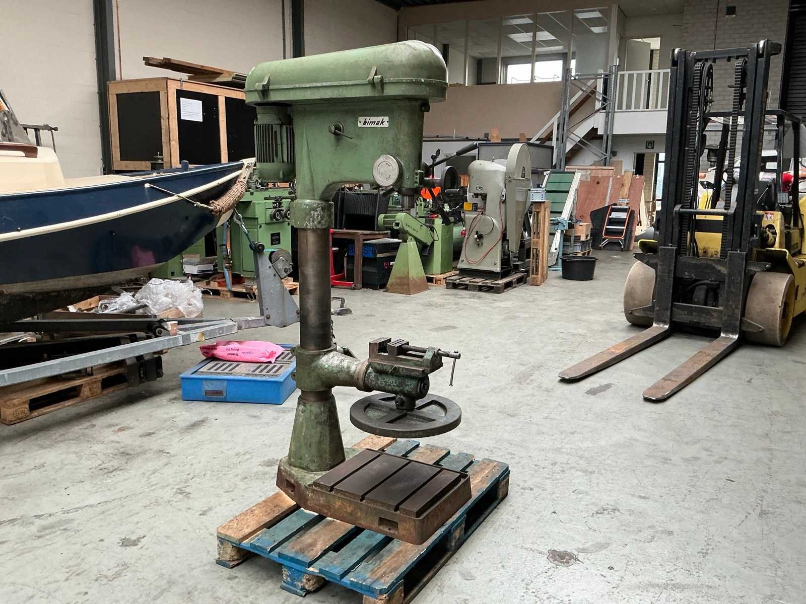 Tafel ø 470 mm; 1,8 HP; Merk: Bimak Aantal snelheden: 10 Spindelsnelheid van n =: 55rpm Spindelsnelheid tot n =: 1000rpm Boordiepte: 150mm Uitlading: 370mm Opname mc: 3 Aansluiting: 400V Afmeting l: 1000mm Afmeting b: 500mm Afmeting h: 1800mm