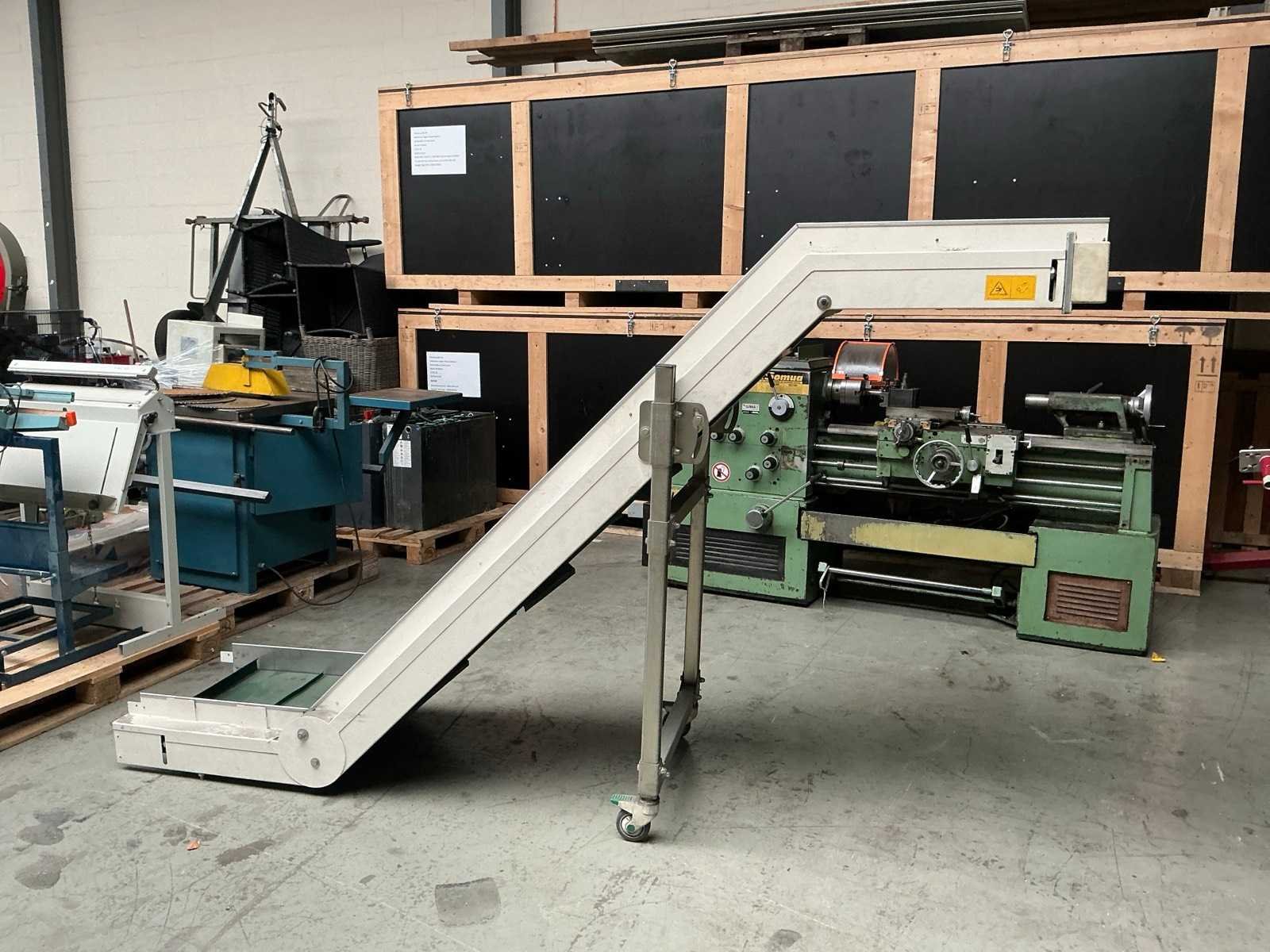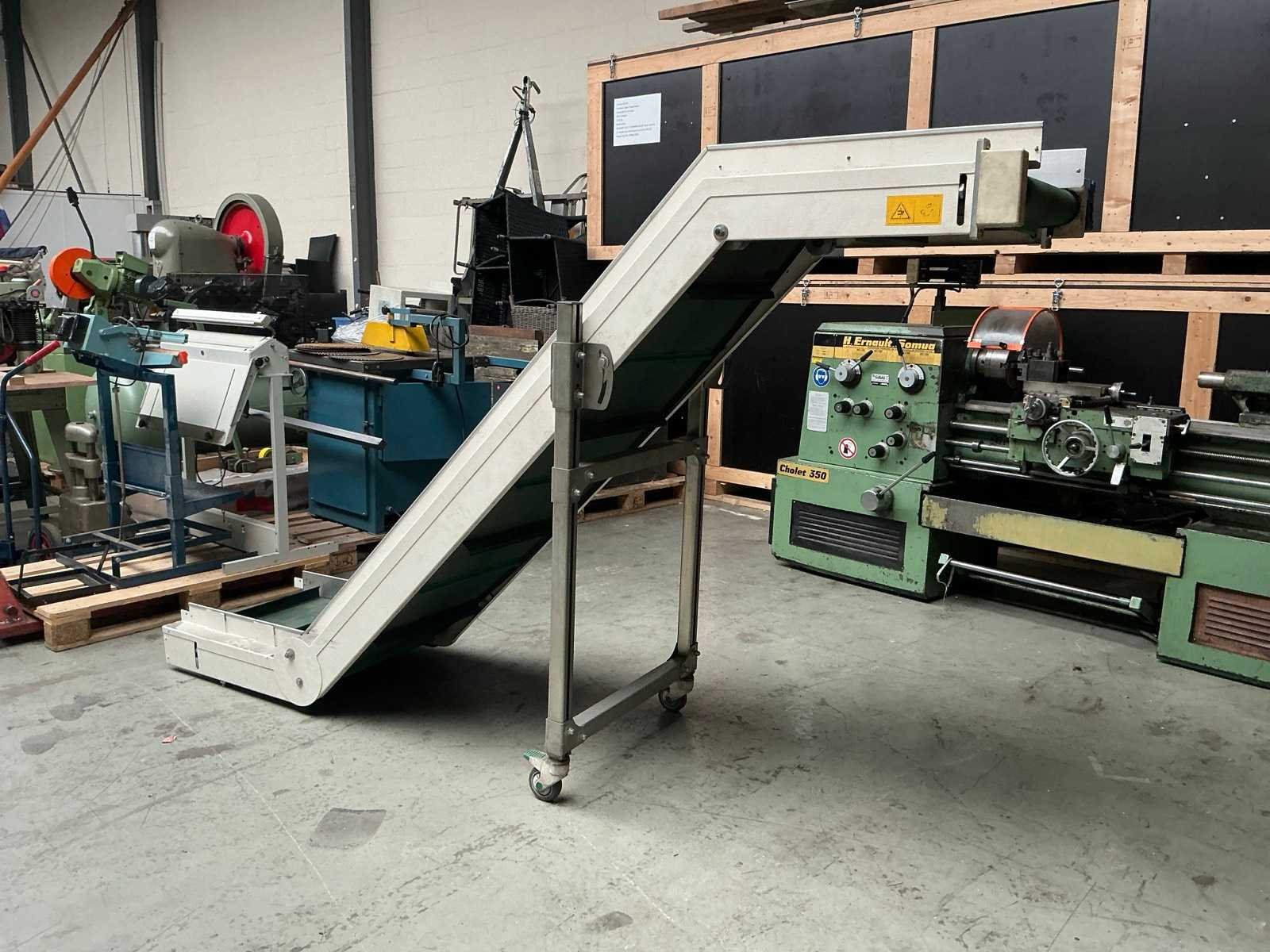 Uitstorthoogte 1550 mm; Merk: Virginio Nastri Type: CBD M 5 Bouwjaar: 2007 Serienummer: 16048 Band afm. b: 500mm Elektrisch aangedreven: true Aansluiting: 400V Totale afmeting L: 2850mm Totale afmeting Breedte: 770mm Totale afmeting Hoogte: 1710mm