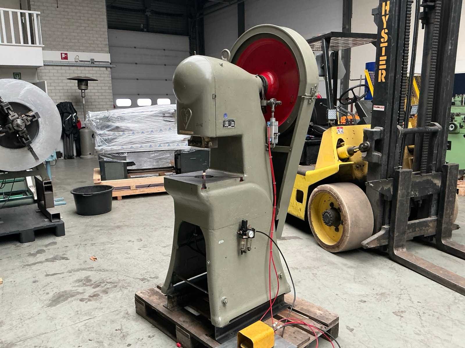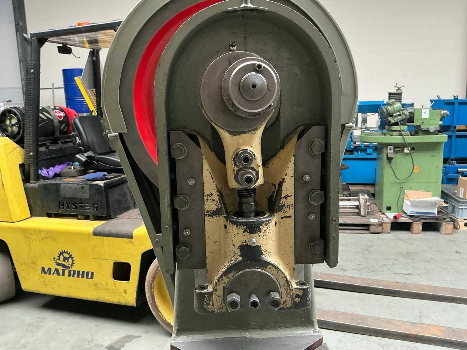 140 slagen / min; kogel verstelbaar 35 mm; voetbediening Merk: Ter Hart Capaciteit.: 25t Uitlading: 125mm Tafel afmeting l: 350mm Tafel afmeting b: 360mm Afmeting l: 800mm Afmeting b: 650mm Afmeting h: 1900mm