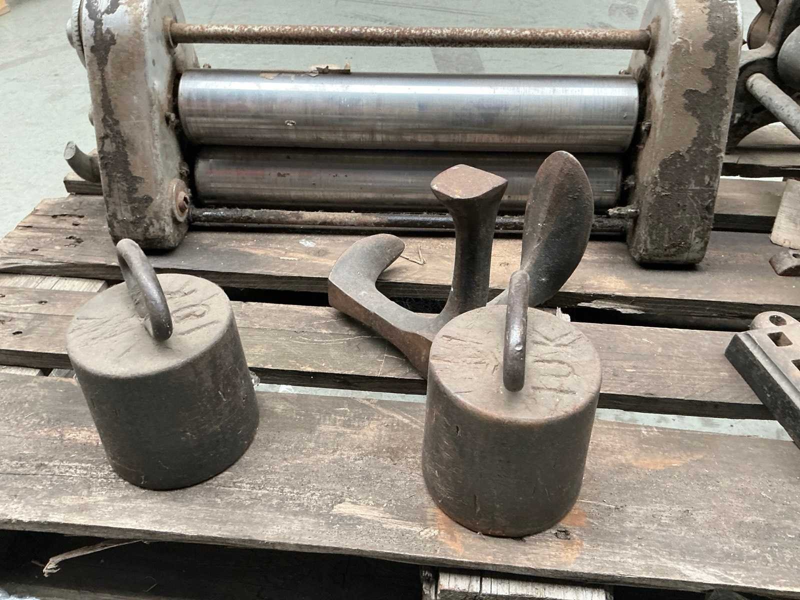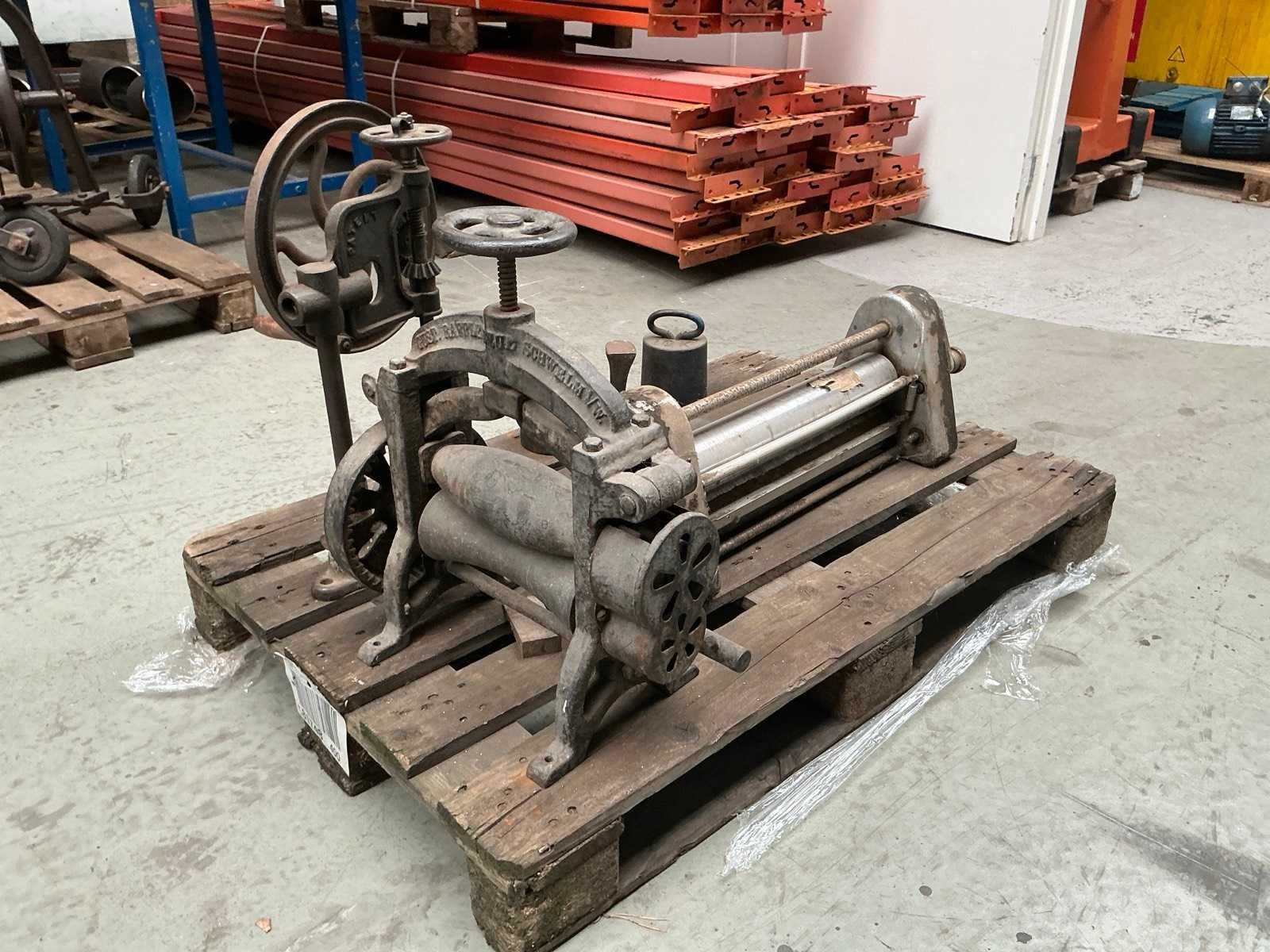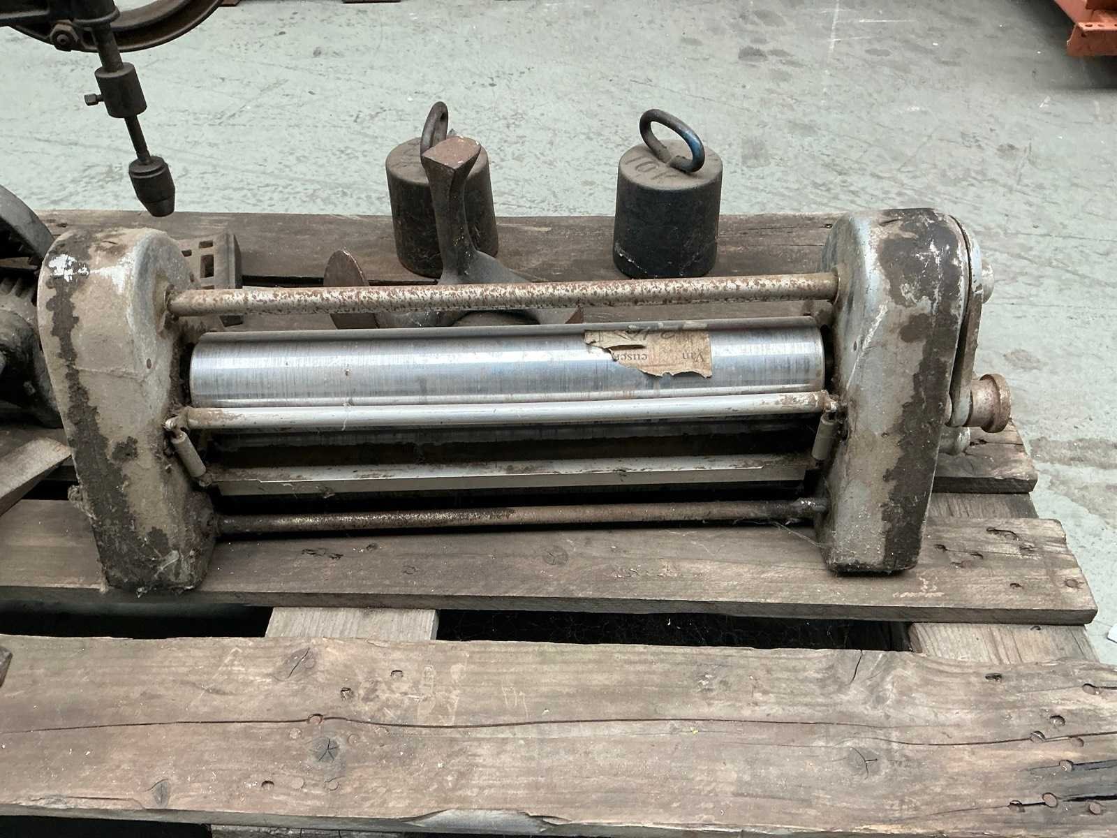 1x Rondo deegrolmachine, 1x rollenwals walsbreedte 250 mm, 1x manuele kolomboormachine, 2x gewicht, 1x aambeeld voor schoenmaker