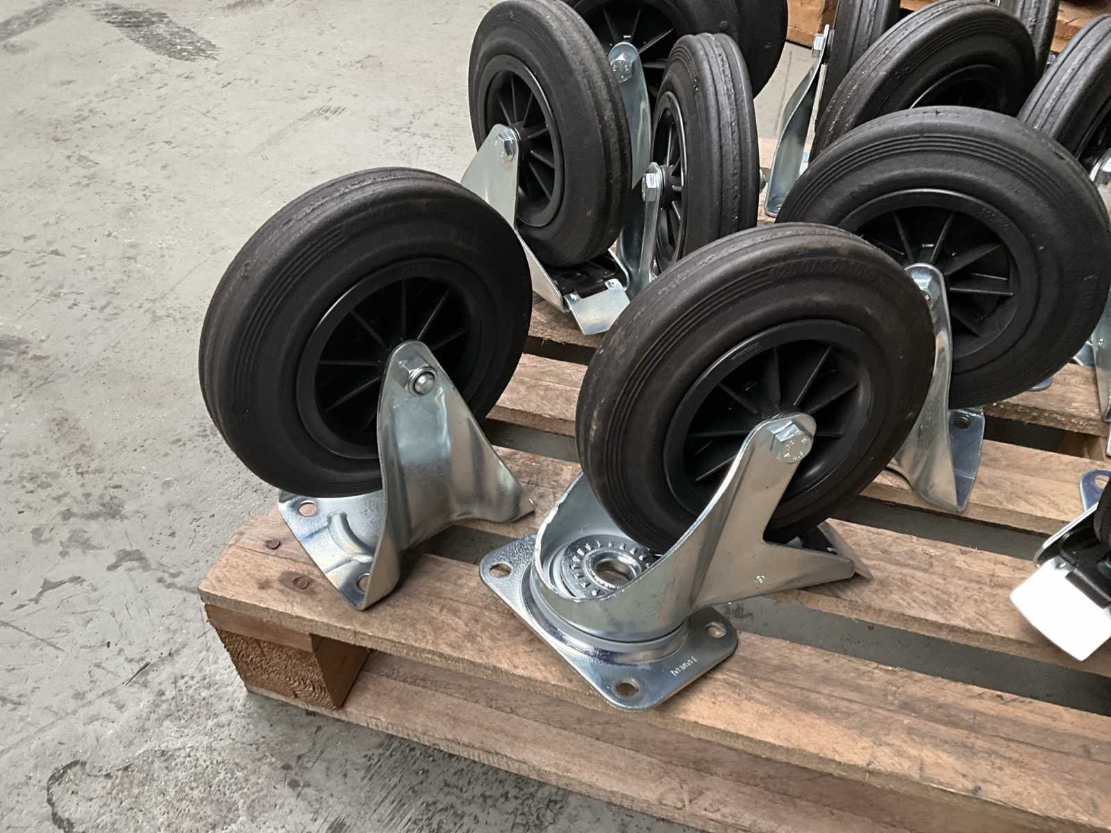 Kavel bestaande uit 10x vast wiel; 10x geremd zwenkwiel; formaat 200/50-100
