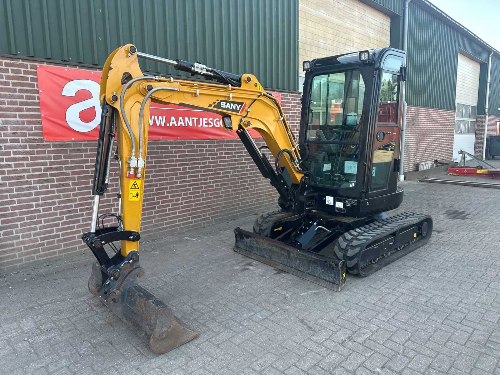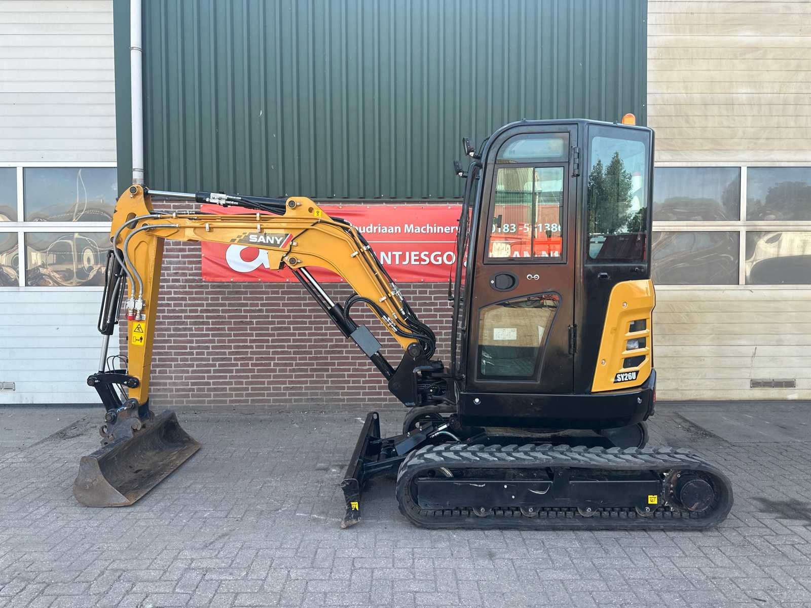 Sany SY26U minigraver met cabine; bouwjaar 2022; serienummer SY0027CC37338; bedrijfsuren 304; bedrijfsgewicht 2760 kg; onderwagenbreedte 1550 mm; rupsen 300 mm; watergekoelde 3 cilinder Yanmar dieselmotor; werklampen; 2 extra hydraulische functies; variabele axiale plunjerpomp met load sensing control; GP hydraulisch snelwissel; met bakken set; Merk: Sany Type: SY26U Bouwjaar: 2022 Serienummer: SY0027CC37338 Merk motor: Yanmar Aantal cilinders: 3 Bedrijfsgewicht: 2760kg Rups breedte: 300mm Afgelezen urenstand: 304