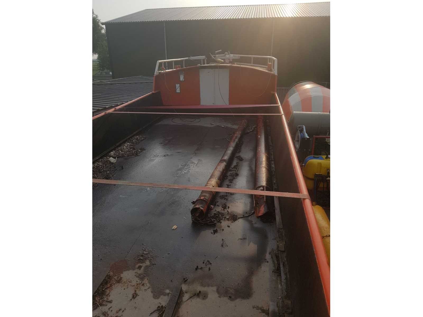 Werkboot ; lengte ca. 12000 mm ; breedte ca. 2700 mm ; hoogte ca. 2400 mm ; voorzien van 4-cilinder Mercedes-Benz scheepsmotor ; voorzien van nieuwe schroef ; voorzien van powerpack ; voorzien van 2 stutpalen ; zonder oplegger; dient zelf te worden geladen met mobiele kraan 50t Totale afmeting L: 12000mm Totale afmeting Breedte: 2700mm Totale afmeting Hoogte: 2400mm