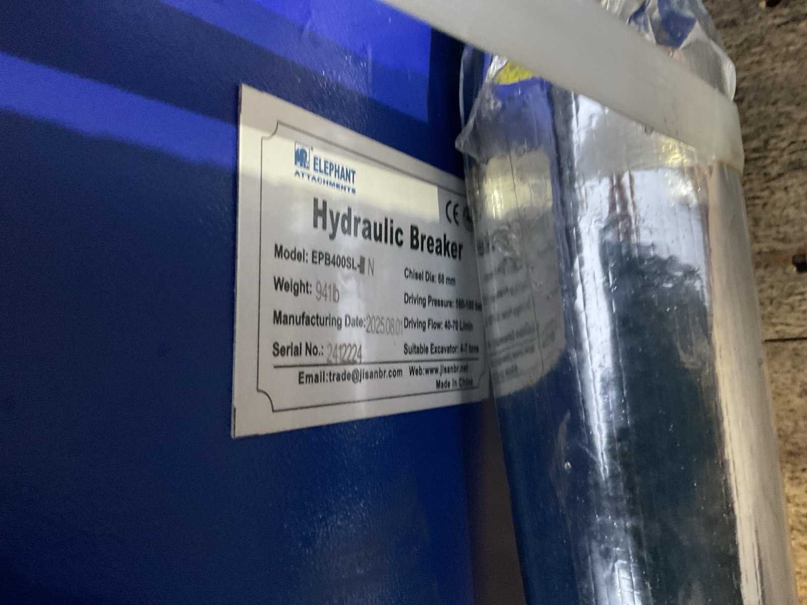 Voorzien van Werkdruk 160 bar; Oliestroom 40 L/min; Slangdiameter 1/2 inch; Beiteldiameter 68 mm; Gewicht (breker) 388 kg; Ongebruikt Merk: Elephant Type: EPB400SL-N Bouwjaar: 2025