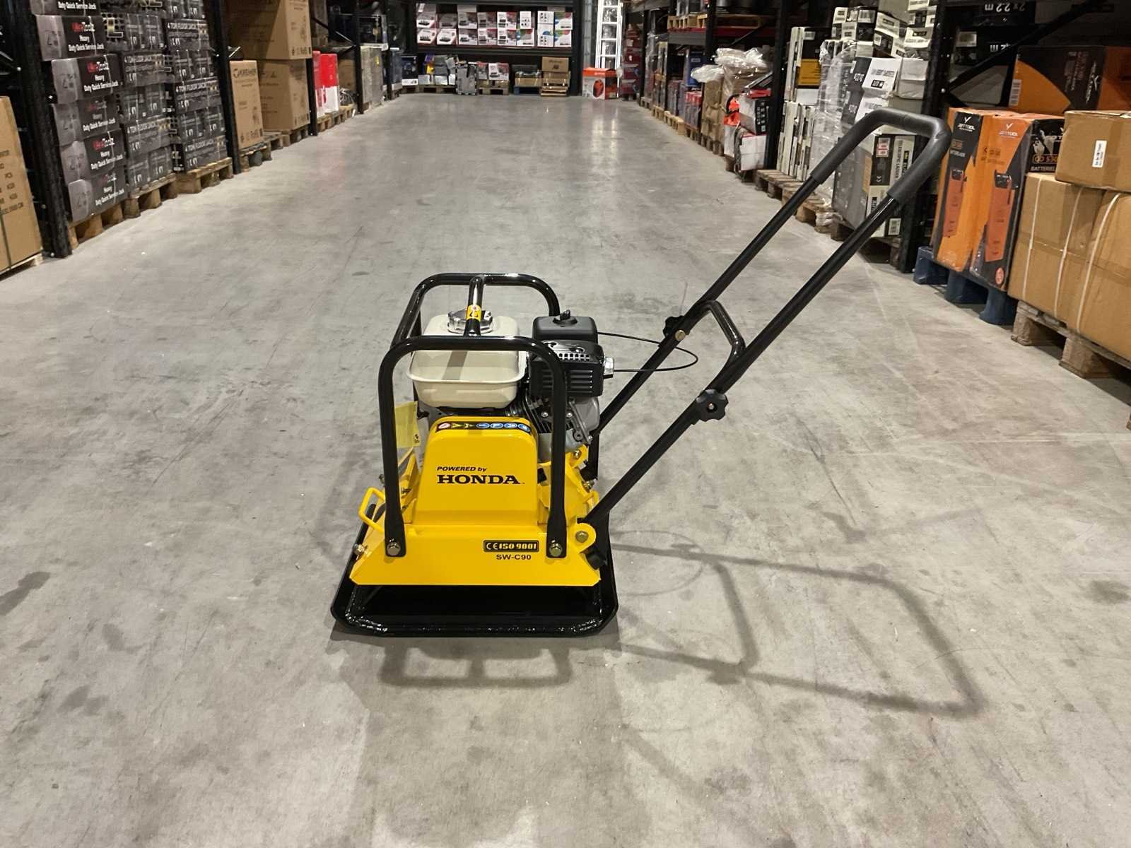 Voorzien van honda fx160 benzinemotor; 163cc motorinhoud; 4,8 pk; trekstart; werkbreedte trilplaat 450 mm; slagkracht 20 kN; werksnelheid 20 m/min; ca 450 m²/uur; 90kg machinegewicht; nieuw in doos Merk: Stahlwerk Type: SW-C90 Bouwjaar: 2025 Bedrijfsgewicht: 90kg Grondplaat afm. l: 640mm Grondplaat afm. b: 480mm Centrifugale kracht: 20kN Merk motor: Honda Eigen gewicht: 90kg Totale afmeting L: 645mm Totale afmeting Breedte: 485mm Totale afmeting Hoogte: 680mm