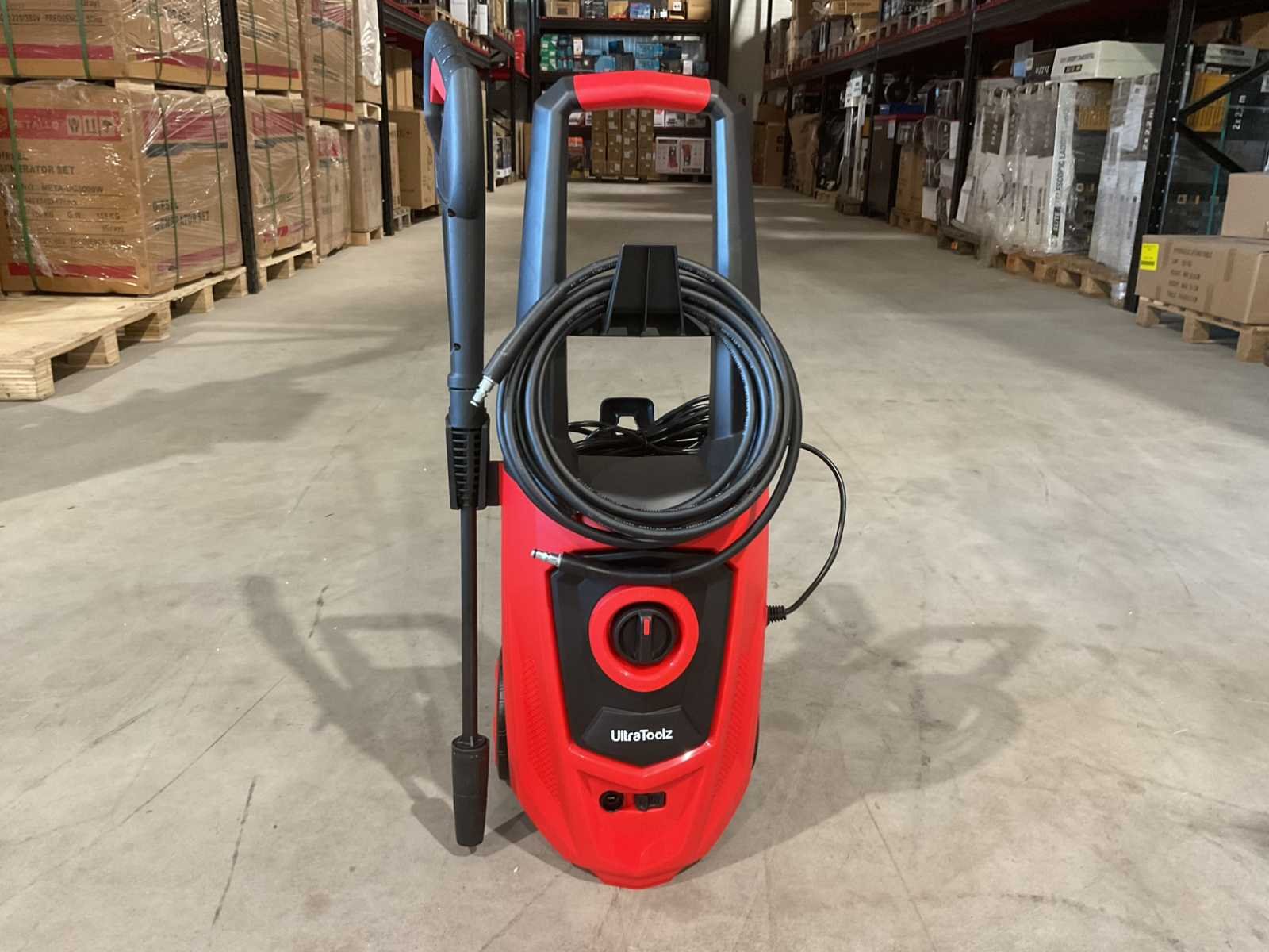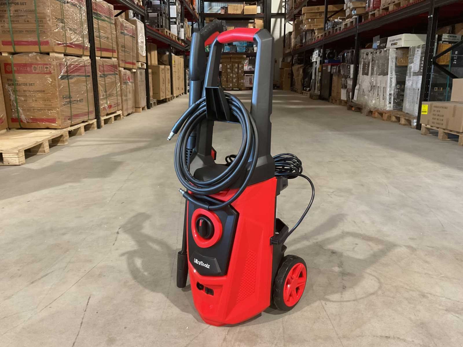 Voorzien van 1800W motor; 500 cm slang; foam spuit; ongebruikt in doos (transport afmetingen 40x40x55 cm) Merk: UltraToolz Type: UT-005 Bouwjaar: 2025 Max. druk: 140bar Kleur: Rood Gewicht: 10kg