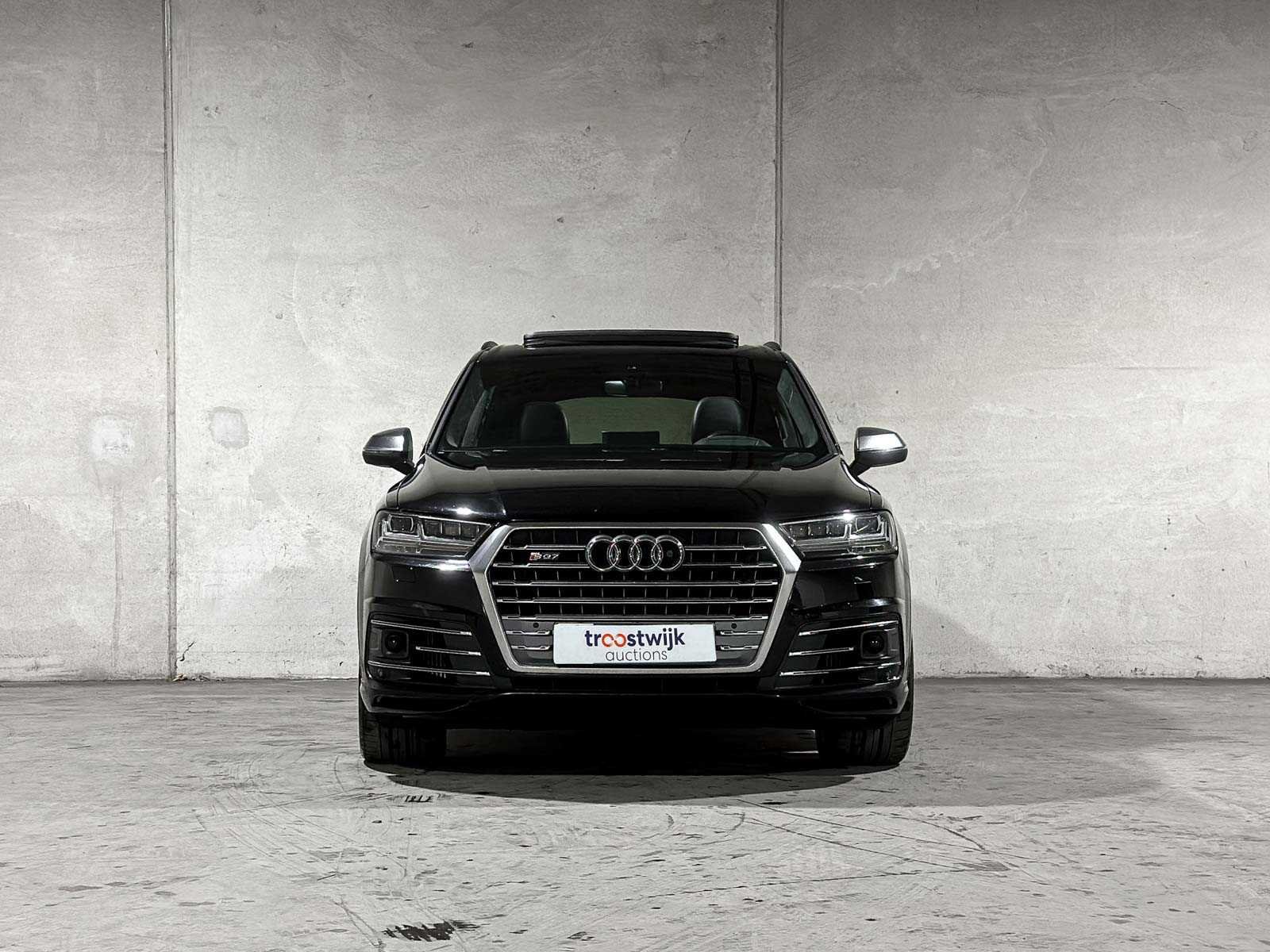 LET OP! Voor Nederlandse kopers en kopers van buiten de EU komt de Rest-BPM er nog bij, deze verschijnt later op de factuur en bedraagt €5.440,-. Dus, totale biedprijs + €5.440,-. De totaalprijs bij het bieden is dus excl. BPM! (This is only relevant for Dutch buyers and buyers from outside the EU). Important: international buyers (within the EU) can reclaim the remaining amount Dutch BPM tax ('rest-BPM'). For this procedure, the buyer is obliged to keep the vehicle in the EU and a specific export procedure is required of €250,- excl. 21% VAT for this lot. Kenteken: PV-838-P Merk: Audi Model: SQ7 Type: 4.0 TDI V8 Quattro Pro Line + Afgelezen kilometerstand: 211492km Cilinderinhoud: 3956cc Vermogen (kW): 320kW Brandstof: Diesel Chassisnummer: WAUZZZ4M4HD033261 NAP status: Undetermined Datum eerste toelating: 2017-01-06 Datum eerste toelating (NL): 29-09-2017 APK vervaldatum: 2026-03-07 Vermogen (pk): 429hp Aantal zitplaatsen: 5 Maximaal trekgewicht ongeremd: 3500kg Maximaal trekgewicht geremd: 750kg Kleur: zwart Transmissie: Automatisch (8) Drive type: Vierwiel Stuurwiel: Links gestuurd Emissieklasse: 6 Aantal deuren: 4 Ledig gewicht: 2245kg Aantal cilinders: 8 Carrosserie: SUV Nationaliteit documenten: Nederlandse kentekendocumenten Carfax Link: https://was.carfax.eu/v0/api/ccdid/5100016408/svc/201/vinreg/PV838P/checksum/eyJhbGciOiJIUzI1NiIsInR5cCI6IkpXVCJ9.eyJleHAiOjE3Nzk3MTQyOTB9.Xg7SjTazXDM_2FwHc4GD1EdyWaJ5ycwyk2bZZ2n7KU4