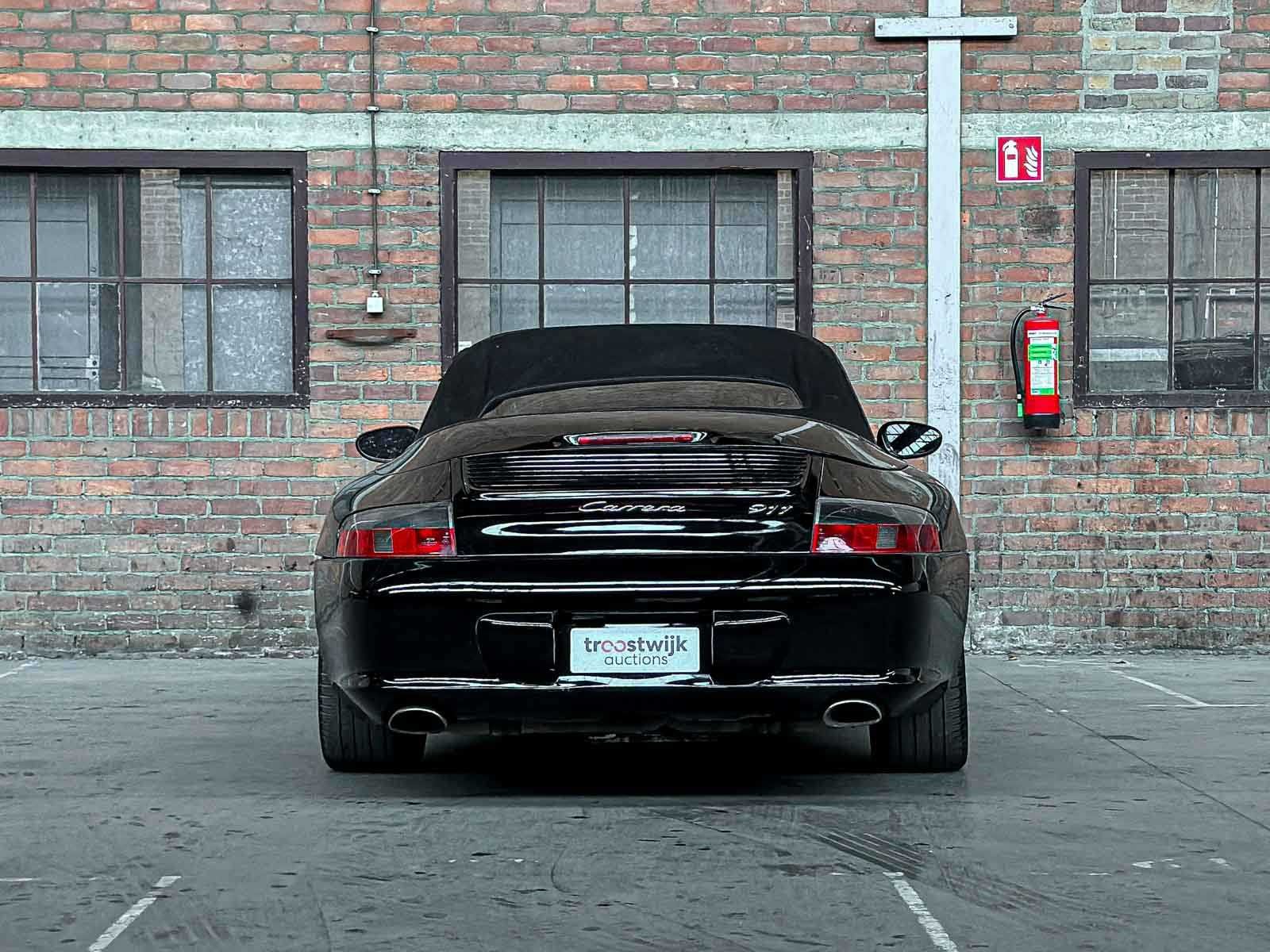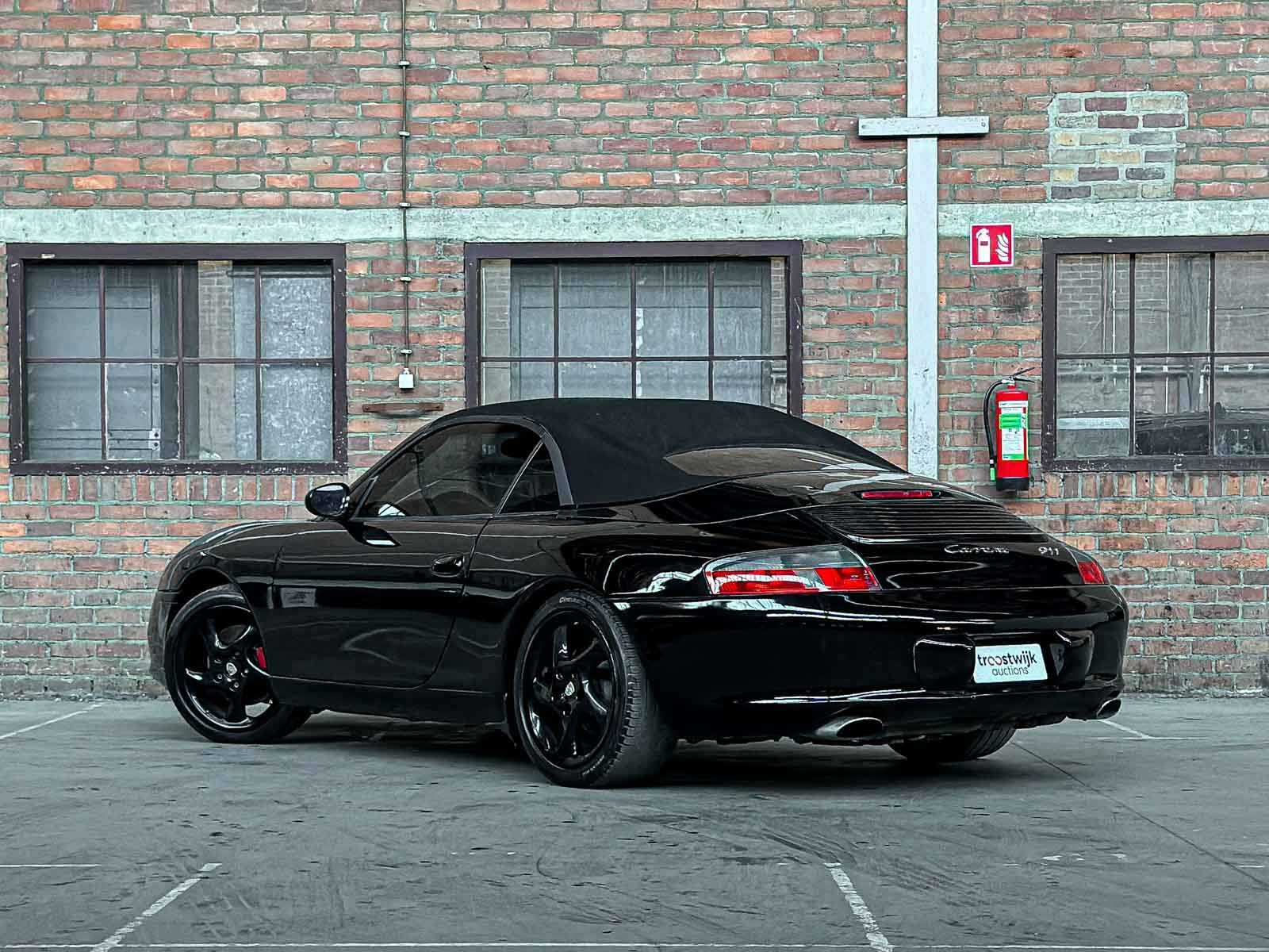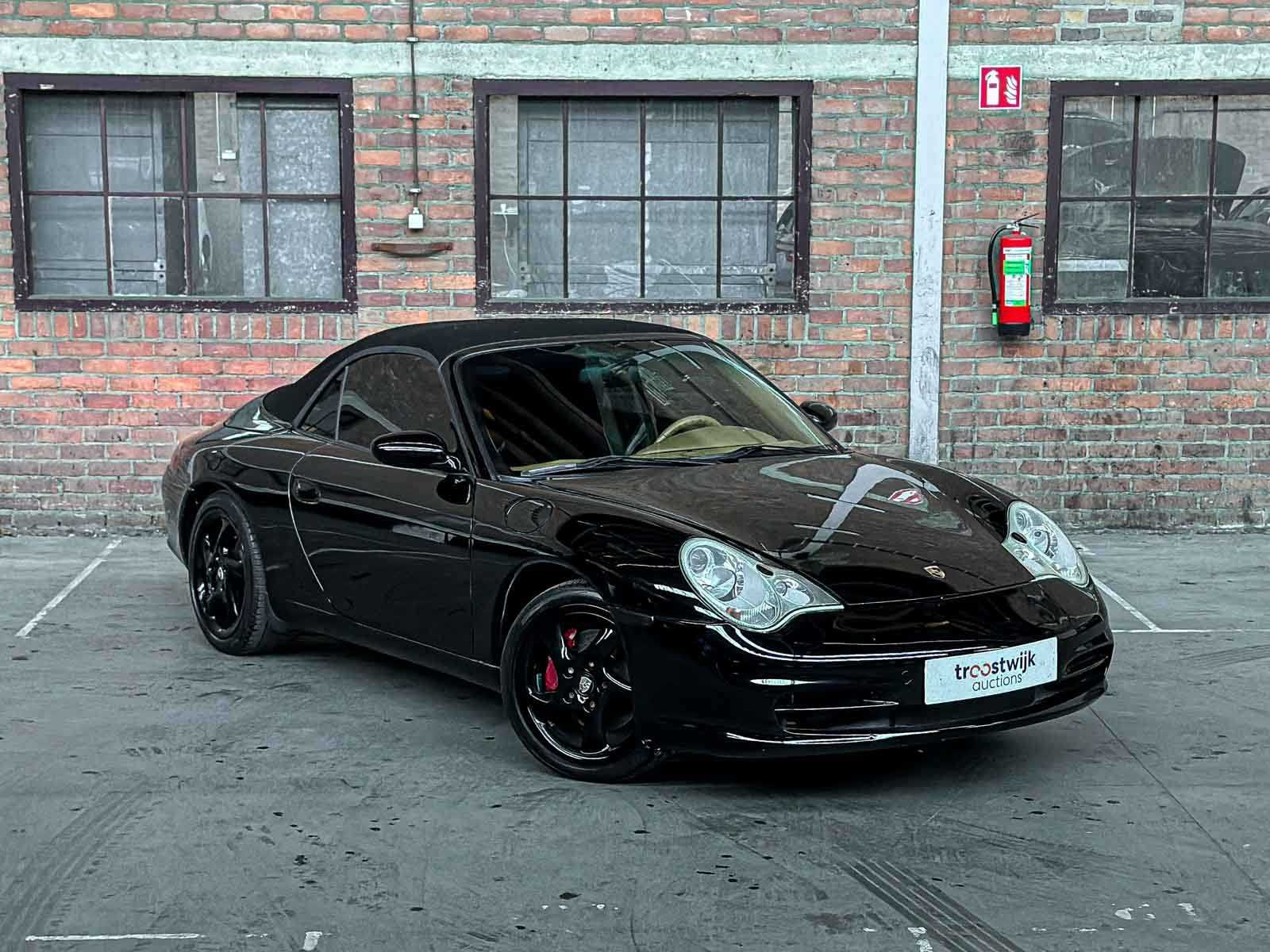 Merk: Porsche Model: 911 Type: Carrera 4 Cabrio 3.6 996 Brandstof: Benzine Afgelezen mijlenstand: 53643mi Chassisnummer: WP0CA29972S652807 Datum eerste toelating: 2002-01-01 Vermogen (pk): 320hp Aantal zitplaatsen: 4 Kleur: zwart Transmissie: Handgeschakeld Drive type: Vierwiel Stuurwiel: links gestuurd Aantal deuren: 2 Carrosserie: Cabriolet Nationaliteit documenten: USA (clean) title, invoerrechten en BTW zijn voldaan