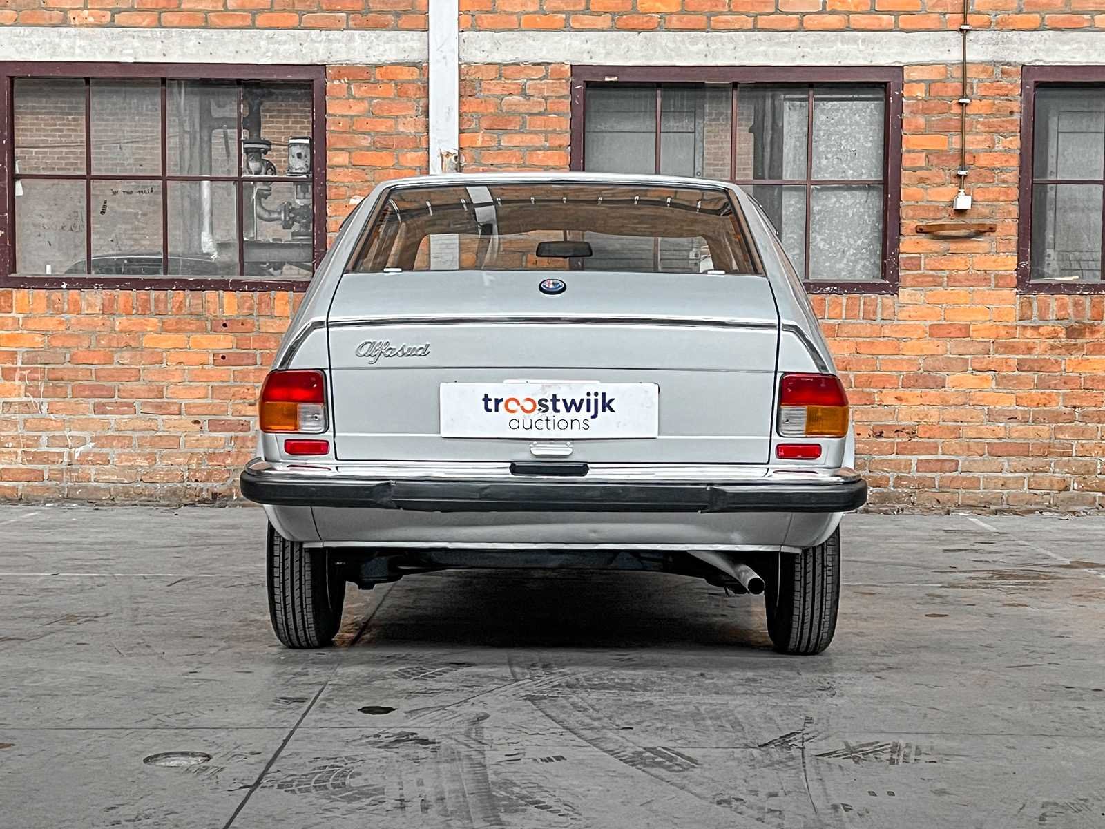Merk: Alfa Romeo Model: Sud Type: 901 Afgelezen kilometerstand: 65188km Brandstof: Benzine Chassisnummer: A346920Na24 Datum eerste toelating: 1978-07-04 Vermogen (pk): 97hp Aandrijving: Voorwielaandrijving Aantal zitplaatsen: 5 Kleur: Grijs Transmissie: Handgeschakeld Aantal deuren: 5 Carrosserie: Sedan Nationaliteit documenten: Italiaanse
