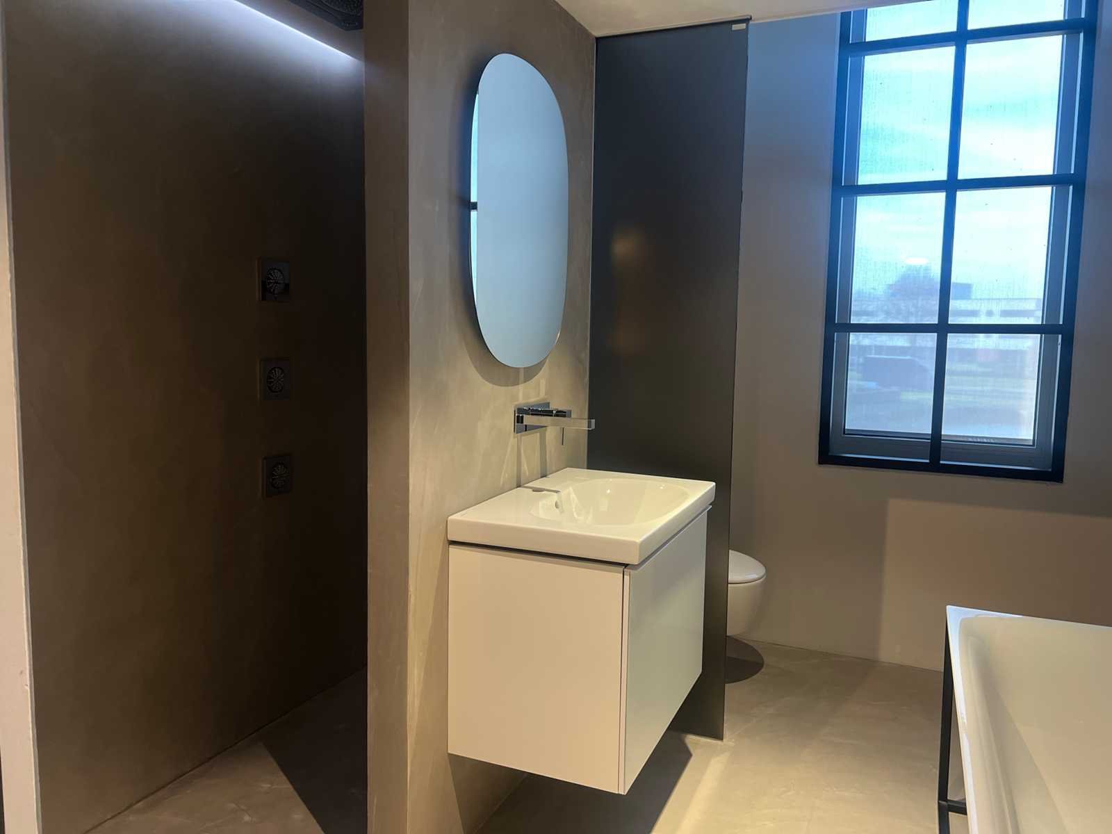 Reeds gedemonteerd; Kraan zonder inbouwdelen Merk: Gebrit Hoogte: 75cm Lengte: 48cm Breedte: 60cm Kraan: Ja Spiegel: Ja 60 x 80 cm