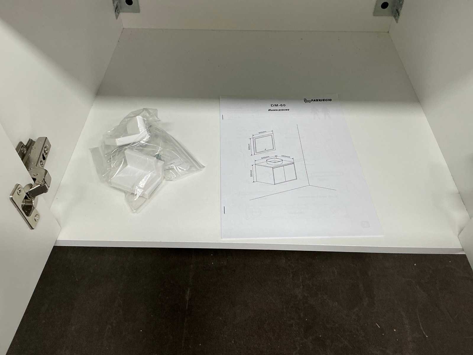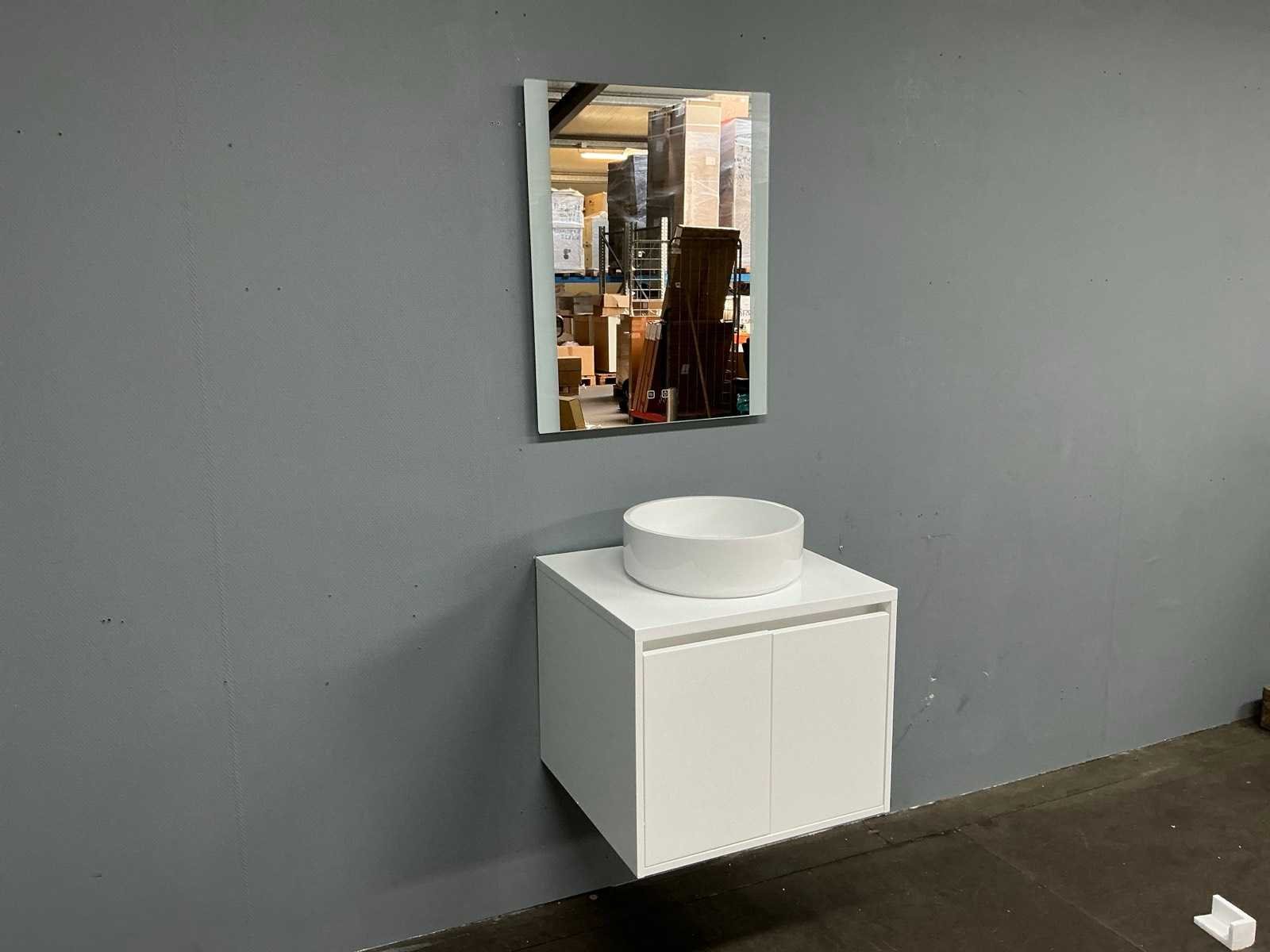 Badmeubelset met: onderkast 55x60x50 cm, waskom 40 cm, spiegel 31x40 cm, Kleur: Glans Wit Waskom: Arqua Case Spiegel met verlichting: Primabad
