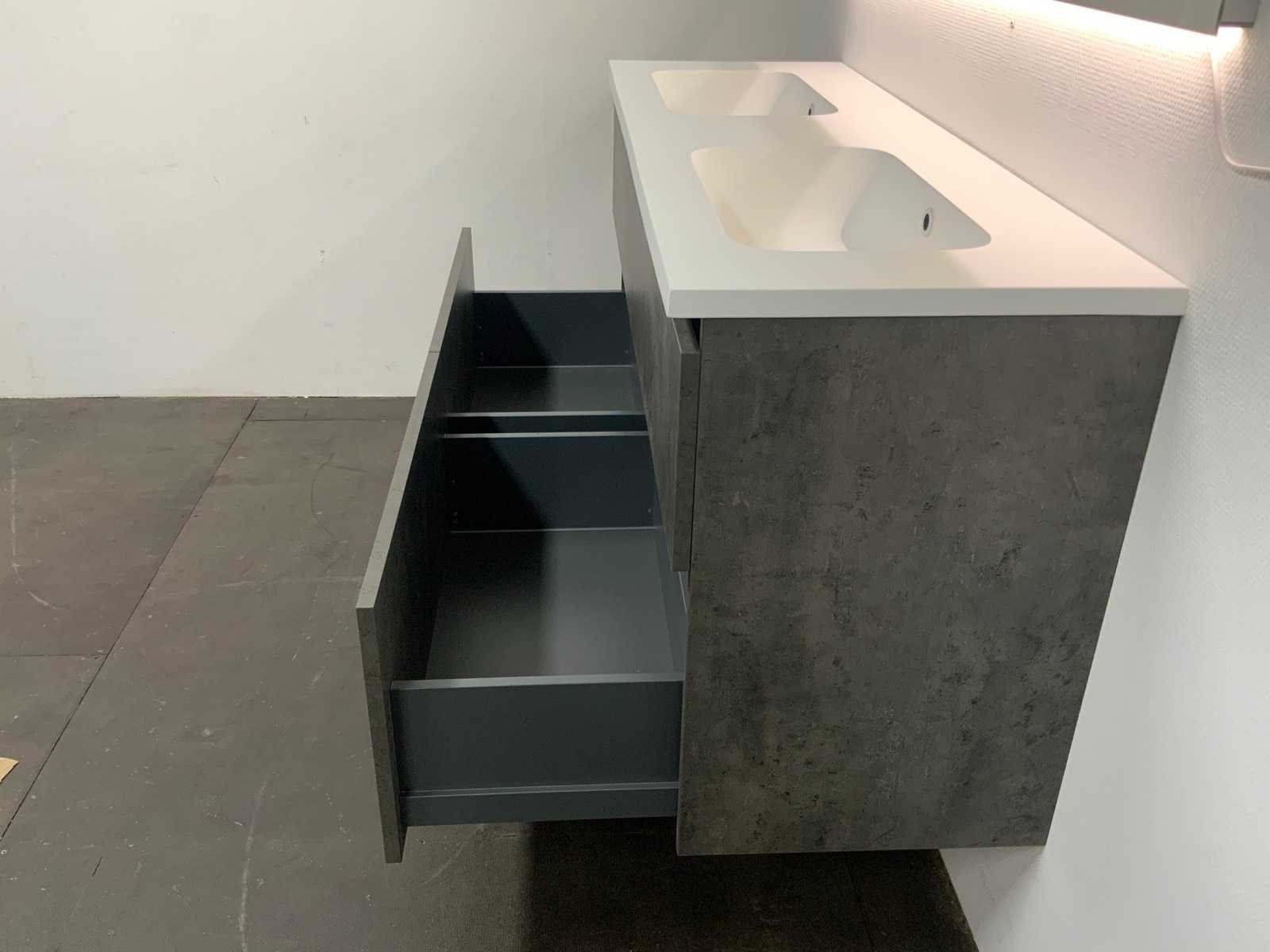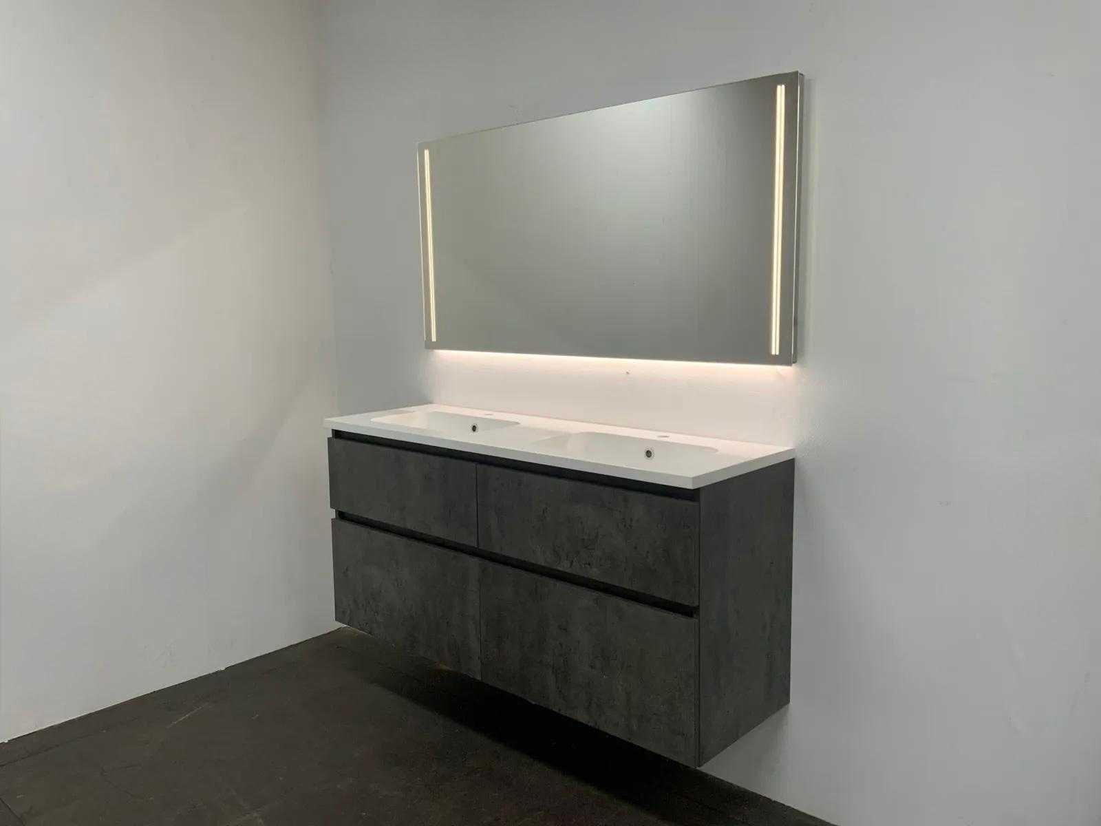 Bestaande uit; onderkast, wastafel en spiegel Merk: Primabad Hoogte: 68cm Lengte: 140cm Breedte: 46cm Wastafel: Duo bak Spiegel met verlichting: 140 X 70 cm Verlichting: LED Softclose: true