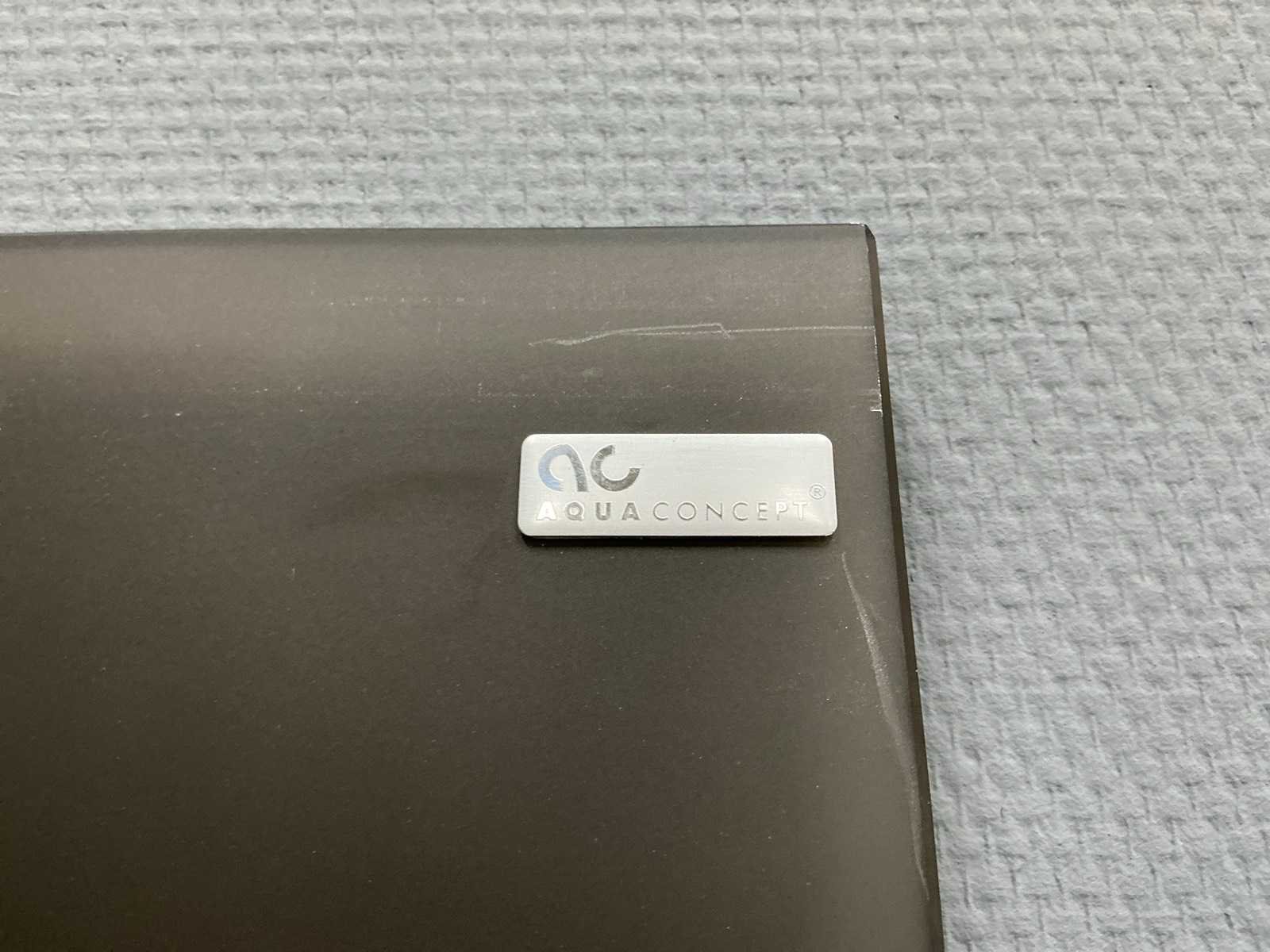 Plint is ertegen aan geplakt Merk: Aqua Concept Kleur: Zwart Lengte: 230cm Breedte: 50cm Materiaal: Glas