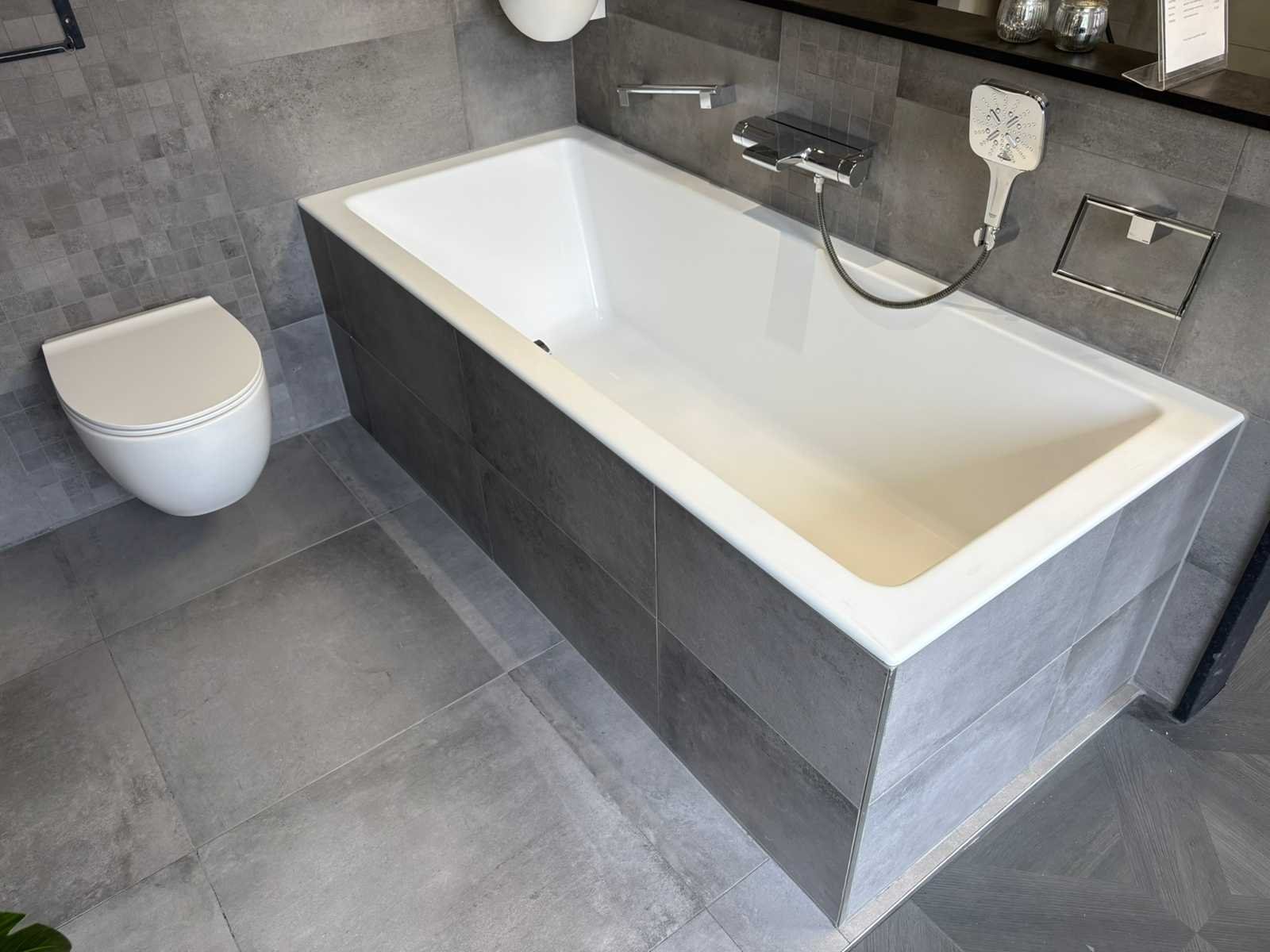 Inclusief handdoekrek, opbergrek en wasbak Bestaande uit: Bad (179x79x61) 1e: Luca toilet 2e: Vasco designradiator (184x60) 3e: Grohe Douche inclusief 2 douchekoppen