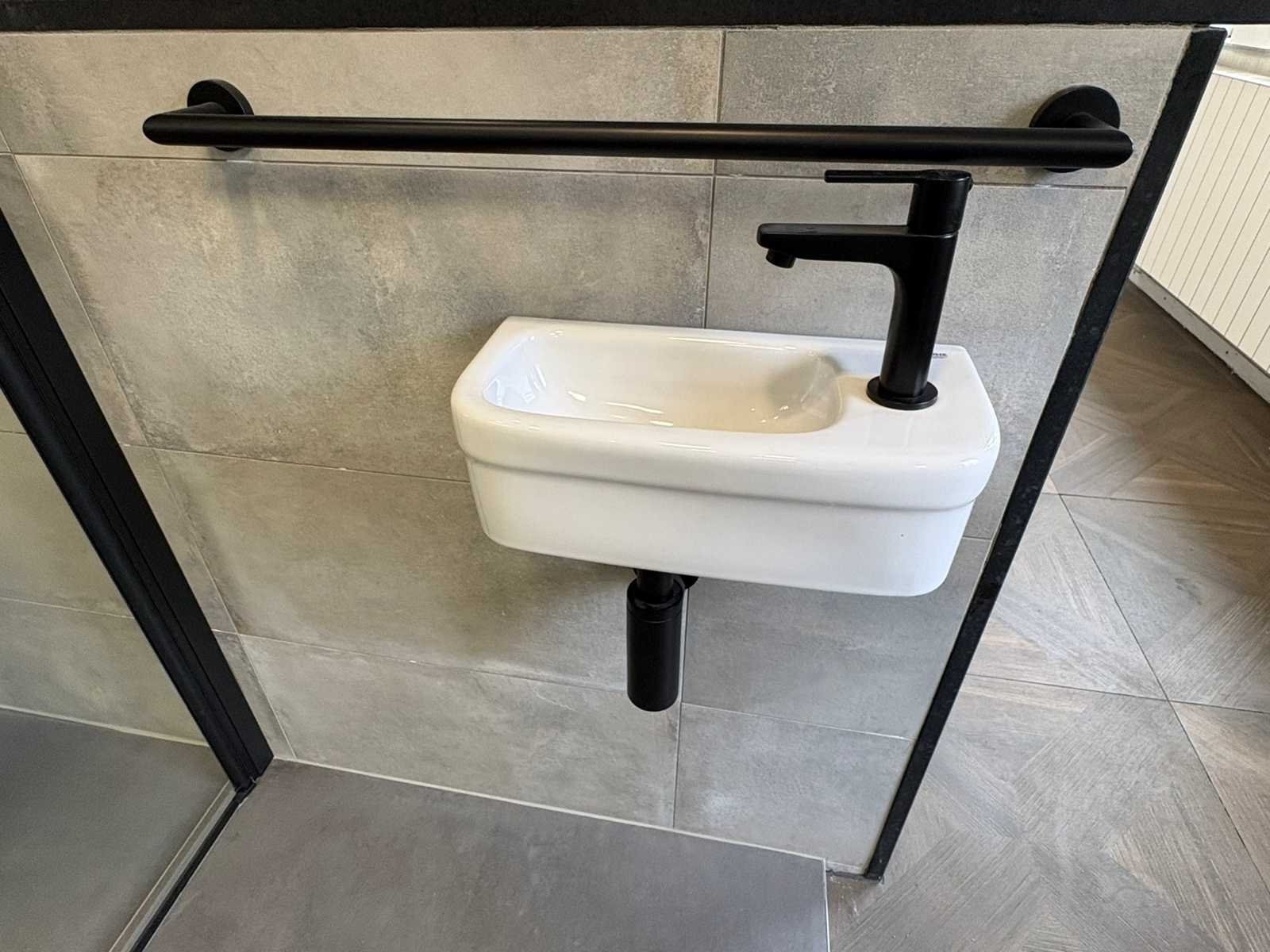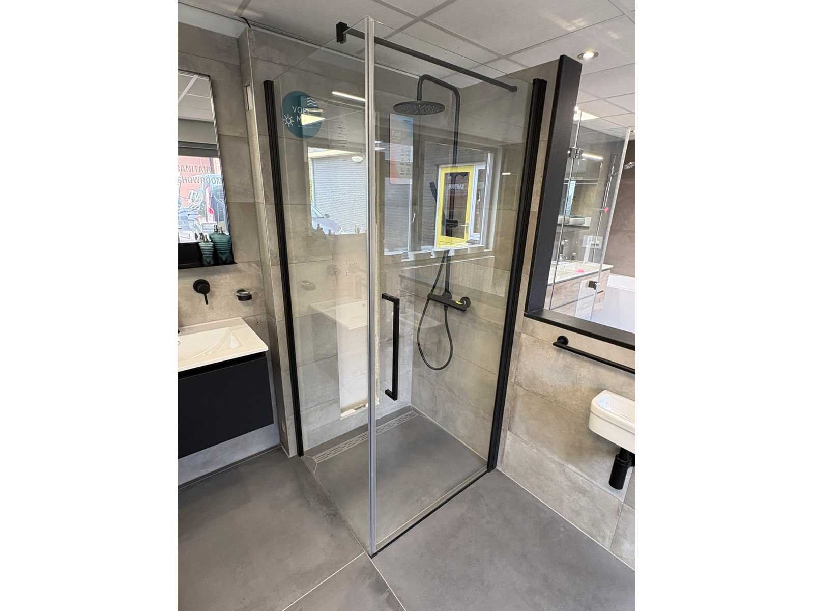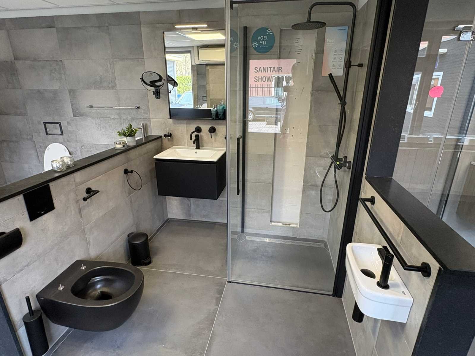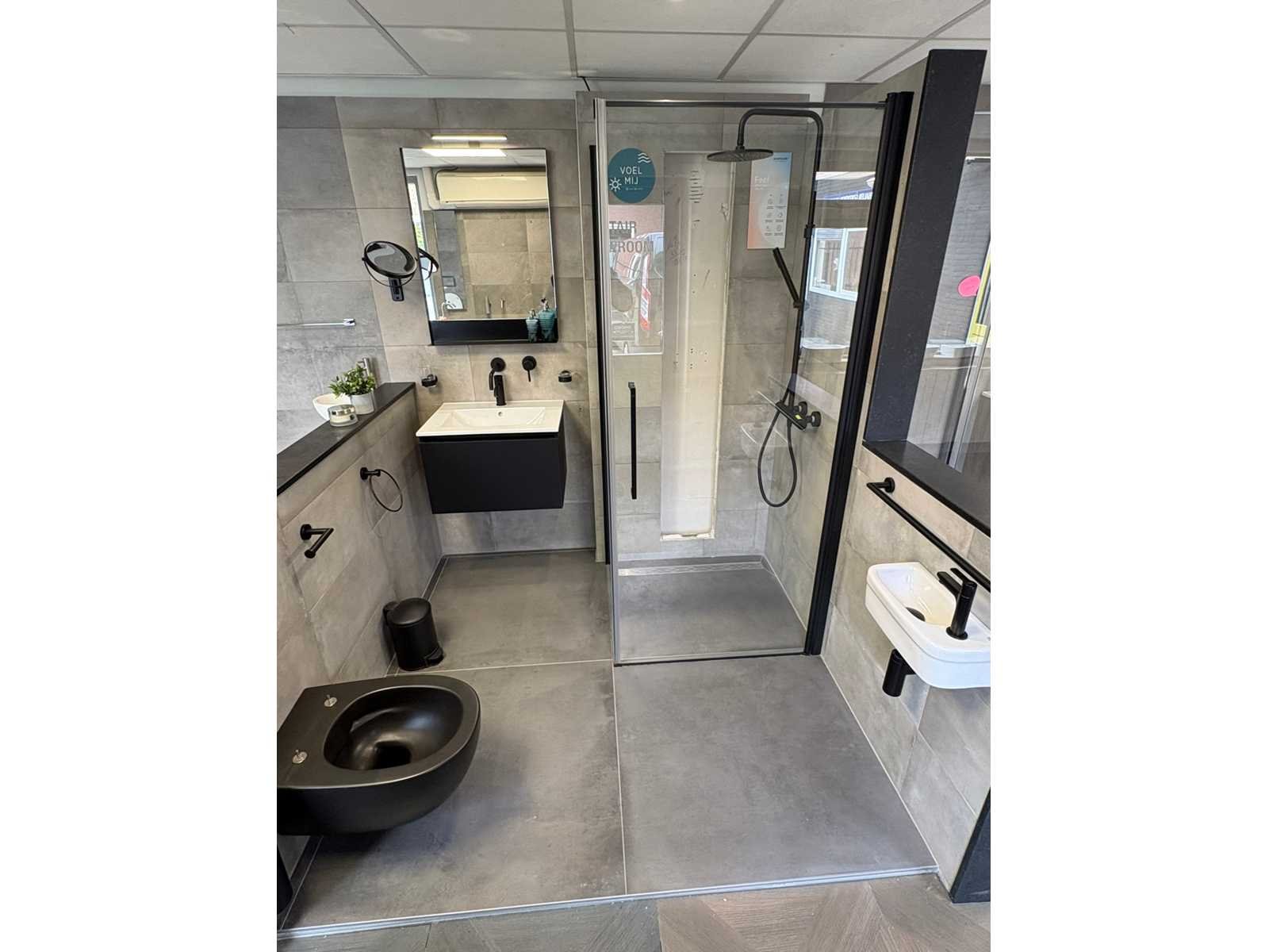 Bestaande uit: Wasbak (46,5x61x40) 1e: Novillini Douchecabine (89x200x87) 2e: Pelipal Badkamermeubel 4e: Toilet met accessoires 5e: Sanibell spiegelset 6e: Handdoekrail 7e: Paffoni Doucheset