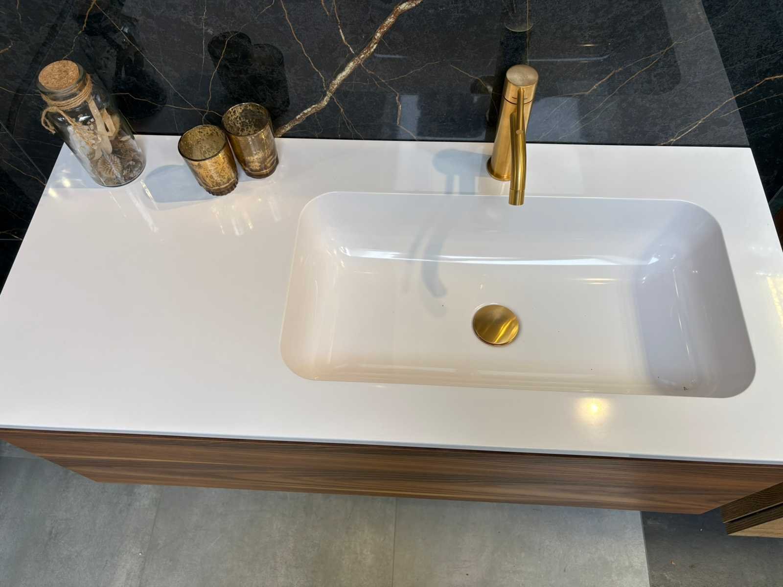 Bestaande uit: Wastafel (101x45x36,5) 1e: Ronde spiegel 2e: Hotbath kraan