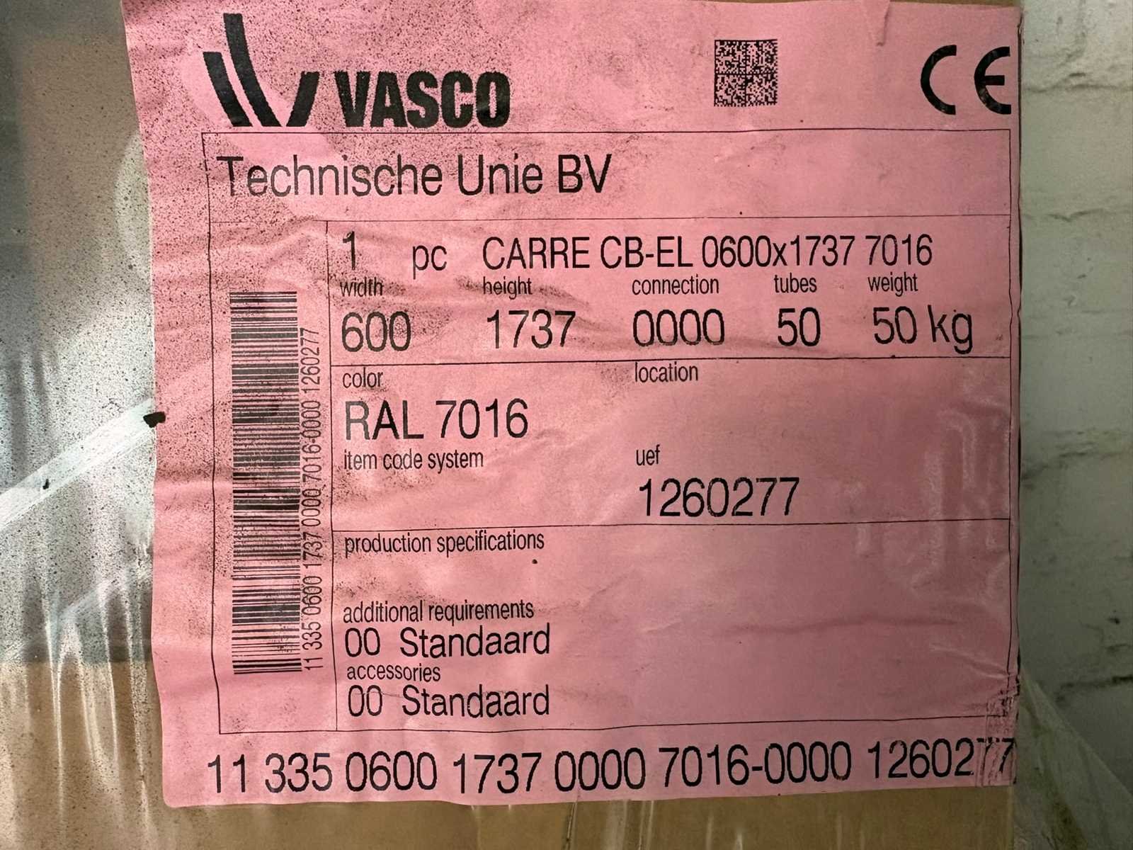 Elektrisch 600x1737 cm Merk Vasco Kleur RAL 7016