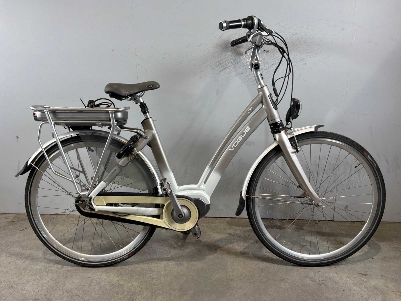 Deze kavel is niet getest op elektronische onderdelen zoals; accu, lader, trapondersteuning en het display. Vanwege veiligheidsvoorschriften worden accu en/of display losgekoppeld. Merk: Vogue Model: City Frame type: Dames Motorpositie: Midden Versnellingen: 8 Framemaat: 52
