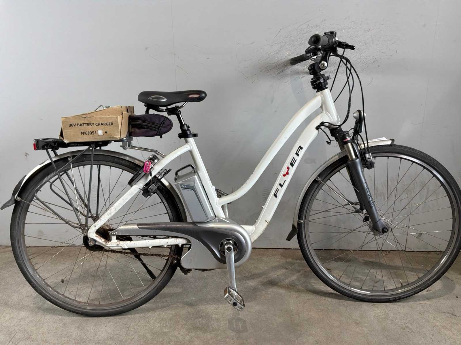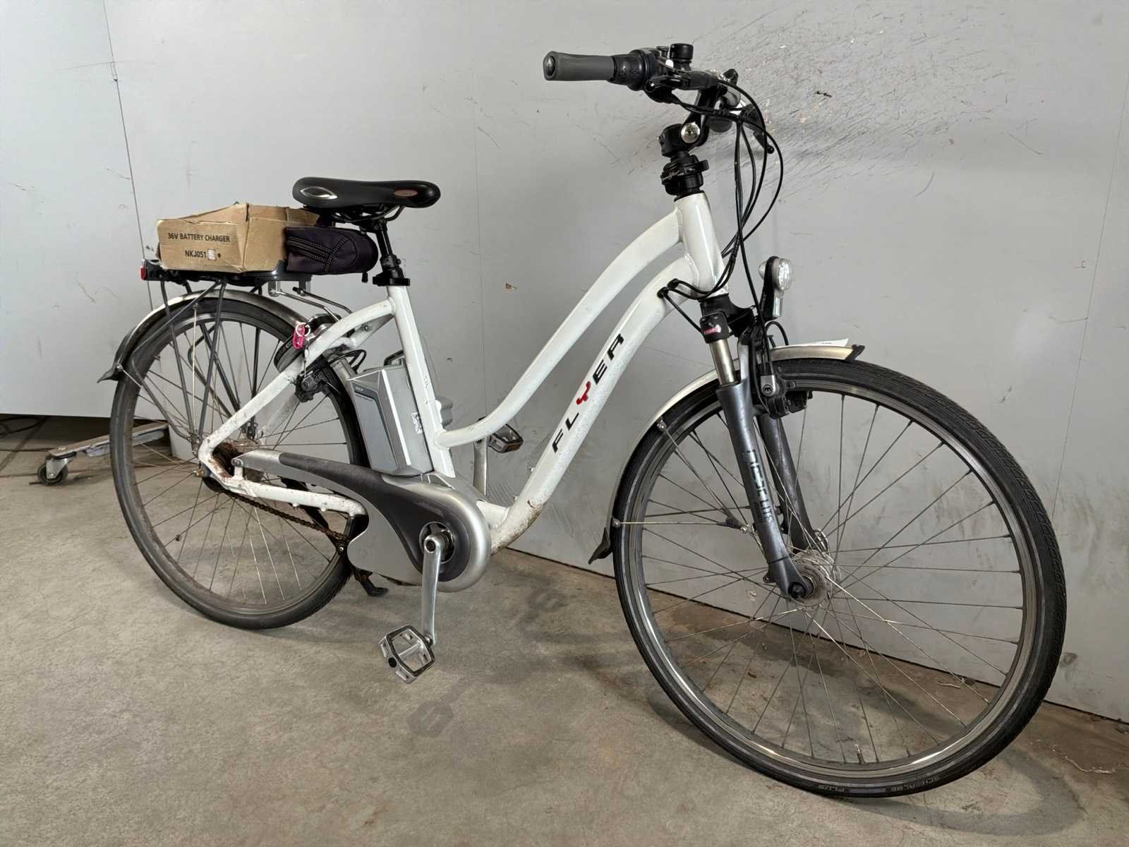 Deze kavel is niet getest op elektronische onderdelen zoals; accu, lader, trapondersteuning en het display. Vanwege veiligheidsvoorschriften worden accu en/of display losgekoppeld. Merk: Flyer Frame type: Dames Motorpositie: Midden Voorvering: true Versnellingen: 8 Framemaat: 50