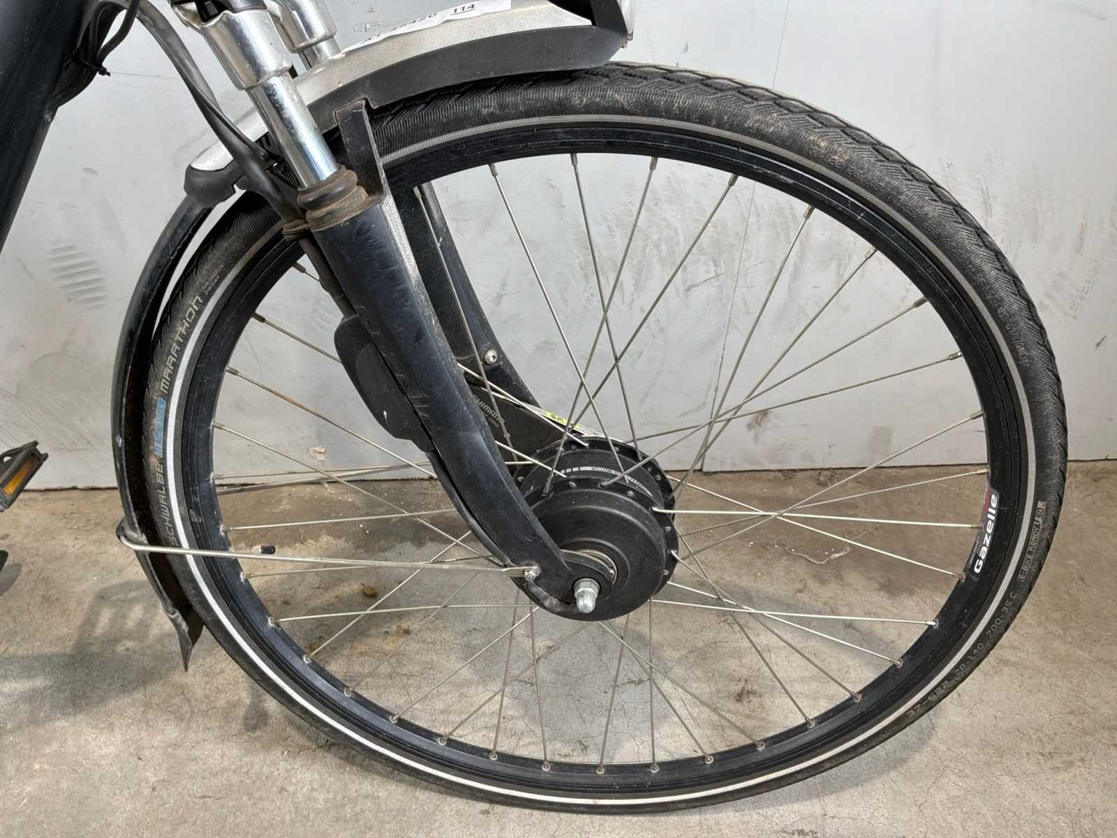 Deze kavel is niet getest op elektronische onderdelen zoals; accu, lader, trapondersteuning en het display. Vanwege veiligheidsvoorschriften worden accu en/of display losgekoppeld. Merk: Gazelle Model: Orange C7 Frame type: Dames Motorpositie: Voor Voorvering: true Versnellingen: 7 Framemaat: 62
