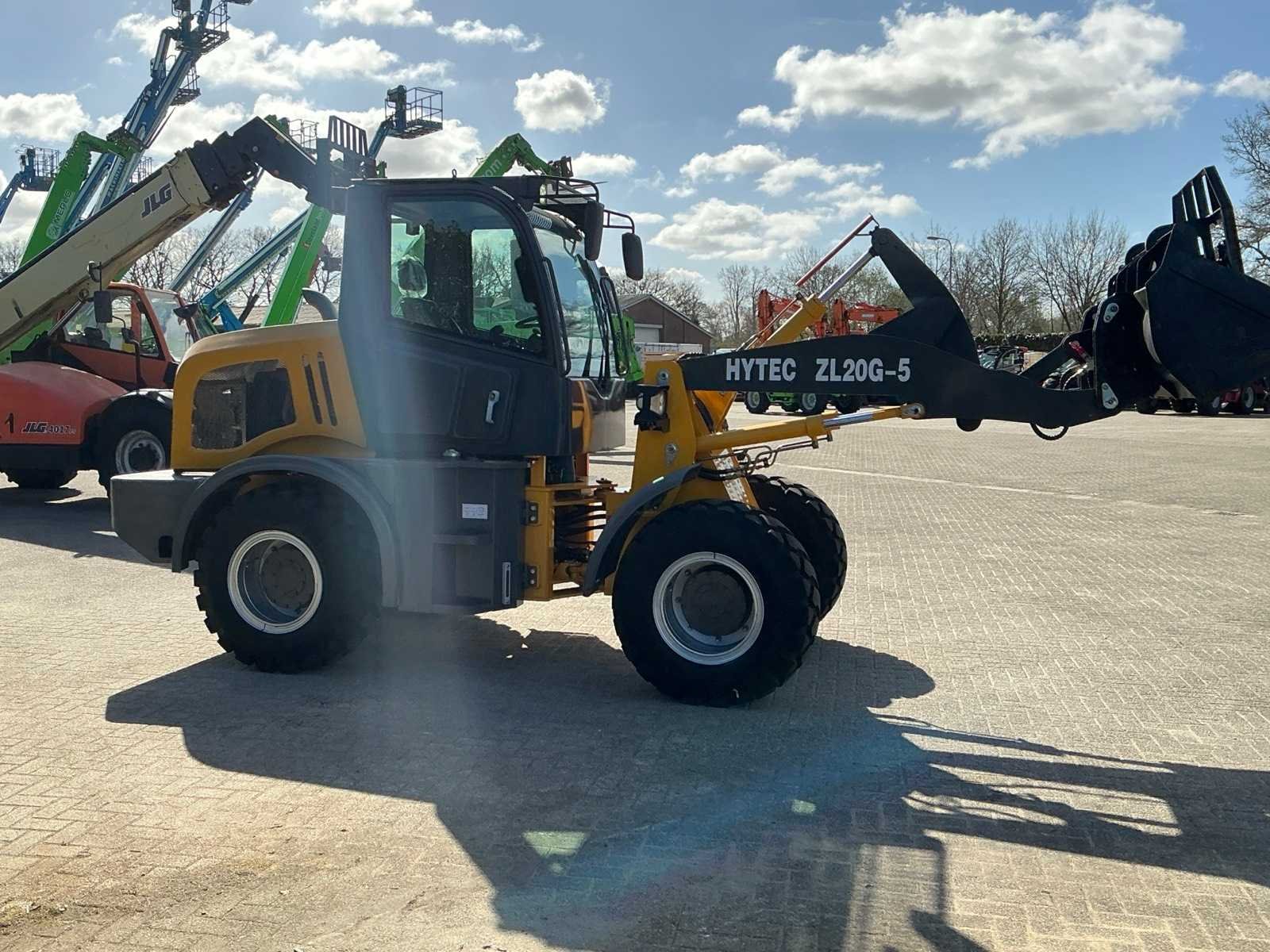 Ongebruikte shovel, voorzien van 2000mm tandenbak en vorkenbord, geen kentekenregistratie. Merk: Hytec Type: ZL20G-5 Bouwjaar: 2025 Serienummer: CNLM220469 Merk motor: Turbodiesel Kenteken: Geen registratie Motorvermogen (kW): 55.2kW Aantal cilinders: 4 Brandstof: Diesel Graafbak afm. b: 2000mm Bandenmaat: 16/70-20 Afgelezen urenstand: 2 Eigen gewicht: 5100kg Totale afmeting L: 6300mm Totale afmeting Breedte: 1950mm Totale afmeting Hoogte: 3000mm
